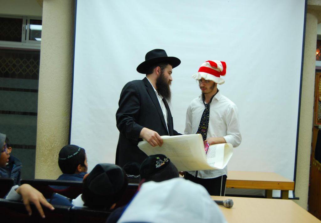 לאחר מבצעים ממושכים לאורך כל היום התיישבו התמימים להתוועדות פורים סוערת עם ראש הישיבה הגה"ח הרב יוסף הכהן הענדל שיחי' והמשפיע הרב יגאל לוטקין שיחי'.