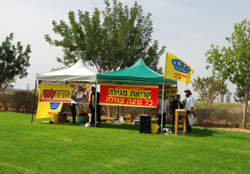 למחרת בבוקר השכימו התמימים והקימו את 'אוהל מרדכי' בפארק נחל באר שבע שם התקיים אירוע פורים המרכזי מטעם העייריה, בהשתתפות למעלה מ20,000 איש!! במאהל התקיימה קריאת מגילה כל שעה עגולה בהשתתפות קהל רב, אנשים נשים וטף.