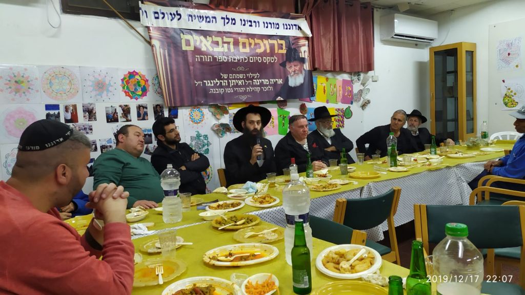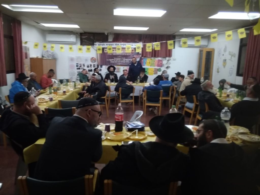במהלך סעודת המצווה שהתקיימה בסיום התהלוכה, התוועד עם הקהל, הרב בנצי פרישמן שיחי' - מנהל מוסדות חינוך חב"ד בת ים.