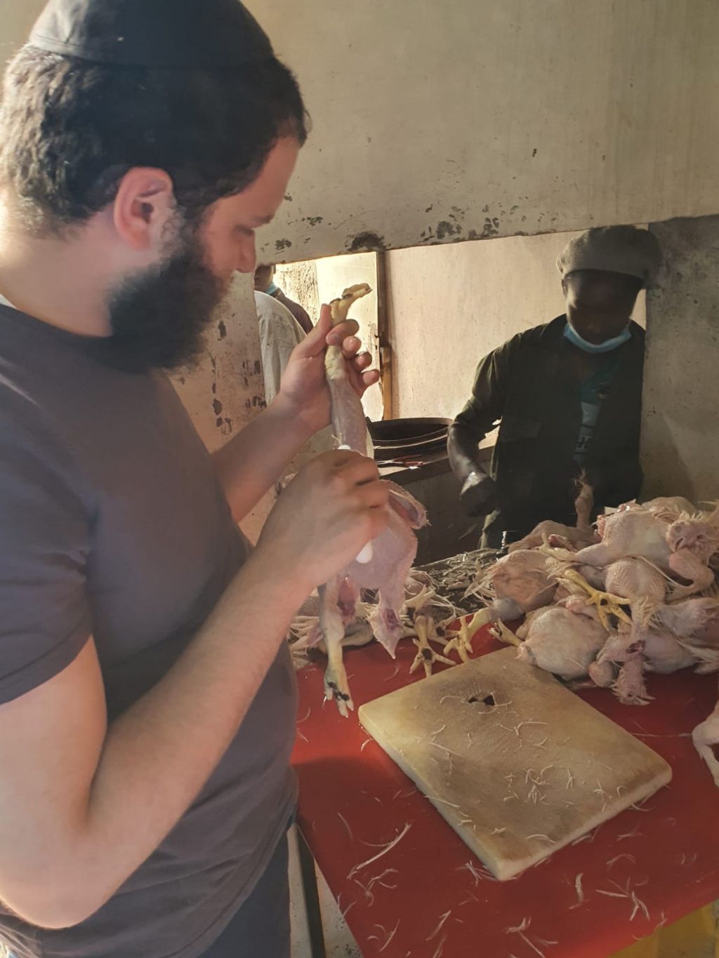 השנה, למרות הקורונה, הגיעו השו"בים בוגרי מכון ר"ן' התמימים מנחם סבאג, חיים בלומנטל ובנימין טייב, וערכו שחיטה כשרה של כ-500 עופות!