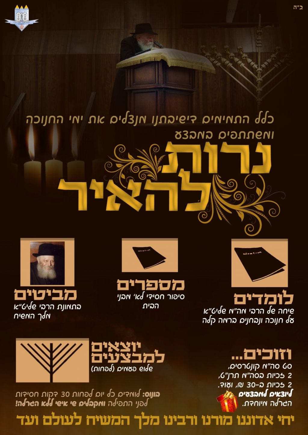 לקראת היציאה לבתים לשליחות בחג החנוכה, הוציאו השלוחים חוברת מיוחדת המכילה שיחה של הרבי על החג ומחולקת לימי החג. ובימים האחרונים של חג החנוכה יצאו התמימים יחד עם השלוחים לכבוש את העיר על ידי המבצעים בקניון הזהב בעיר.