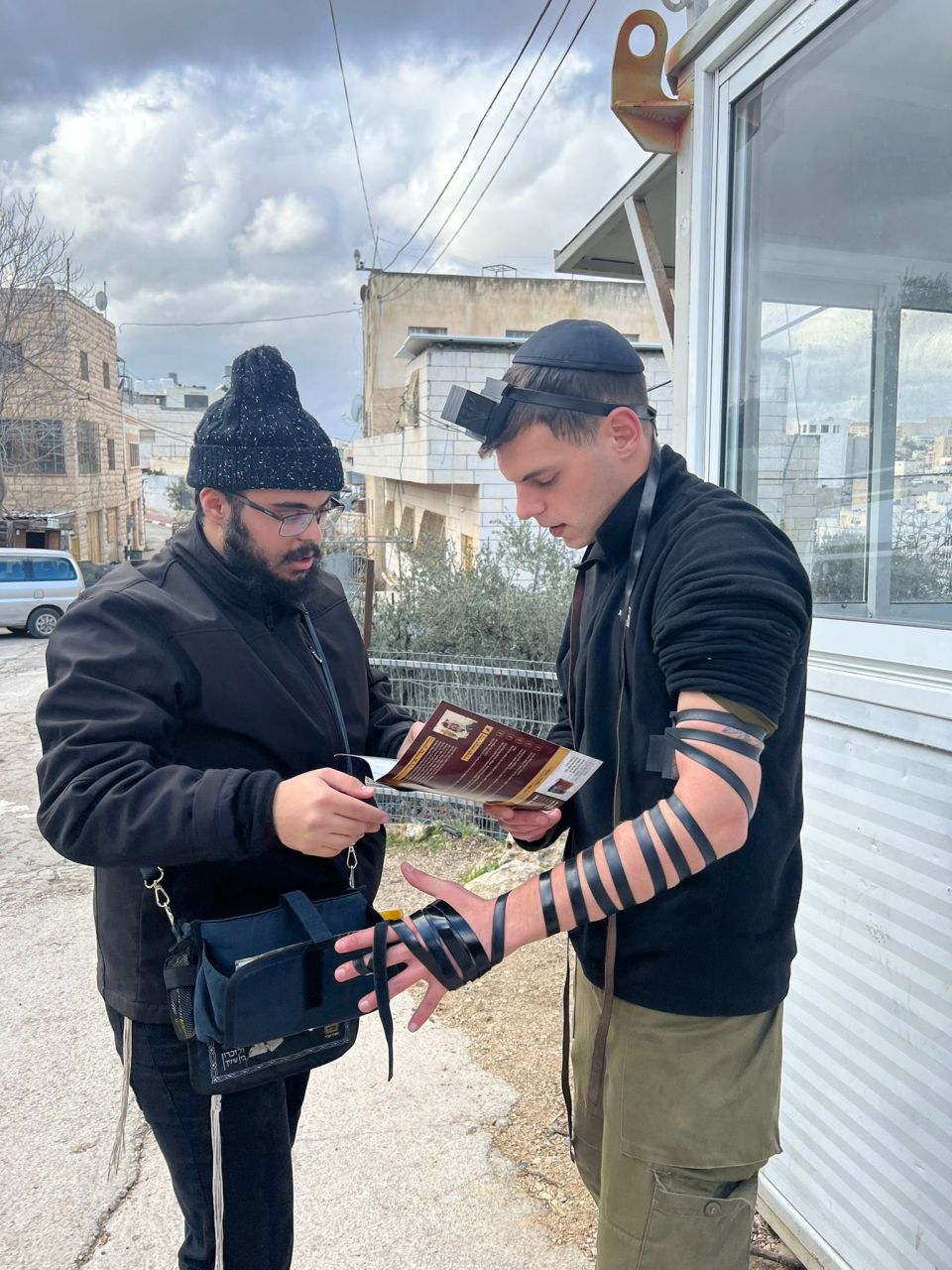 בלכתם בסמטאות היישוב, עברו התמימים בין כל עמדות החיילים, הניחו להם תפילין, ושוחחו עימם על ענייני השעה - ביאת הגאולה הקרובה.