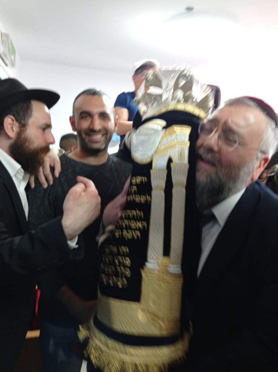ספר התורה המיוחד, הוכנס בשירה וריקודים ובשמחה גדולה למבנה שהוקצה כעת לבית הכנסת לנערים. במהלך המעמד התקיים טקס חלוקת סטים של טלית ותפילין לעשרות הנערים הנרגשים.