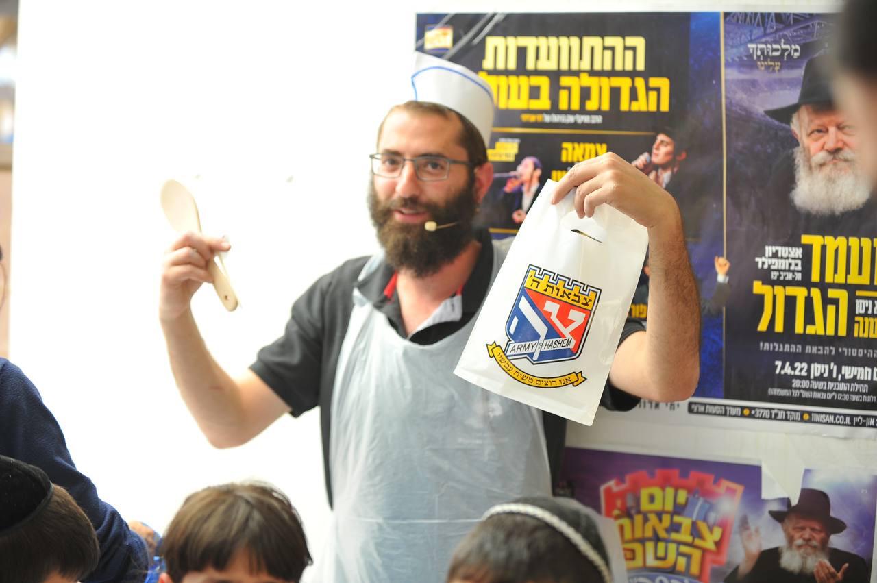 המוני ילדים נטלו חלק בהפנינג ויריד חוויות הפסח שנערך ברח' אברהם שפירא, ונהנו ממגוון סדנאות יחודיות שהועברו ע"י מנחה הסדנאות ר' בצלאל קירנברג, תוך דברי הסבר מרתק ממארגן הפעילות ר' אלעזר פרץ – מנהל 'מטה משיח' בעיר.