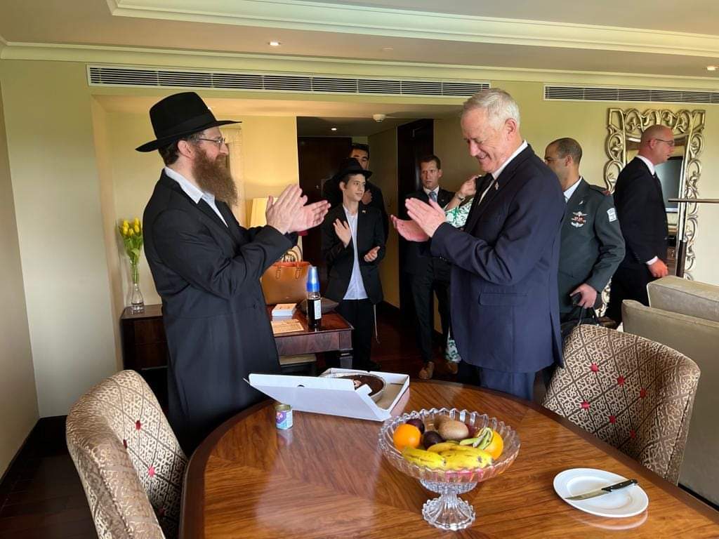 שר הביטחון בני גנץ הגיע לביקור בזק בן כמה שעות בדלהי ולמרות הלו"ז הצפוף, הוא לא וויתר על מפגש עם השלוחים להנחת תפילין ותפילה.