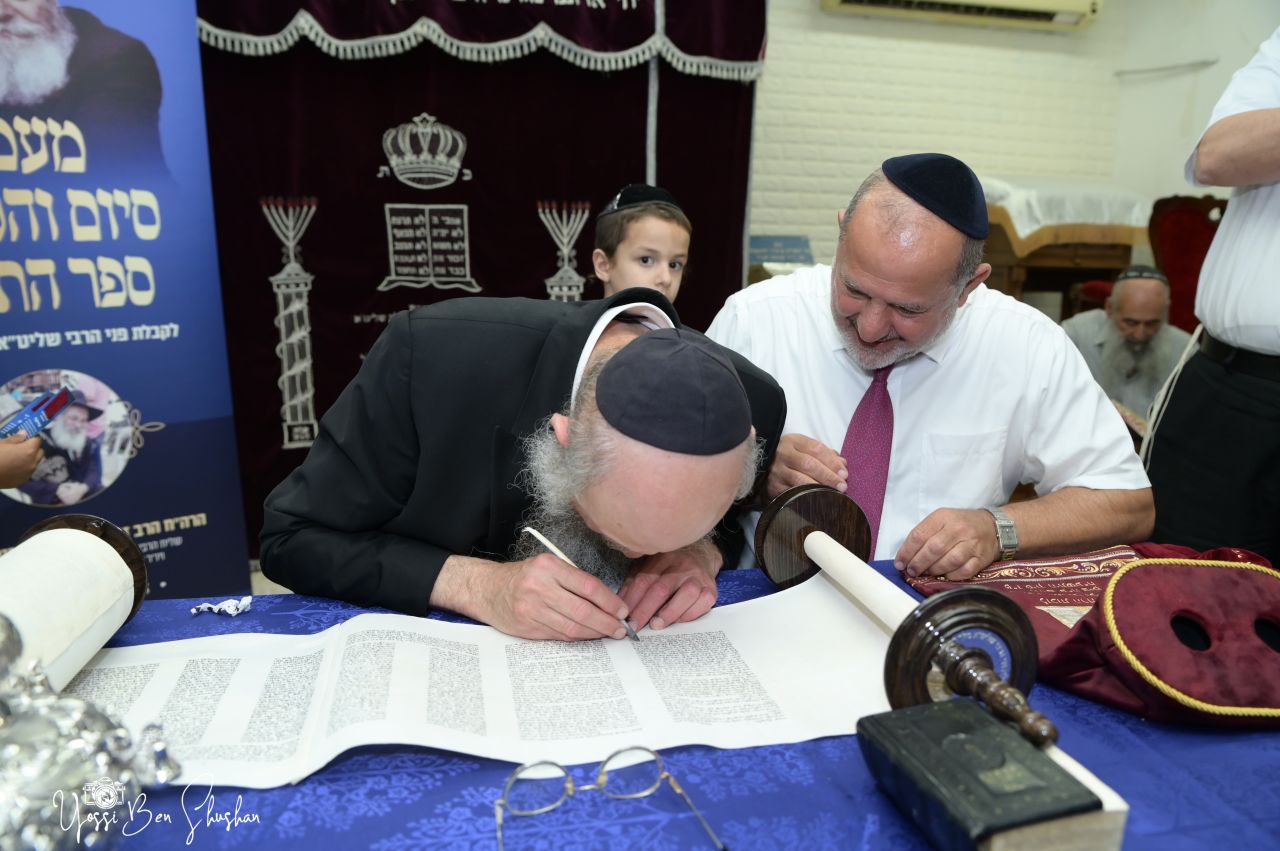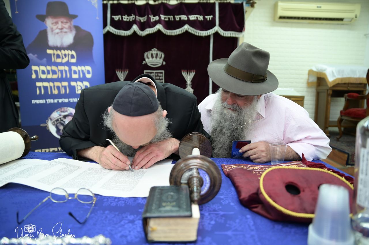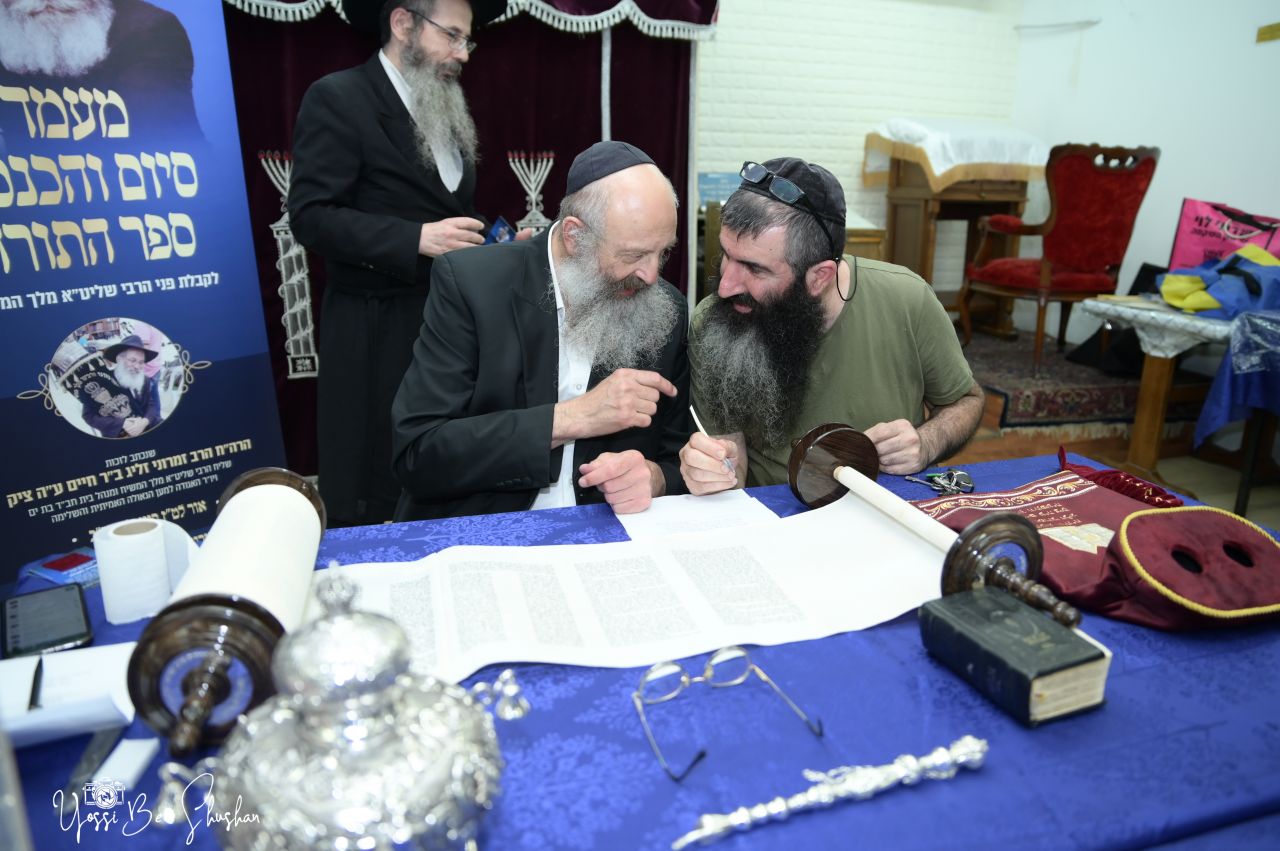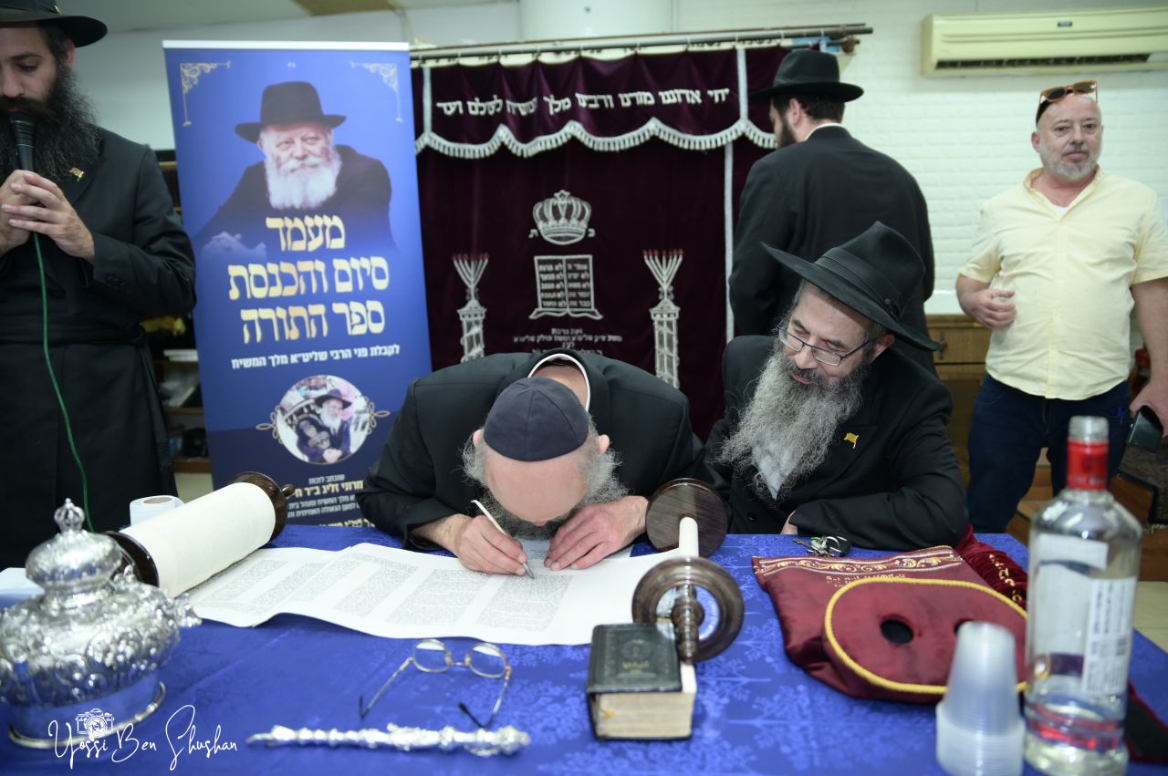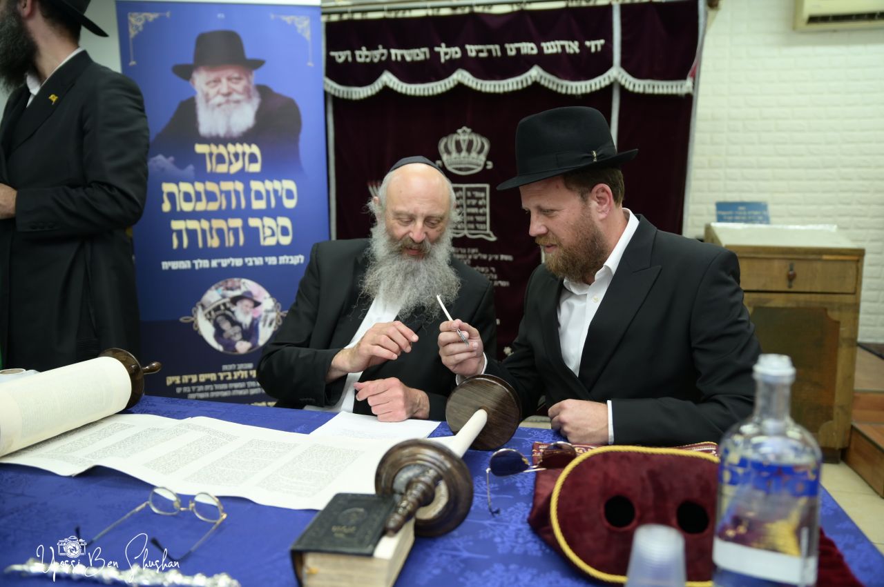בשעה 16:00 החל מעמד כתיבת האותיות בתוך בית הכנסת של בית חב"ד בשדרות העצמאות. בכתיבת האותיות כובדו משפחת ציק, תורמים וידידי הבית חב"ד. את האירוע הנחה הרב אלעד קנטור, והמשתתפים לא חסכו באמירת 'לחיים' איש לרעהו. בסיום כתיבת האותיות נעמד הקהל להגבהת וגלילת ספר התורה, ומשם יצאו כולם לתהלוכה ססגונית לכבודה של תורה.