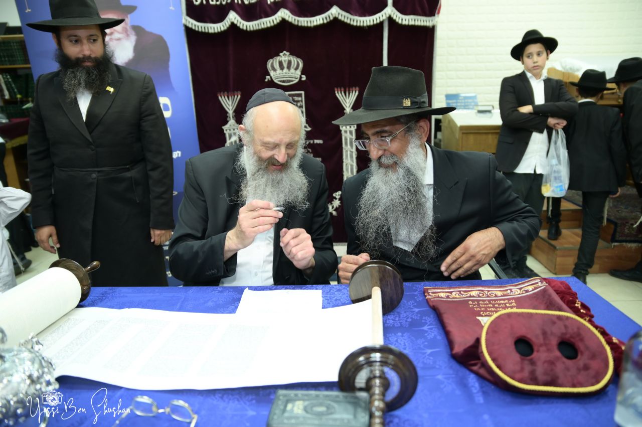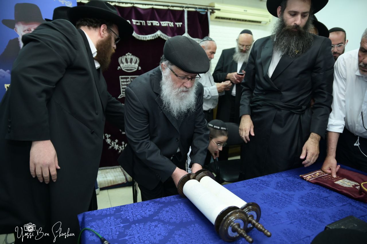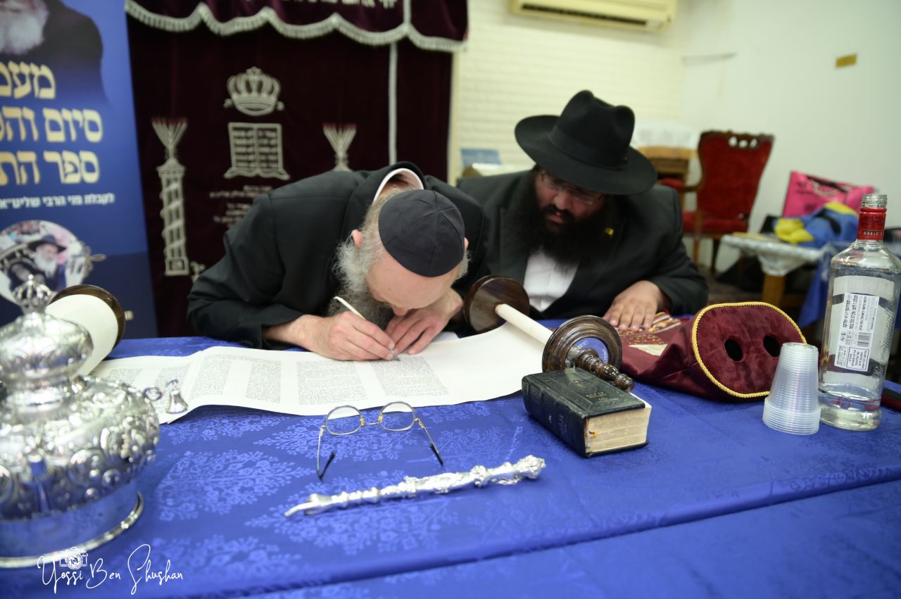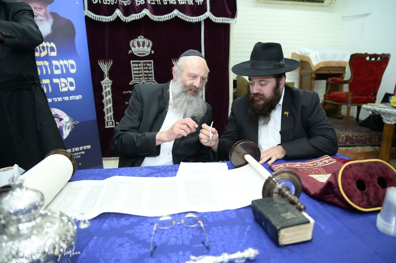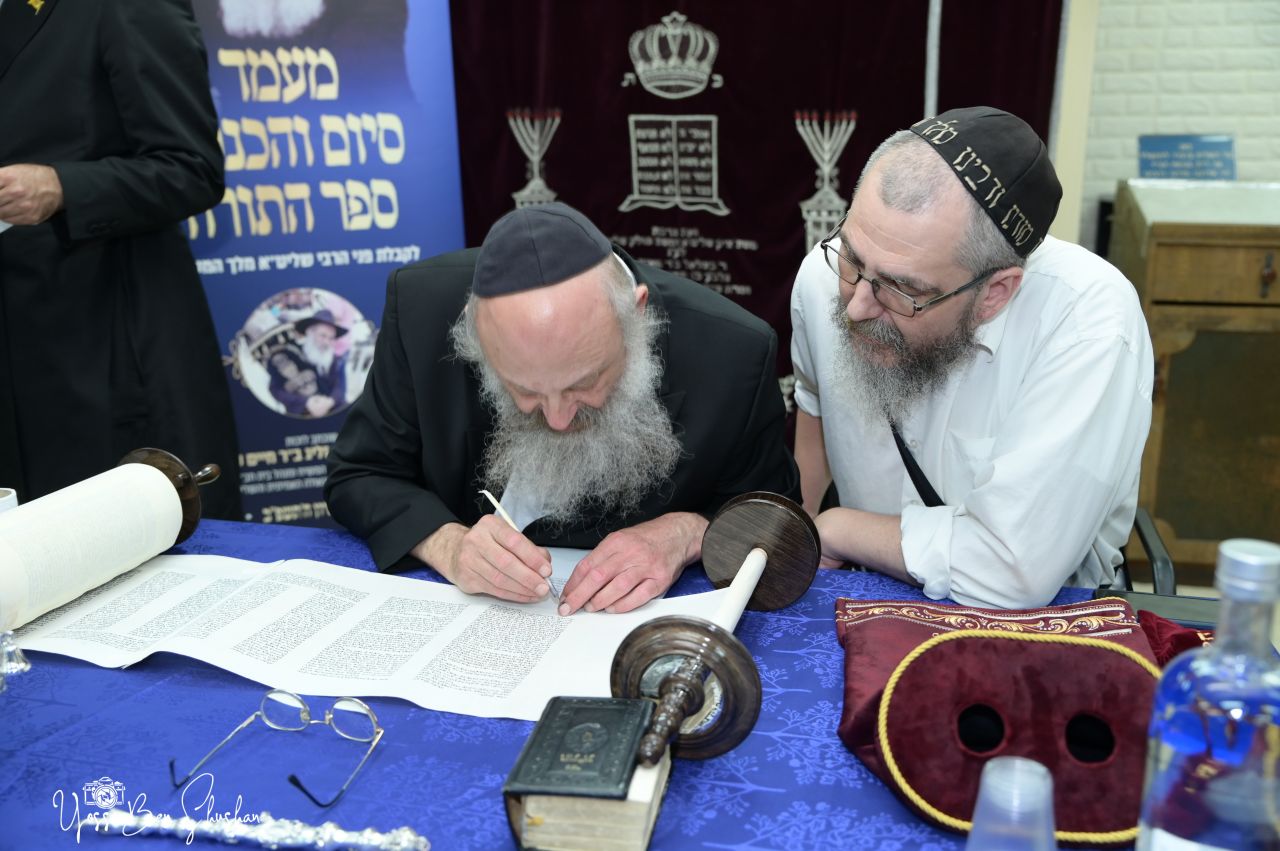 בשעה 16:00 החל מעמד כתיבת האותיות בתוך בית הכנסת של בית חב"ד בשדרות העצמאות. בכתיבת האותיות כובדו משפחת ציק, תורמים וידידי הבית חב"ד. את האירוע הנחה הרב אלעד קנטור, והמשתתפים לא חסכו באמירת 'לחיים' איש לרעהו. בסיום כתיבת האותיות נעמד הקהל להגבהת וגלילת ספר התורה, ומשם יצאו כולם לתהלוכה ססגונית לכבודה של תורה.
