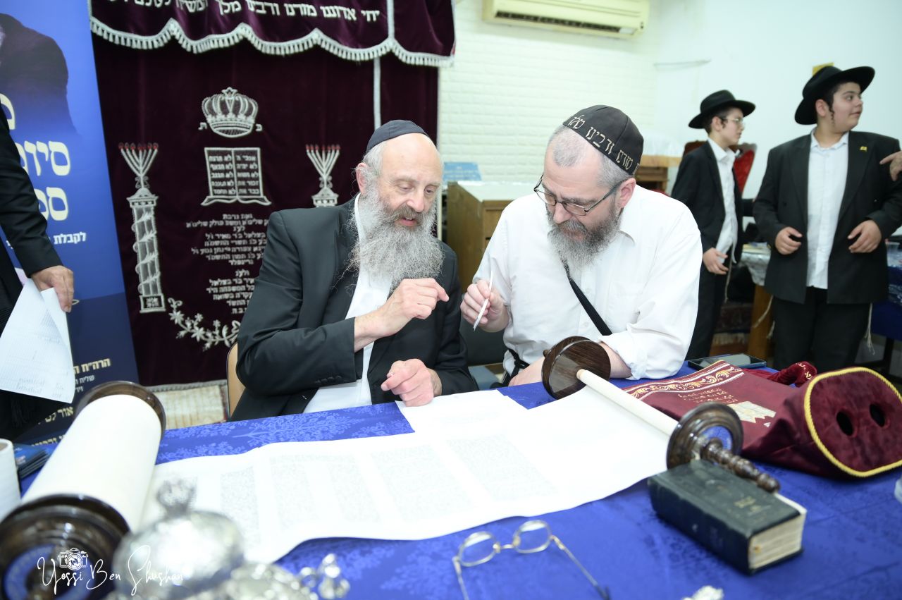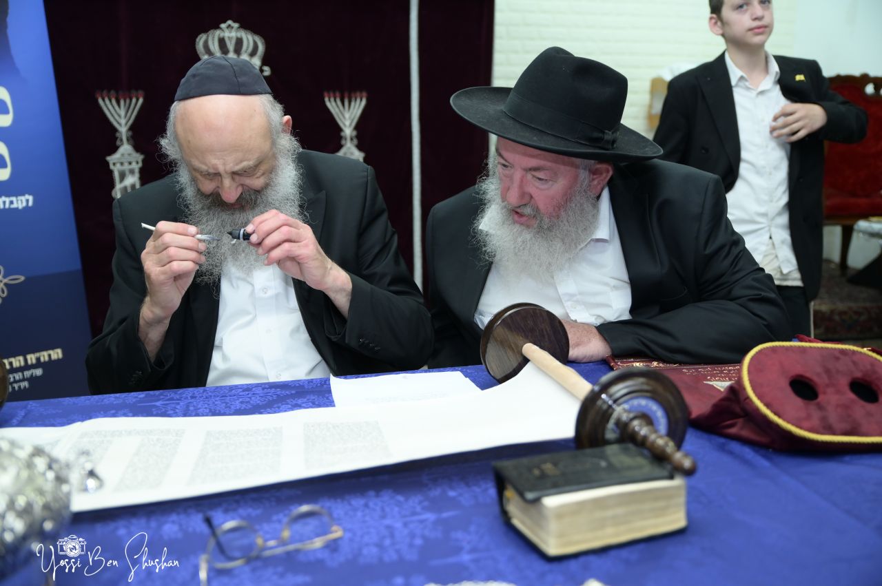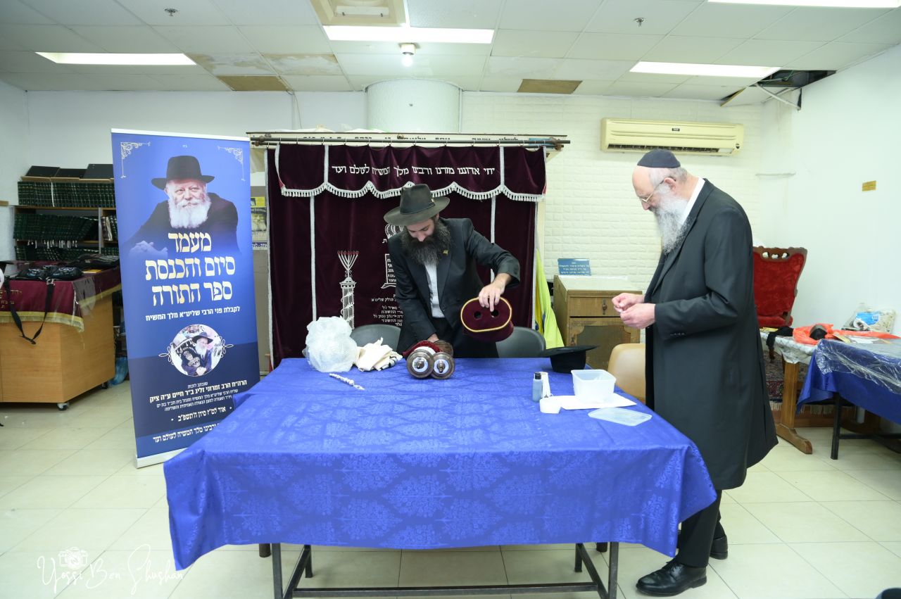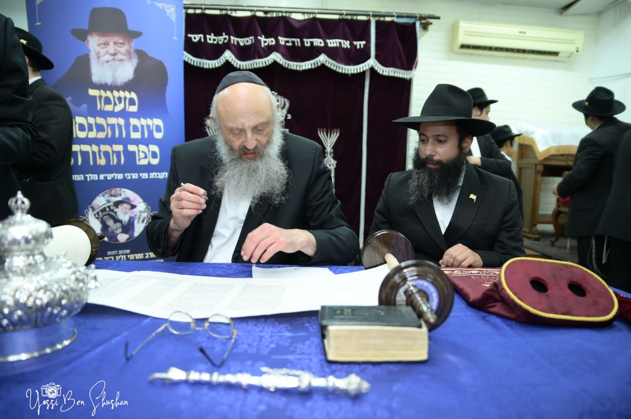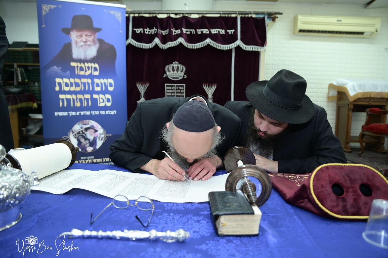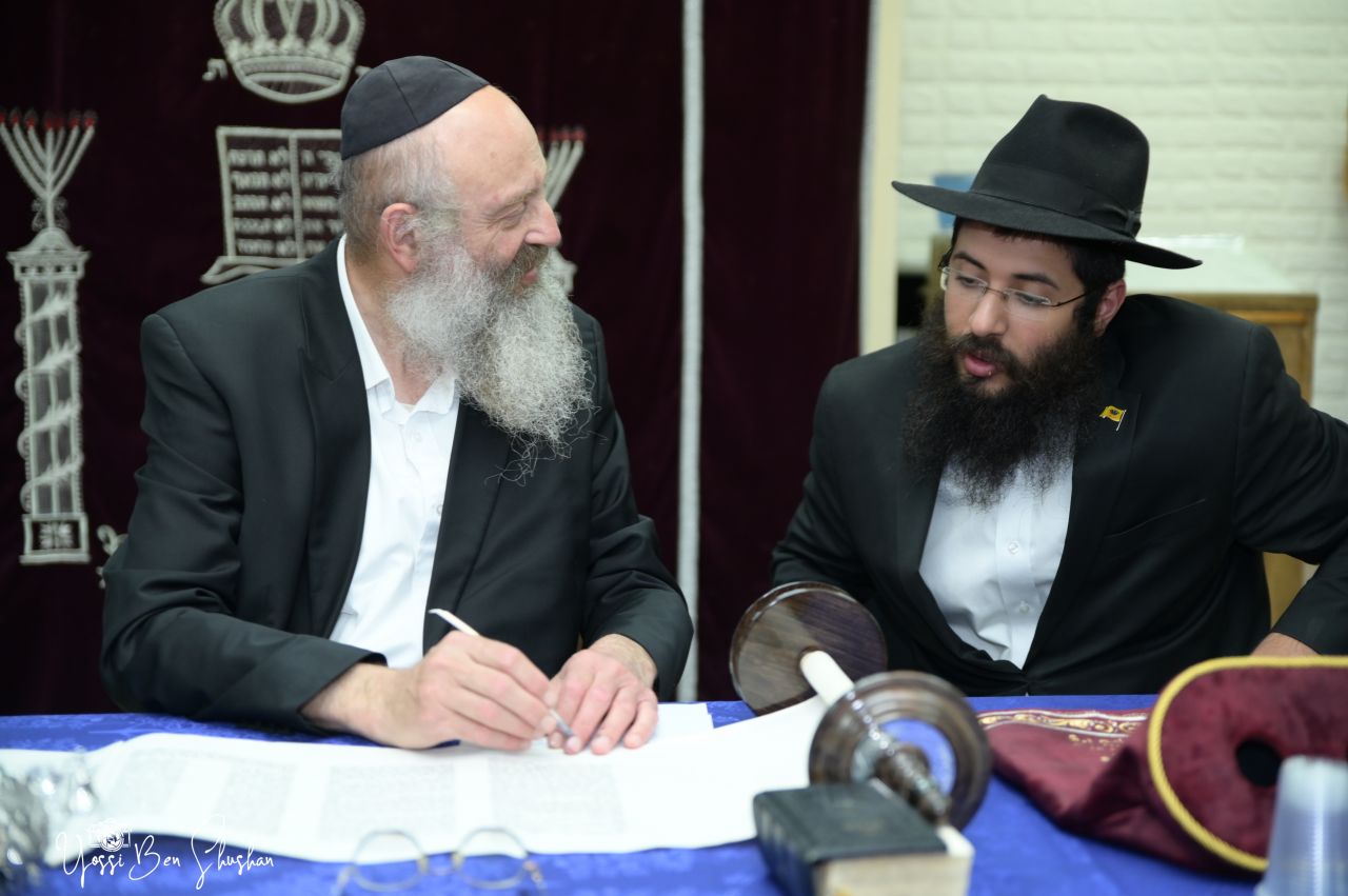 בשעה 16:00 החל מעמד כתיבת האותיות בתוך בית הכנסת של בית חב"ד בשדרות העצמאות. בכתיבת האותיות כובדו משפחת ציק, תורמים וידידי הבית חב"ד. את האירוע הנחה הרב אלעד קנטור, והמשתתפים לא חסכו באמירת 'לחיים' איש לרעהו. בסיום כתיבת האותיות נעמד הקהל להגבהת וגלילת ספר התורה, ומשם יצאו כולם לתהלוכה ססגונית לכבודה של תורה.