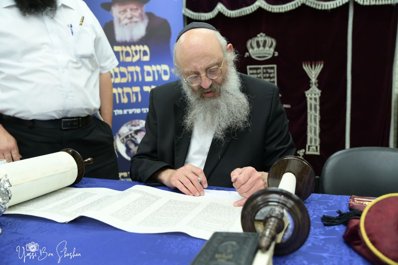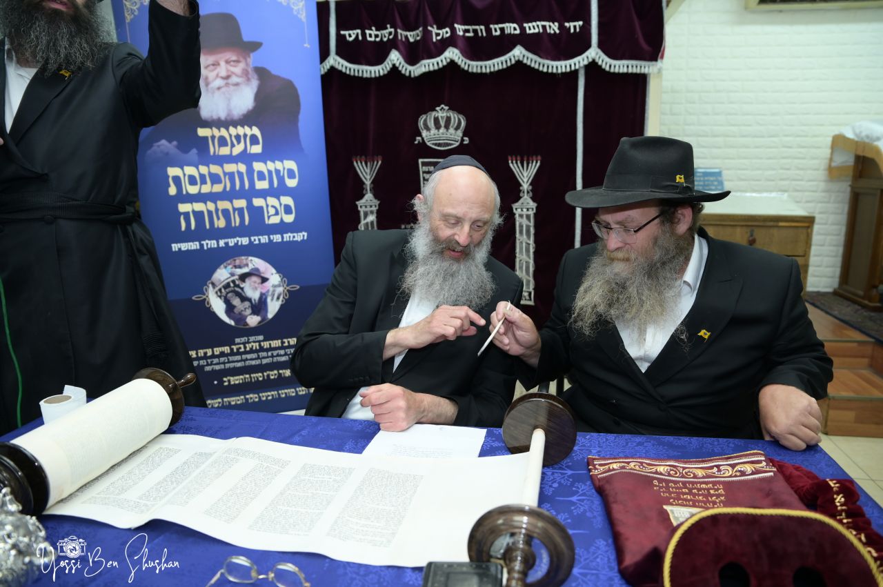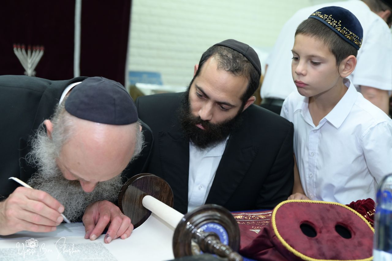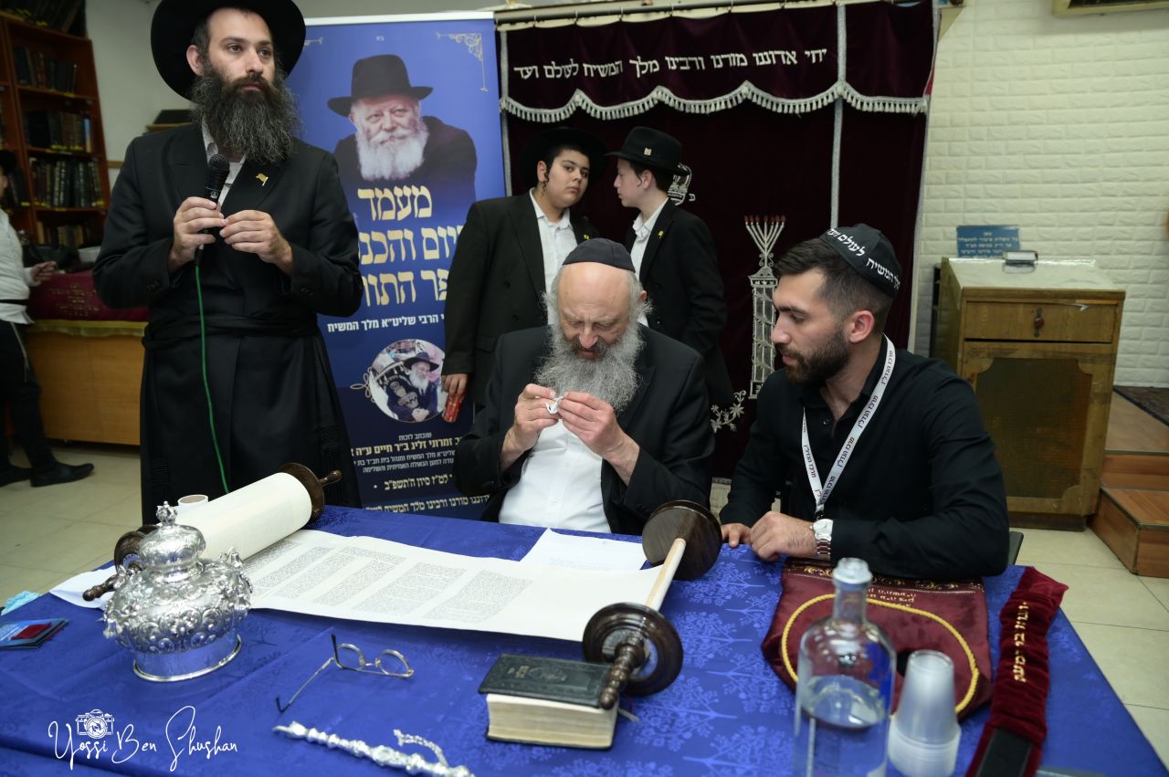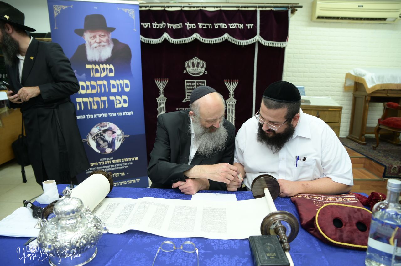 בשעה 16:00 החל מעמד כתיבת האותיות בתוך בית הכנסת של בית חב"ד בשדרות העצמאות. בכתיבת האותיות כובדו משפחת ציק, תורמים וידידי הבית חב"ד. את האירוע הנחה הרב אלעד קנטור, והמשתתפים לא חסכו באמירת 'לחיים' איש לרעהו. בסיום כתיבת האותיות נעמד הקהל להגבהת וגלילת ספר התורה, ומשם יצאו כולם לתהלוכה ססגונית לכבודה של תורה.