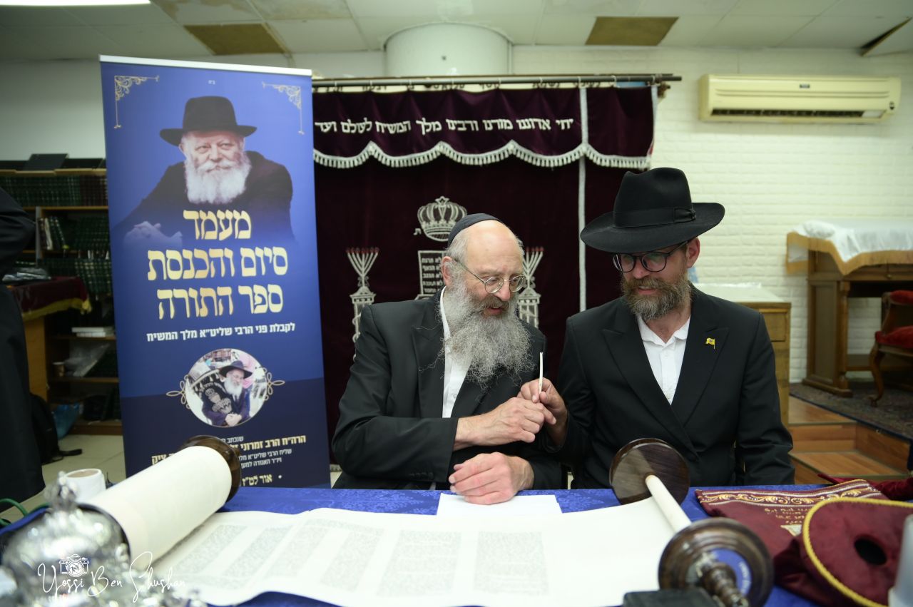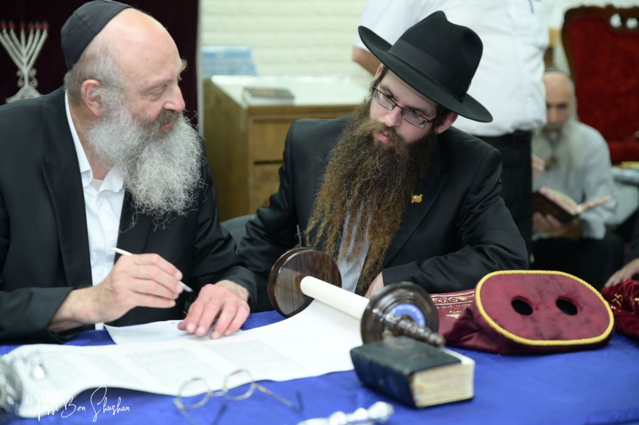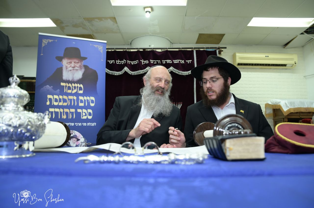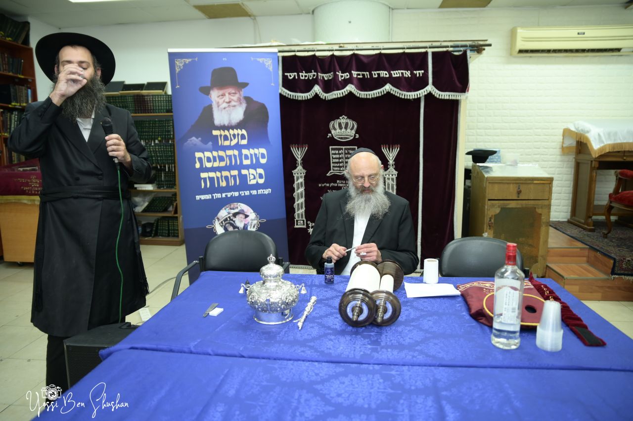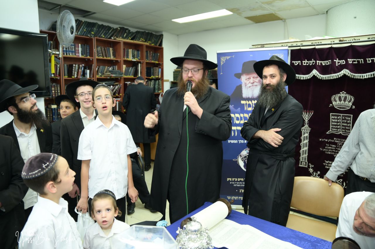 בשעה 16:00 החל מעמד כתיבת האותיות בתוך בית הכנסת של בית חב"ד בשדרות העצמאות. בכתיבת האותיות כובדו משפחת ציק, תורמים וידידי הבית חב"ד. את האירוע הנחה הרב אלעד קנטור, והמשתתפים לא חסכו באמירת 'לחיים' איש לרעהו. בסיום כתיבת האותיות נעמד הקהל להגבהת וגלילת ספר התורה, ומשם יצאו כולם לתהלוכה ססגונית לכבודה של תורה.