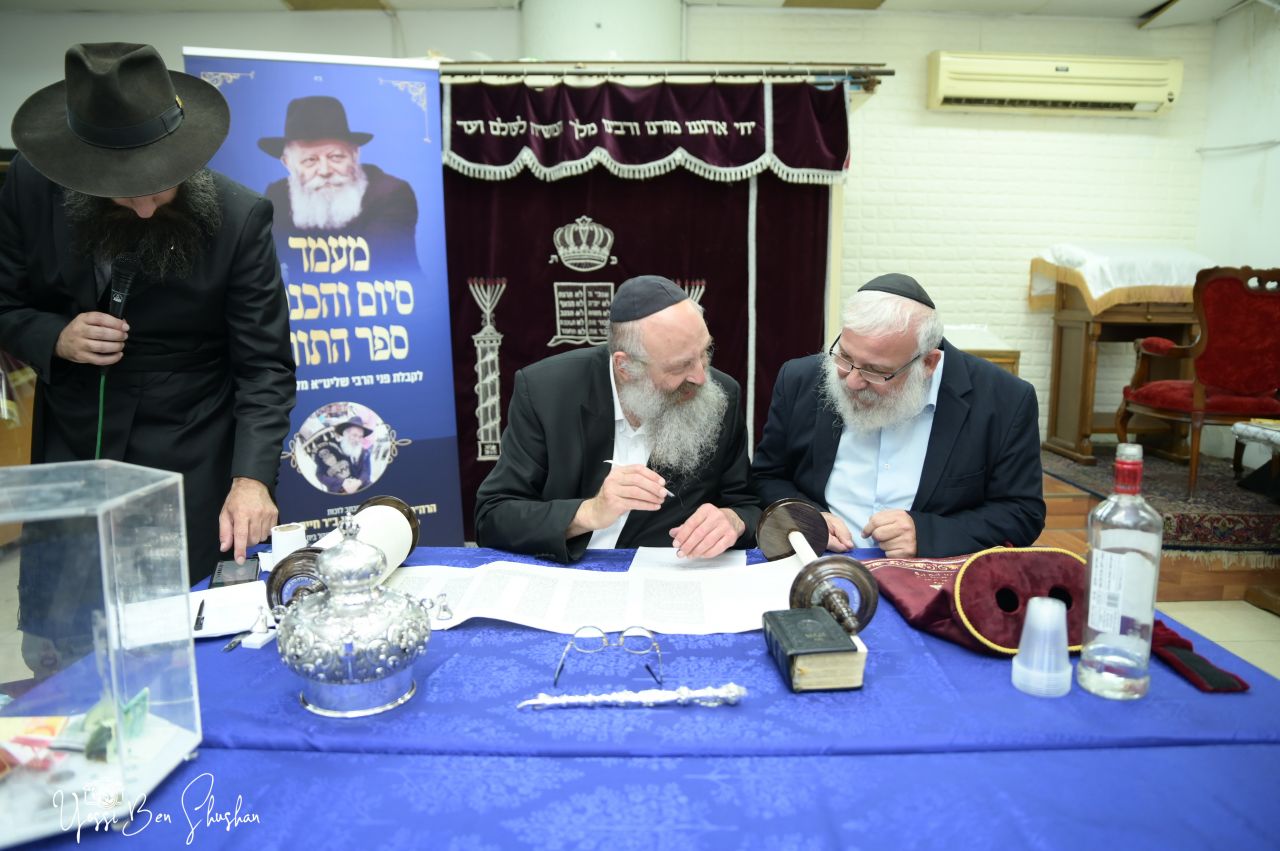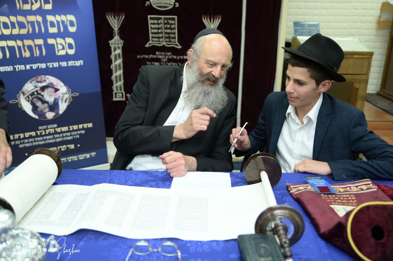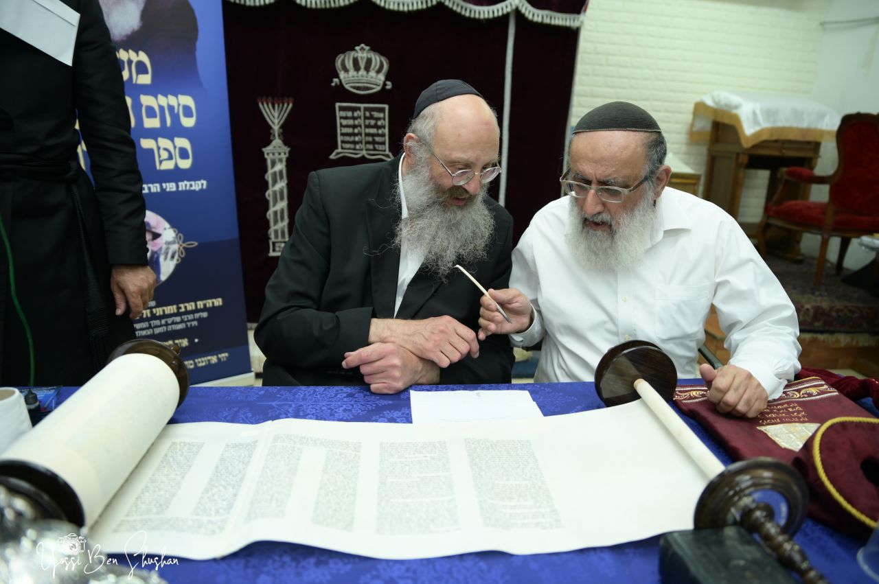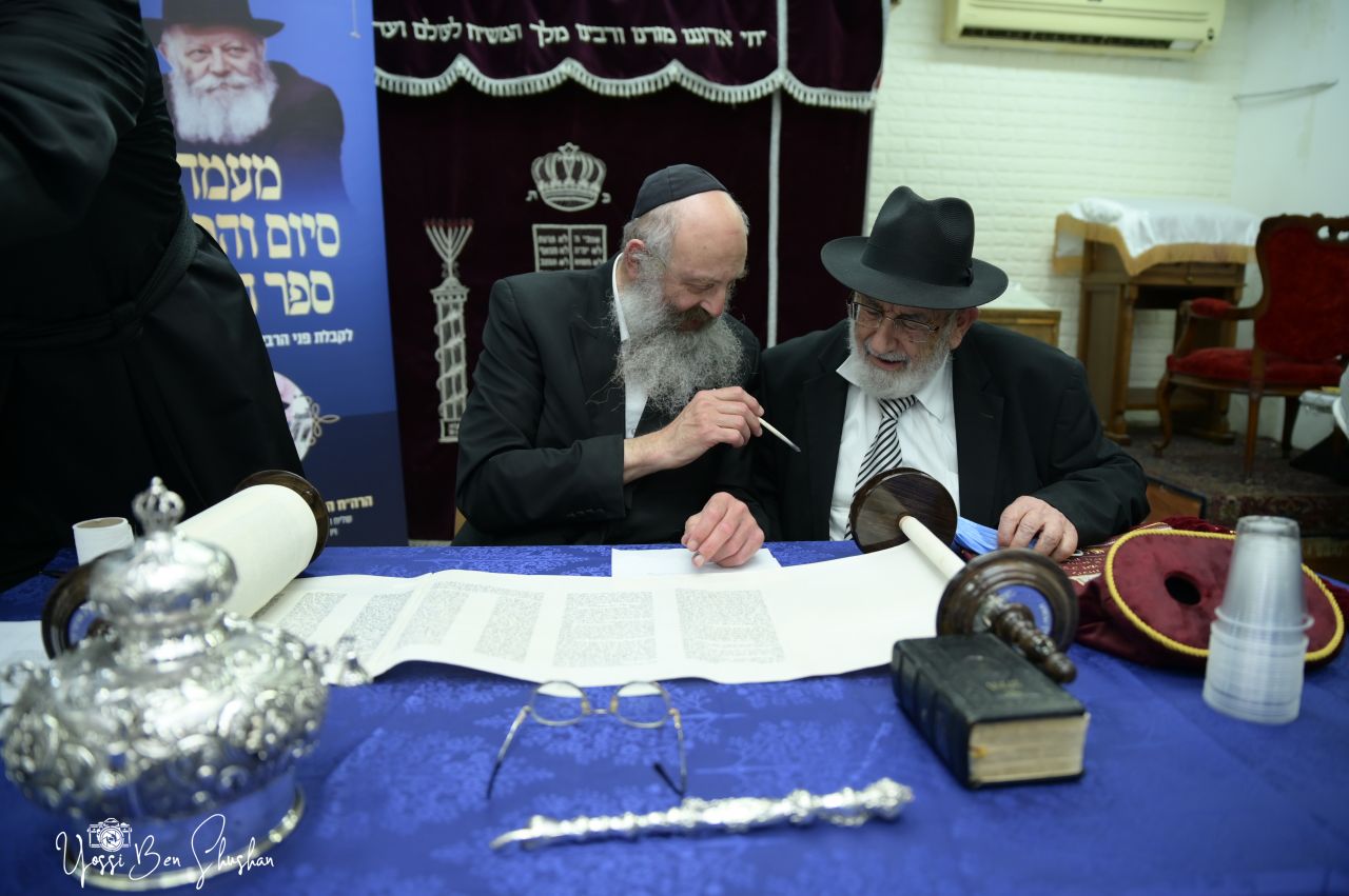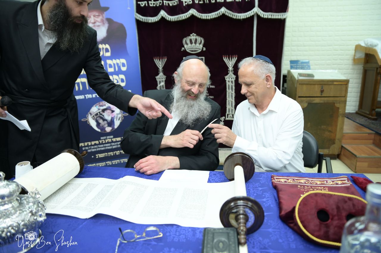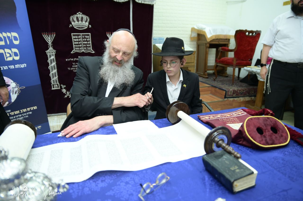 בשעה 16:00 החל מעמד כתיבת האותיות בתוך בית הכנסת של בית חב"ד בשדרות העצמאות. בכתיבת האותיות כובדו משפחת ציק, תורמים וידידי הבית חב"ד. את האירוע הנחה הרב אלעד קנטור, והמשתתפים לא חסכו באמירת 'לחיים' איש לרעהו. בסיום כתיבת האותיות נעמד הקהל להגבהת וגלילת ספר התורה, ומשם יצאו כולם לתהלוכה ססגונית לכבודה של תורה.