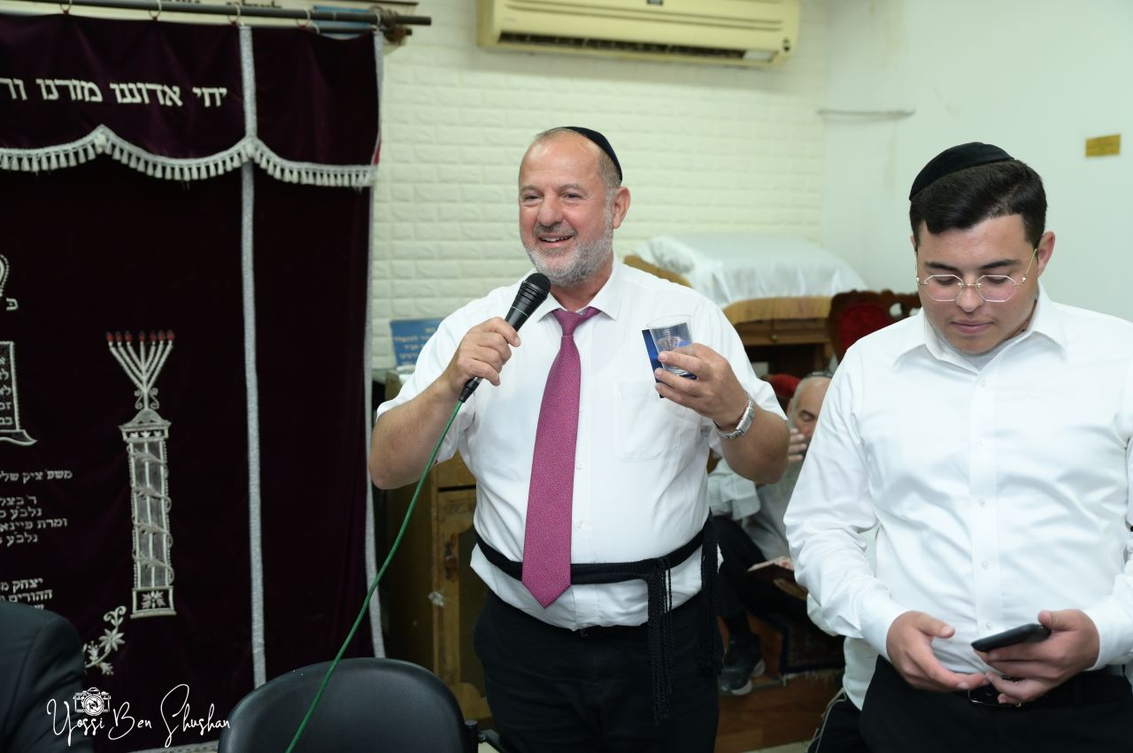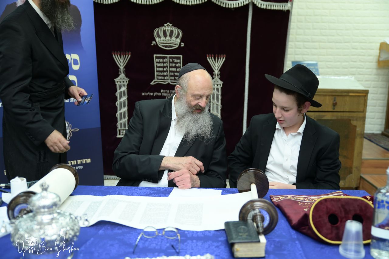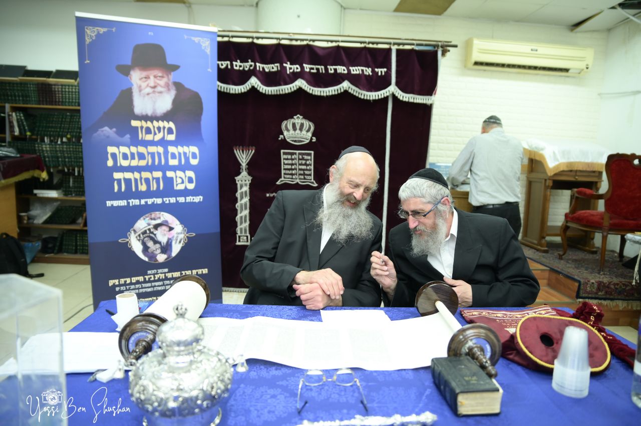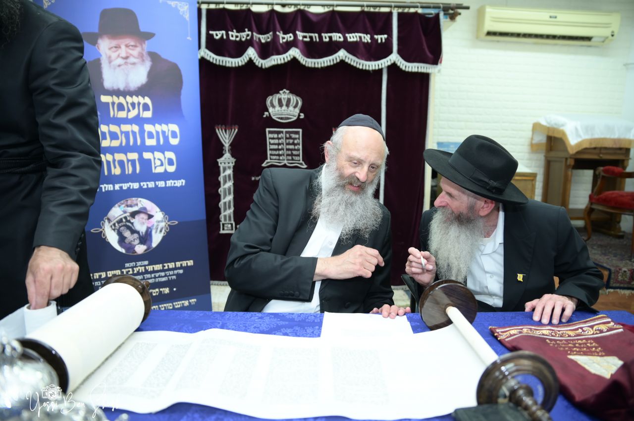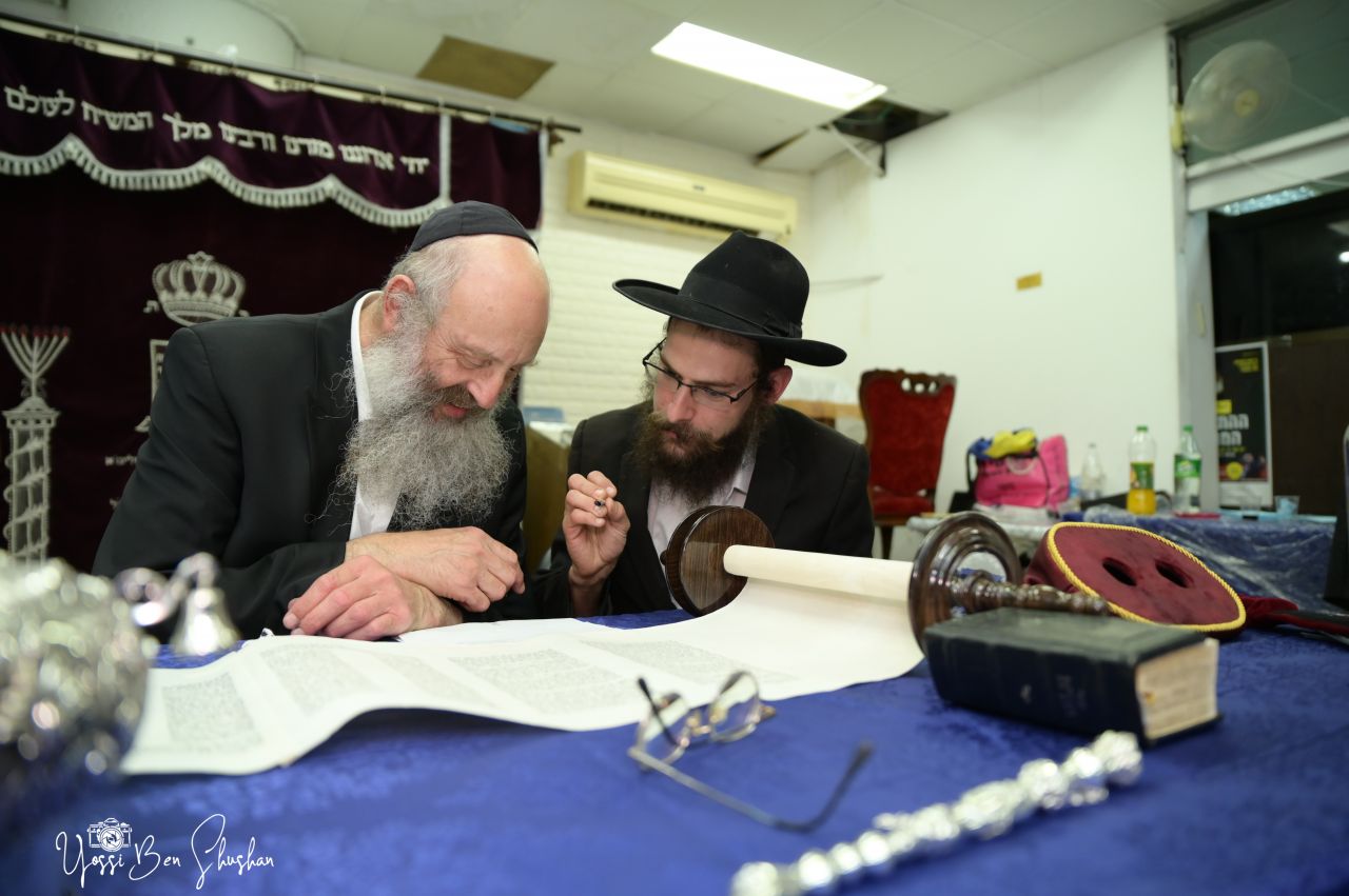 בשעה 16:00 החל מעמד כתיבת האותיות בתוך בית הכנסת של בית חב"ד בשדרות העצמאות. בכתיבת האותיות כובדו משפחת ציק, תורמים וידידי הבית חב"ד. את האירוע הנחה הרב אלעד קנטור, והמשתתפים לא חסכו באמירת 'לחיים' איש לרעהו. בסיום כתיבת האותיות נעמד הקהל להגבהת וגלילת ספר התורה, ומשם יצאו כולם לתהלוכה ססגונית לכבודה של תורה.