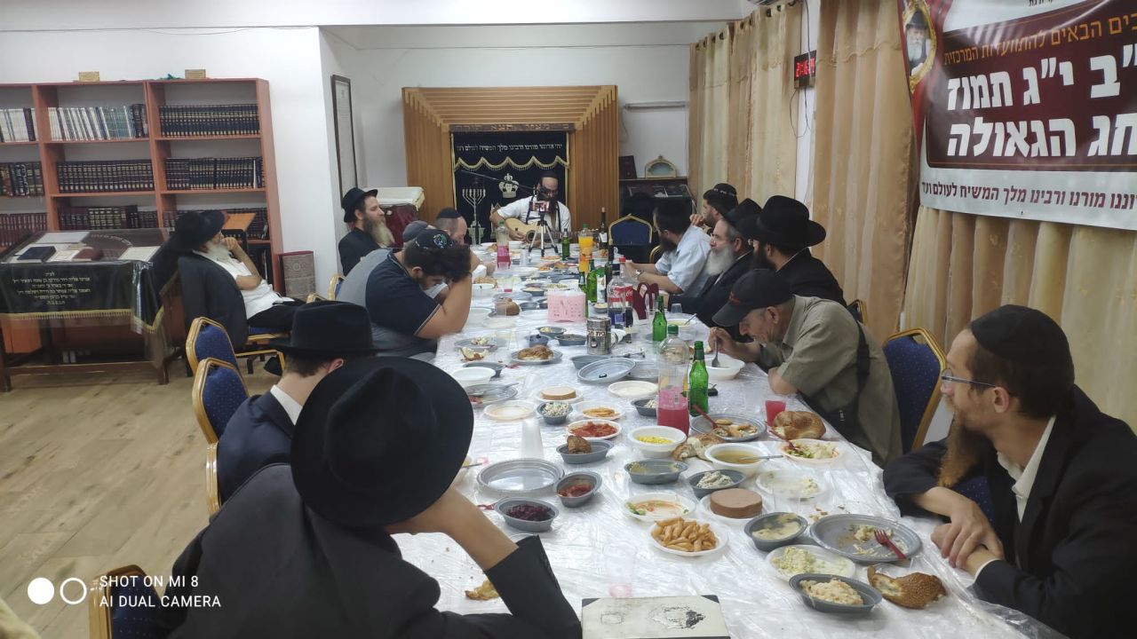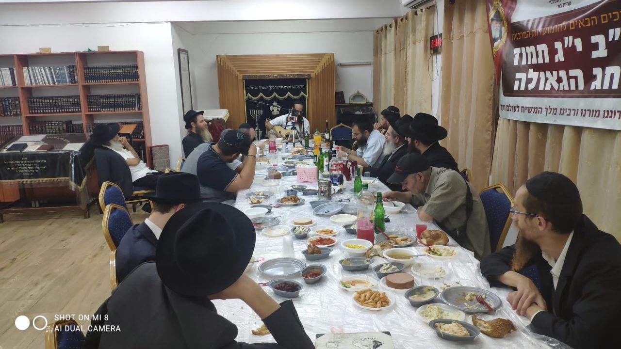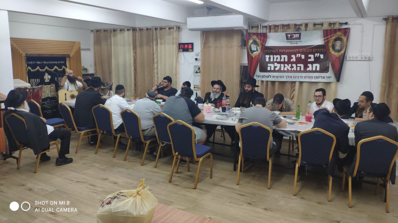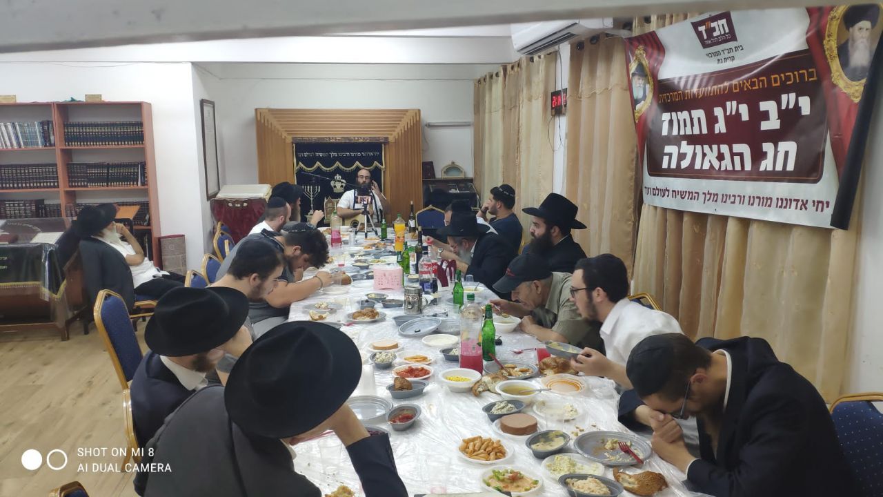 התוועדות חסידית תוססת בהשתתפות הרב עמית משה בסיפור חיים מרתק בליווי מוזיקה וניגוני נשמה ובהשתתפות הרב שלמה בוטבול יו"ר בית חב"ד המרכזי והרב אהרון בוטבול שליח הרבי שליט״א מלך המשיח ומנכ"ל בית חב"ד המרכזי ששולב בחגיגת סיום הרמב"ם ברוב עם הדרת מלך סביב שולחנות ערוכים ומשקה כיד המלך.