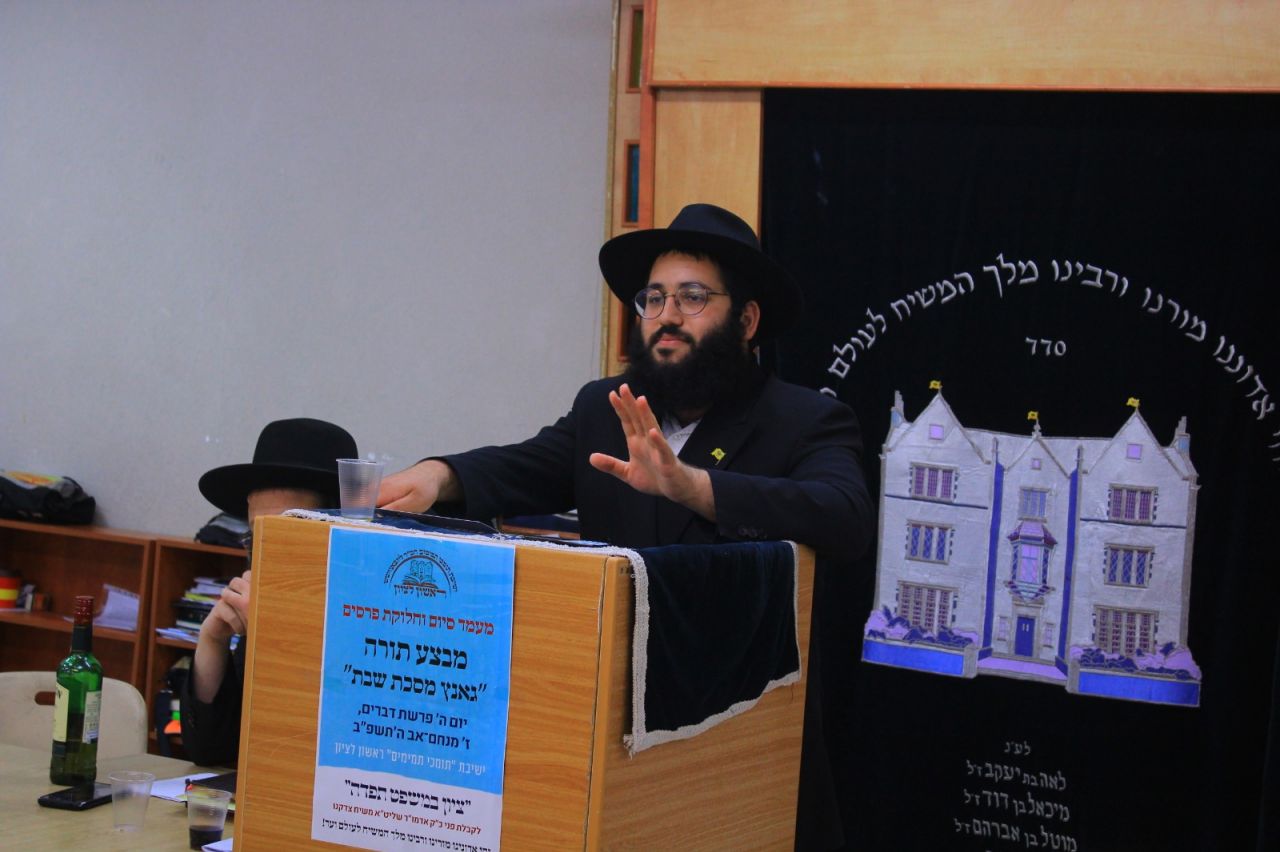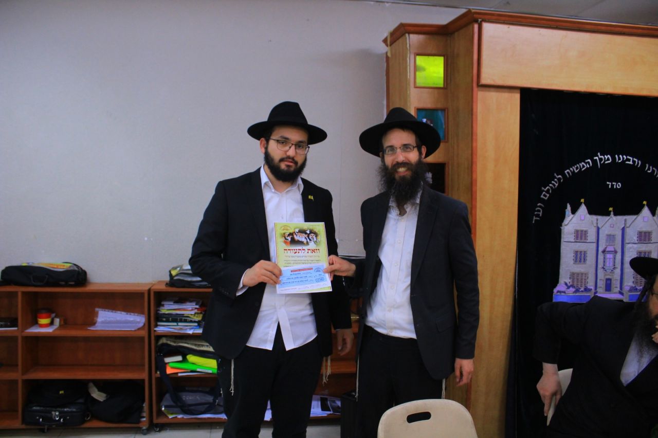 אולם דומה כי השיא היה דווקא במסיבת הסיום בצהרי יום חמישי האחרון, בה העלו על נס את העובדה המרנינה שבמהלך השנה החולפת כשלשים תמימים נבחנו בעל פה על רובה ככולה של מסכת שבת! בזה אחר זה הם עלו לדוכן וקיבלו מלגה יקרה עבור יגיעתם, כאשר אחד מבחירי התמימים העולה לקבוצה, הת' מנחם מענדל כהן, ערך סיום על מסכת שבת עם הדרן עמוק ורחב מכ"ק אדמו"ר מלך המשיח שליט"א.
