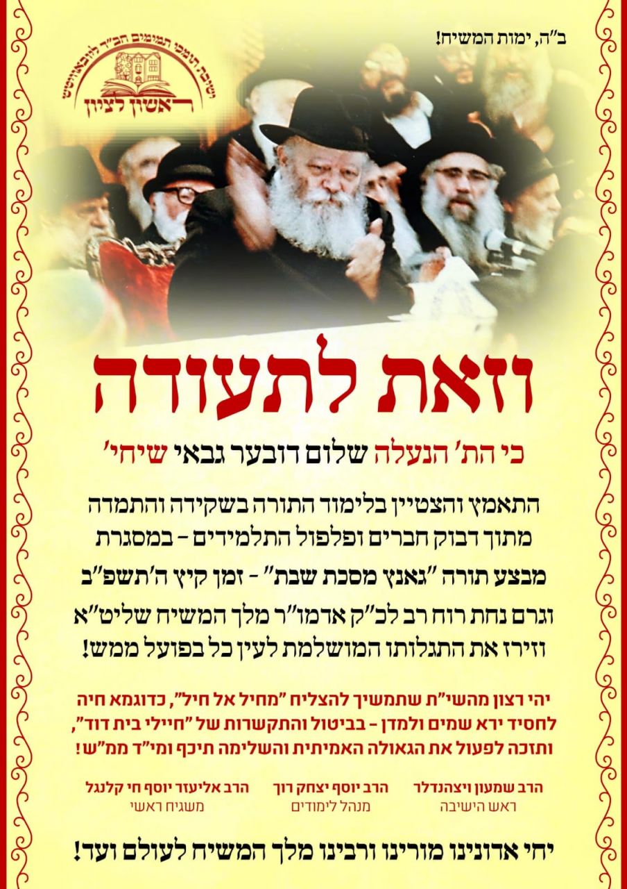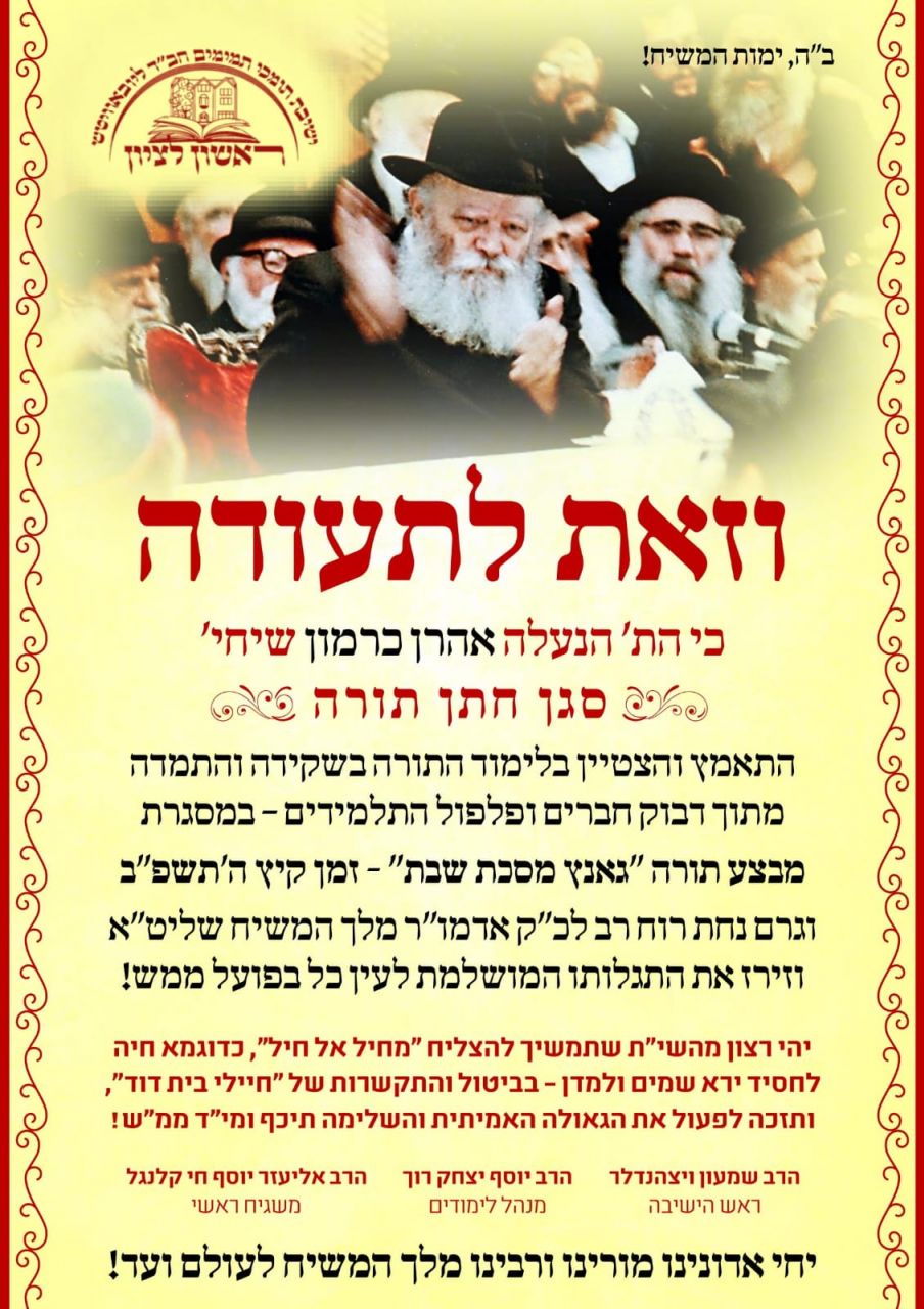 שיחותיו הקבועות של כ"ק אדמו"ר מלך המשיח שליט"א על 'סיומי שנה' שתכליתם היא עליה והתקדמות לשלב חשוב יותר, באו לידי ביטוי מוחשי בשבוע האחרון של זמן הלימודים, בישיבת 'תומכי תמימים' ראשון לציון.