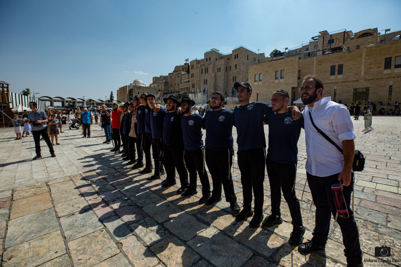 אח"כ המשיכו לכיוון הכותל, התפללו תפילת מנחה בקול ובחיות, ומיד נעמדו למסדר עוצמתי ברחבת הכותל המרכזית, וגרמו לקידוש ה' גדול ורוב נחת רוח למשלח הרבי מלך המשיח שליט"א.