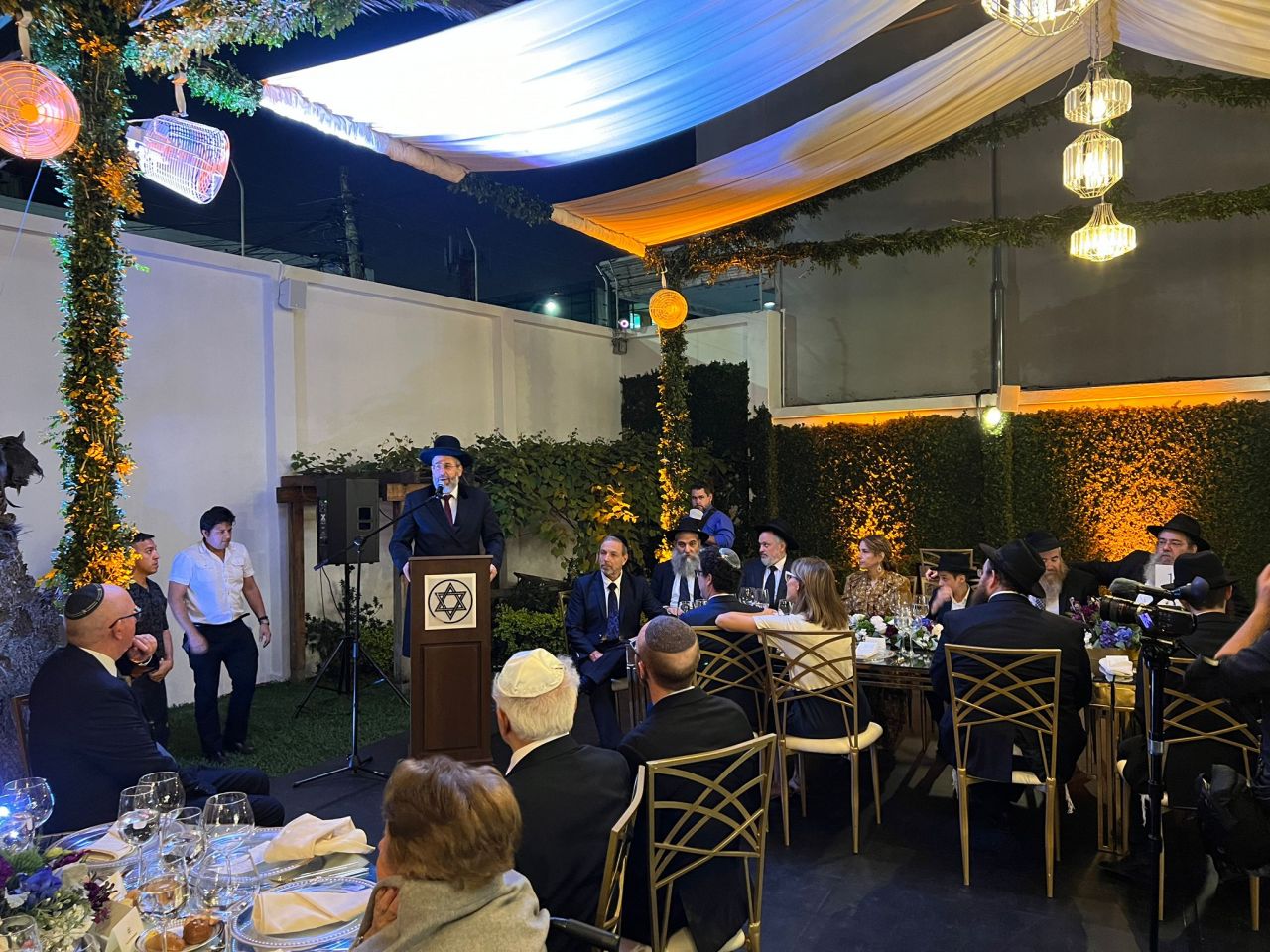 חברי הקהילה הנרגשים בירכו את הרב על תפקידו. נציג חברי הקהילה, נשיא הקהילה היהודית מר ג'וני צ'רנינסקי עלה לבמה לברך את השליח לרגל האירוע המרגש וכן להודות לו על פועלו הרב למען הקהילה היהודית באקוודור כולה במשך זמן ארוך.