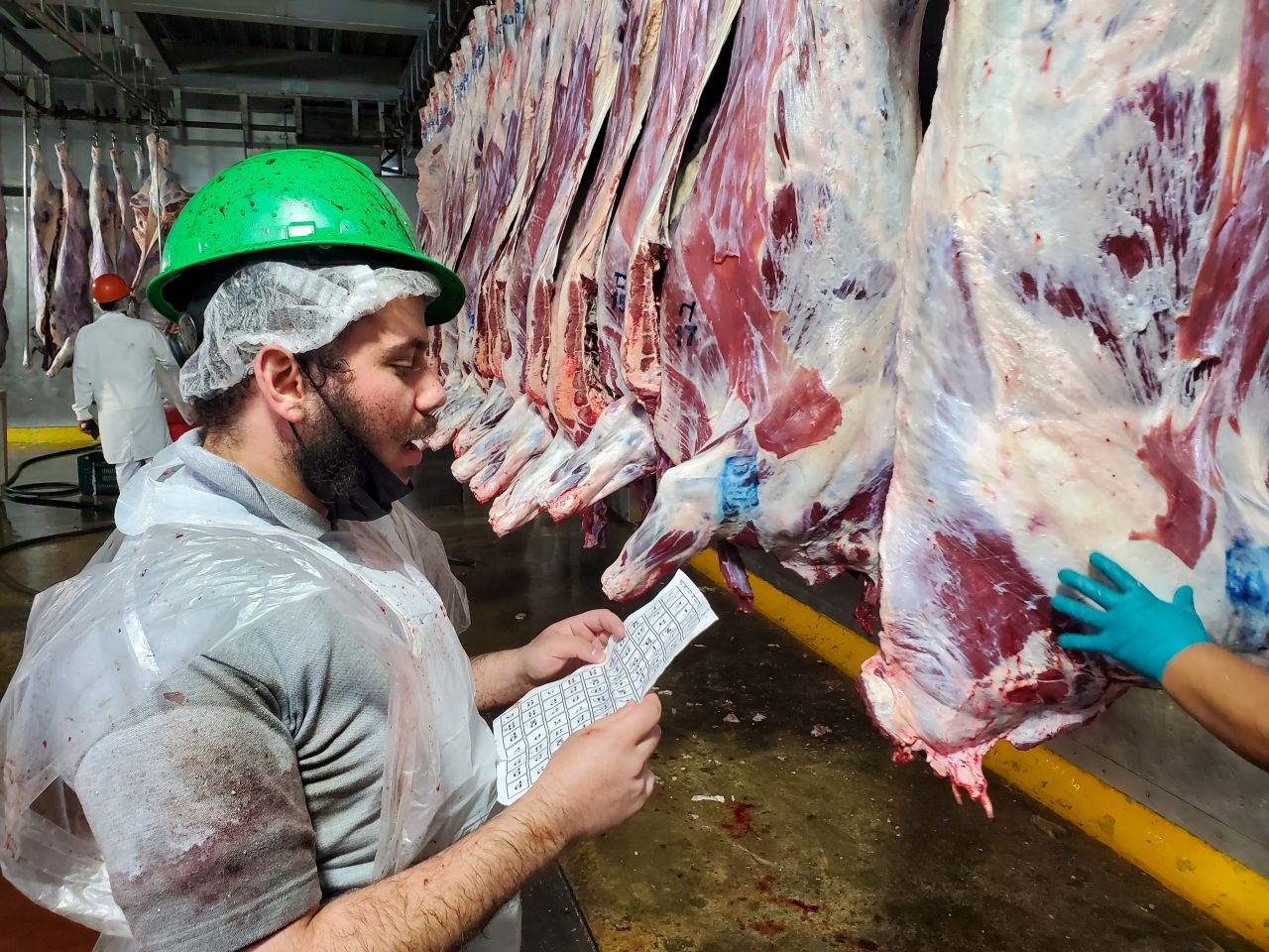 לקראת השחיטה, הגיעו הרבנים למפעל לראות את השחיטה, ערכו בדיקת ראייה ובדיקת הסכינים של השו"ב והשחיטה של חב"ד ליובאוויטש פרו.