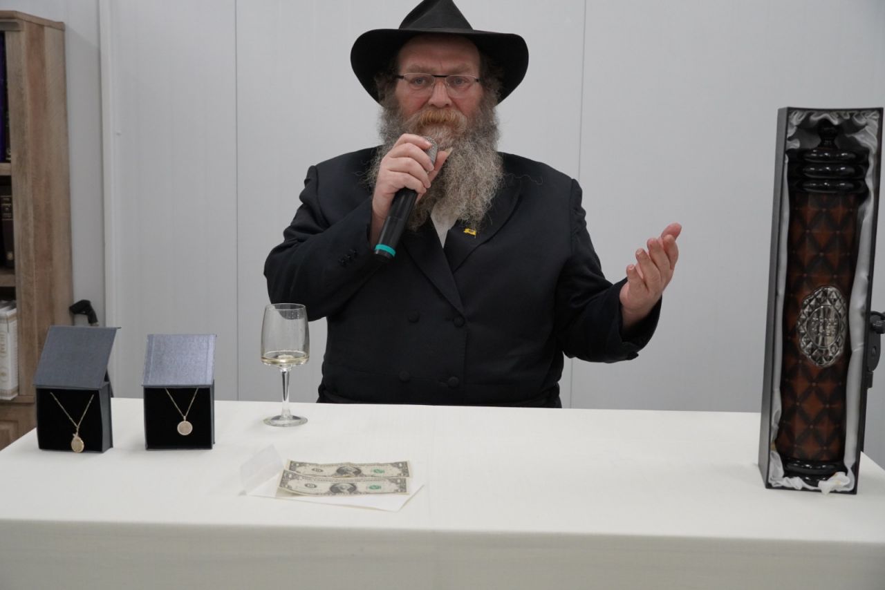בהמשך נערכה הגרלה על מספר פריטים יקרי ערך: דולר שנתקבל מידו הקדושה של הרבי שליט"א מלך המשיח, שרשראות ממטבעות שהתקבלו מידו הקדושה של הרבי שליט"א מלך המשיח ומגילת אסתר יוקרתית.