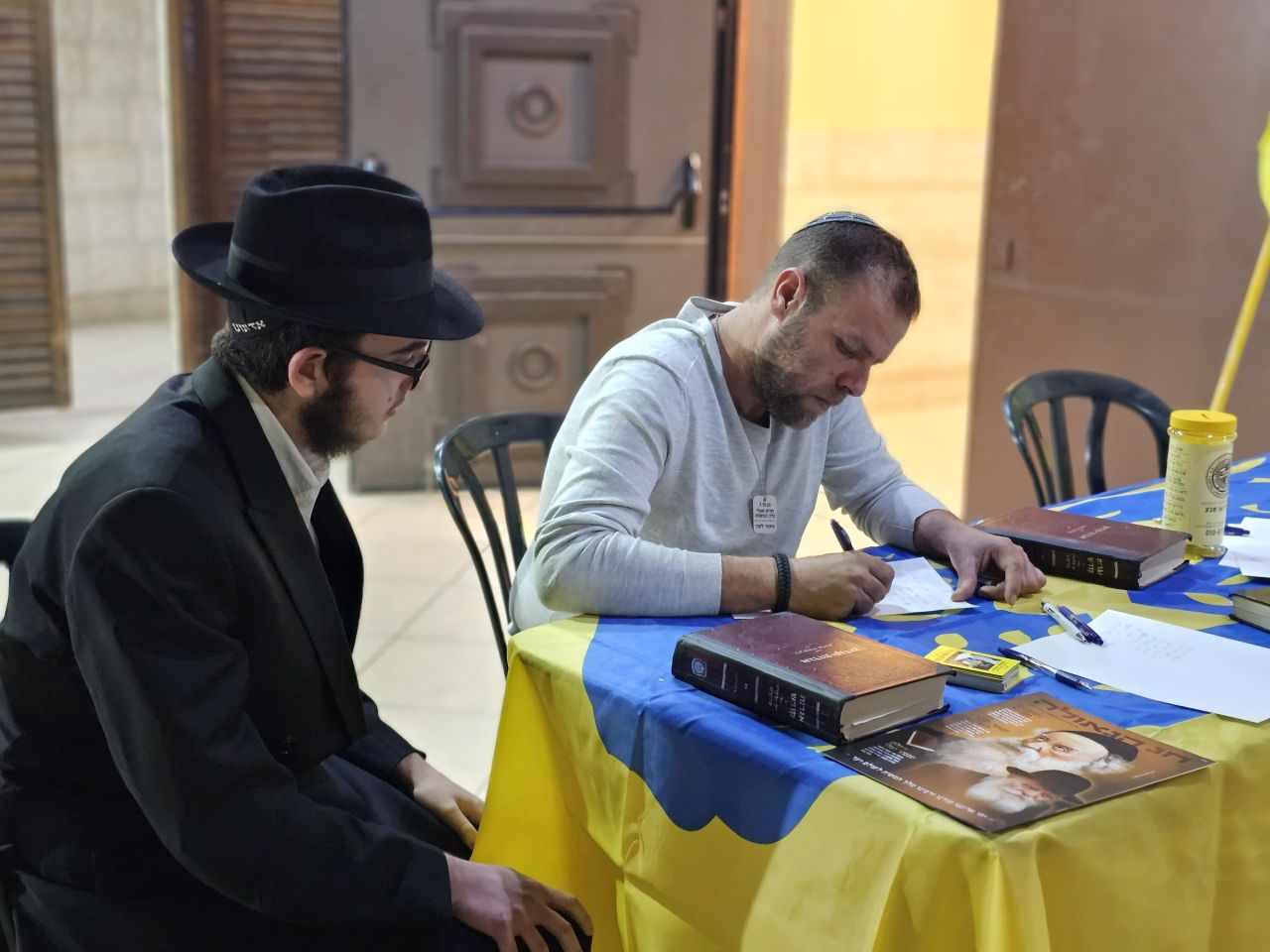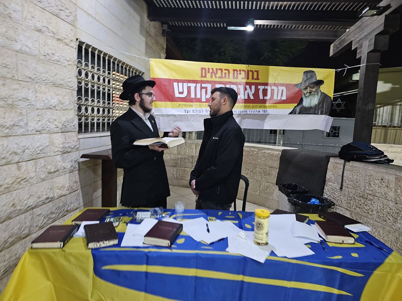 המנחה הרב בנצי פרישמן שיחי׳, מנהל מוסדות חינוך חב״ד בעיר בת ים, פותח את ההתוועדות המיוחדת ומזמין את אל״מ במיל׳ מר יעקב עמר שיחי׳ ששימש כמפקד חטיבת עזה לחלוק עם הציבור את הניסים הגדולים שקורים ברגעים אלו לעם ישראל במלחמת חרבות ברזל.