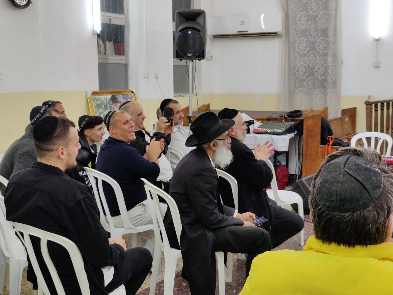 הקהל החל לשיר ולמחוא כפיים משמחה, תוך כדי אמירת לחיים על ערק העלית הקפוא...