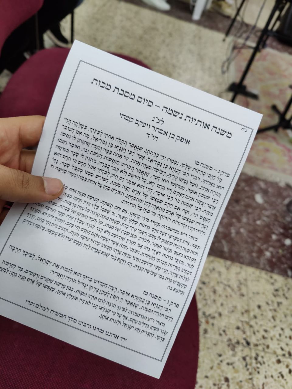 לאחר מכן הרב יצחק רחימי ערך סיום מסכת מכות לעילוי נשמתו של אופק וביאר את המשניות האחרונות, לאחר הסיום בני משפחתו אמרו קדיש לזכותו.