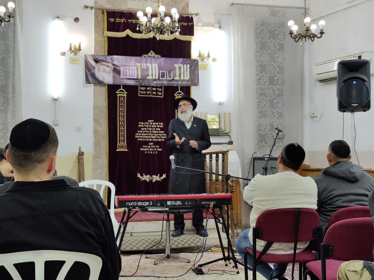 לבמה הוזמן רב בית הכנסת נועם אלימלך ושליח הרבי שליט"א מלך המשיח בבת ים הרב יצחק רחימי לומר דברי תורה. הקהל היה מרותק וקשוב לדברים החשובים.