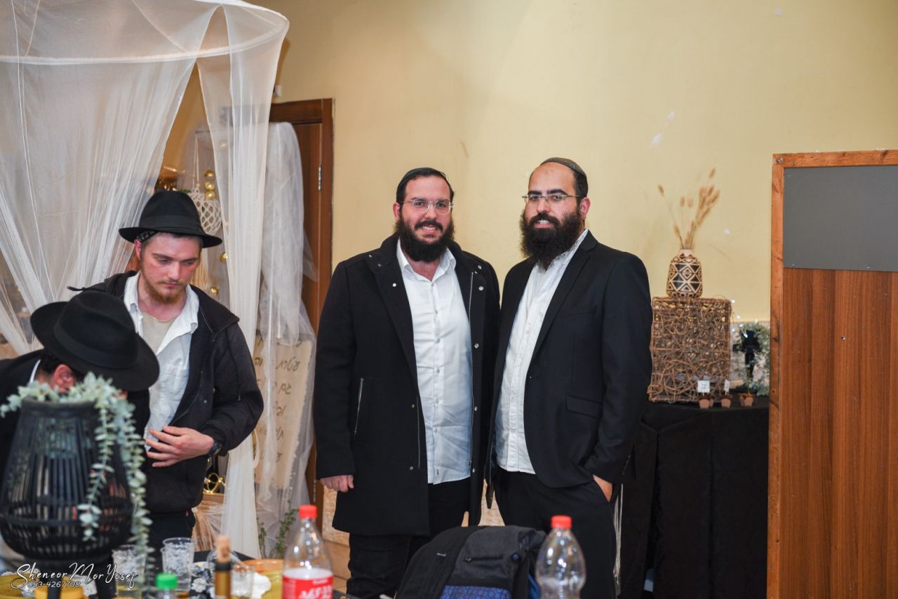 קהל רב הגיע לשמח את החתן והכלה, הגה״ח הרב מאיר סויסא שליט״א, רב אזורי רמת נגב ורב שכונה א׳, קיים את מנהגי התנאים לחתן והכלה.