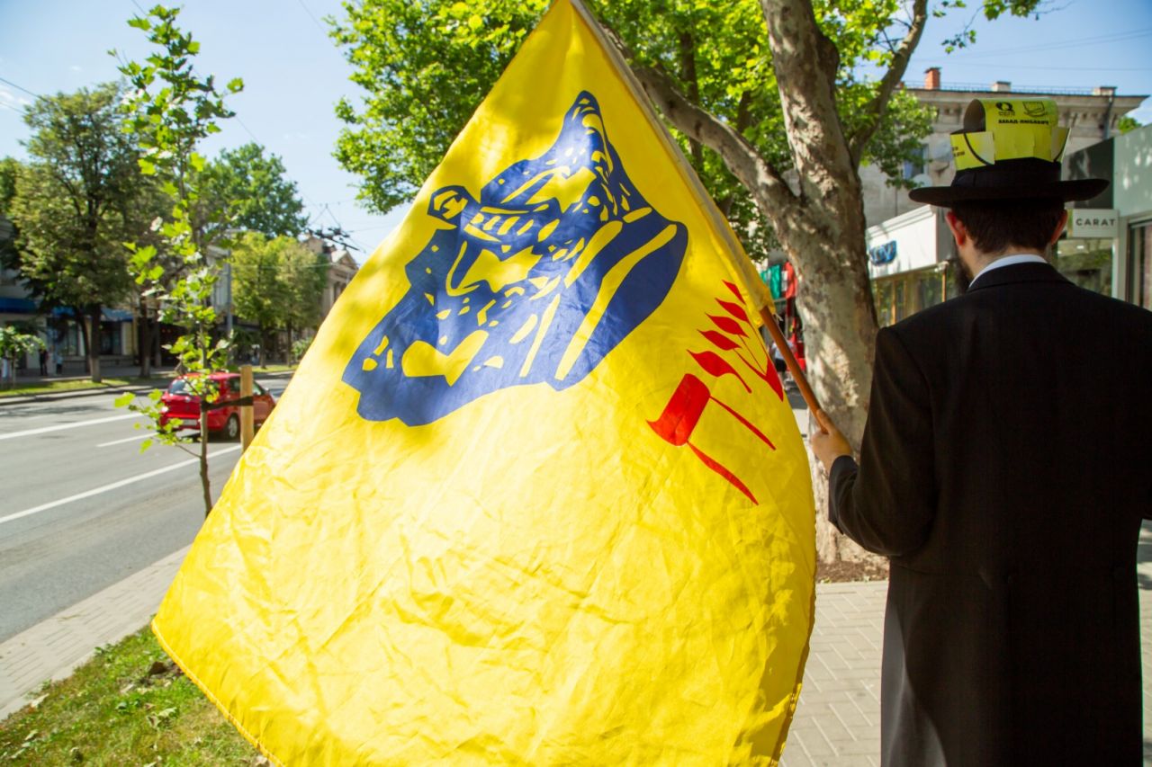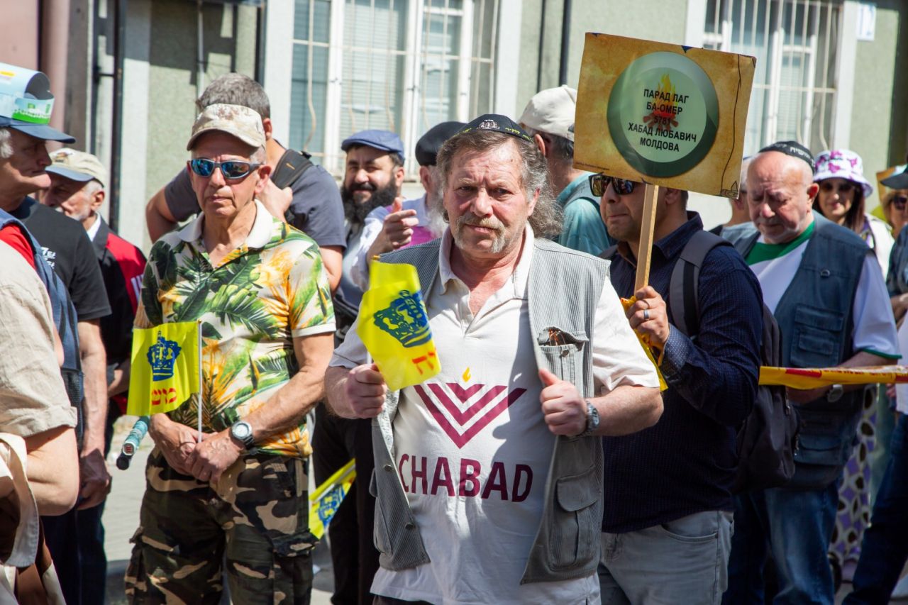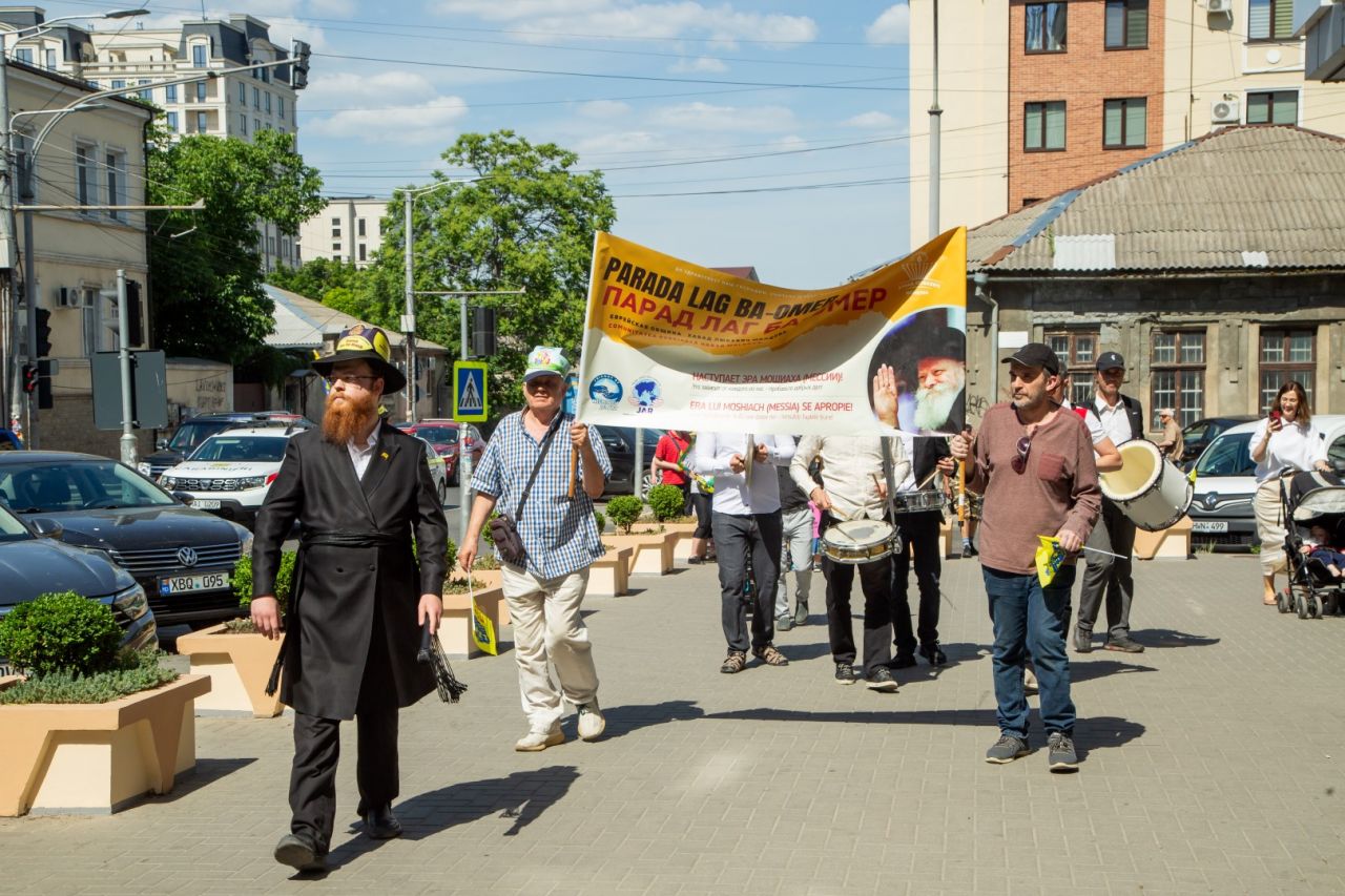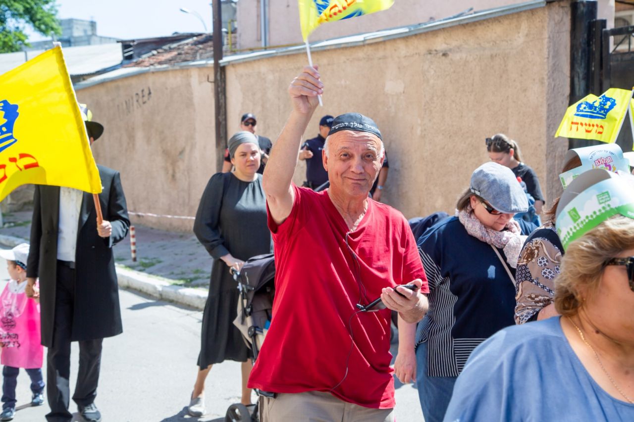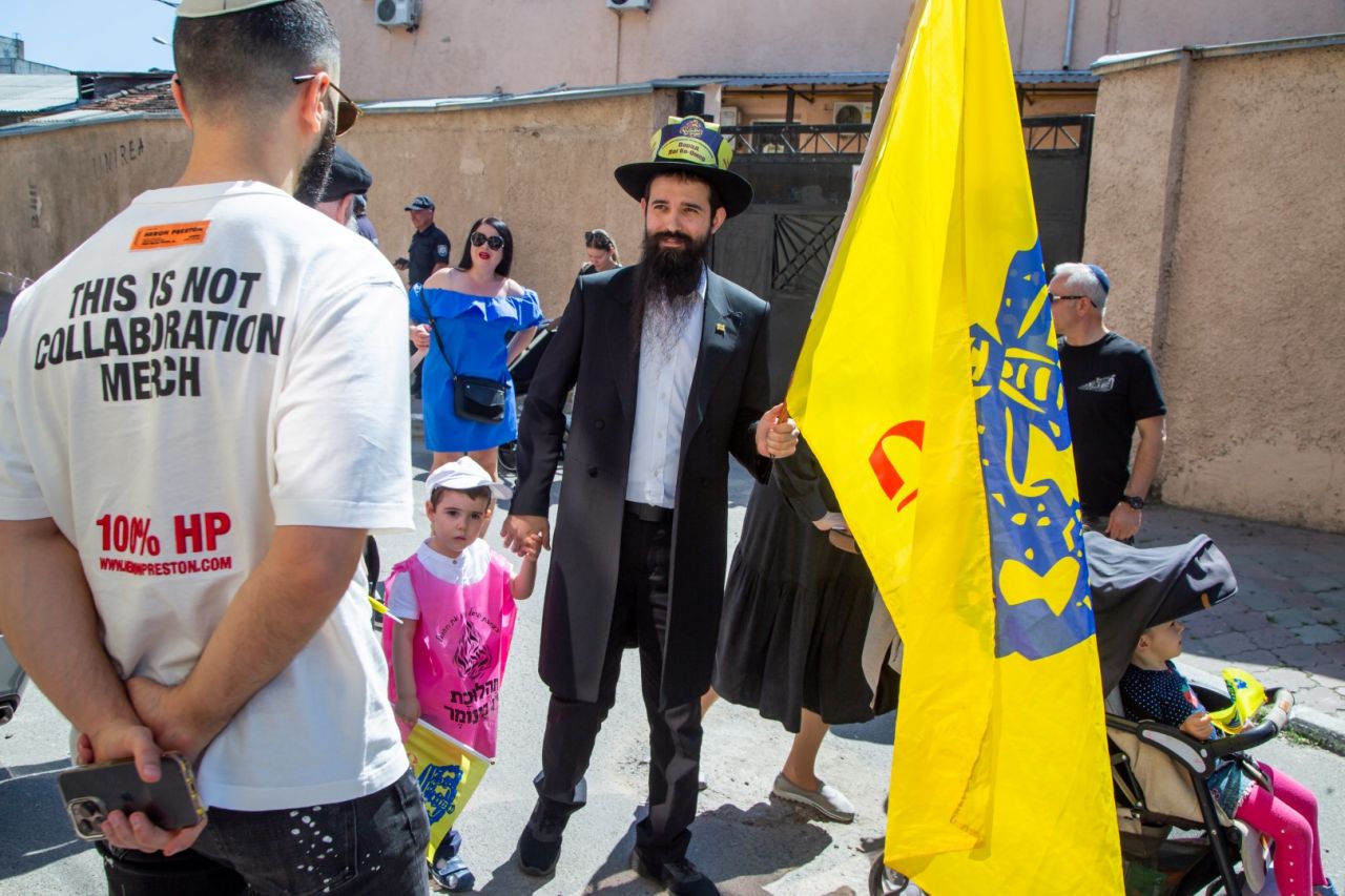 בראש התהלוכה שלט ברומנית, בנוסף לשלטים ברוסית ועברית, ודגלי משיח.