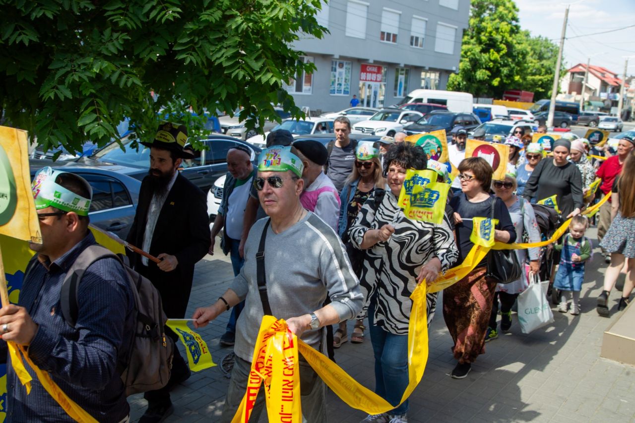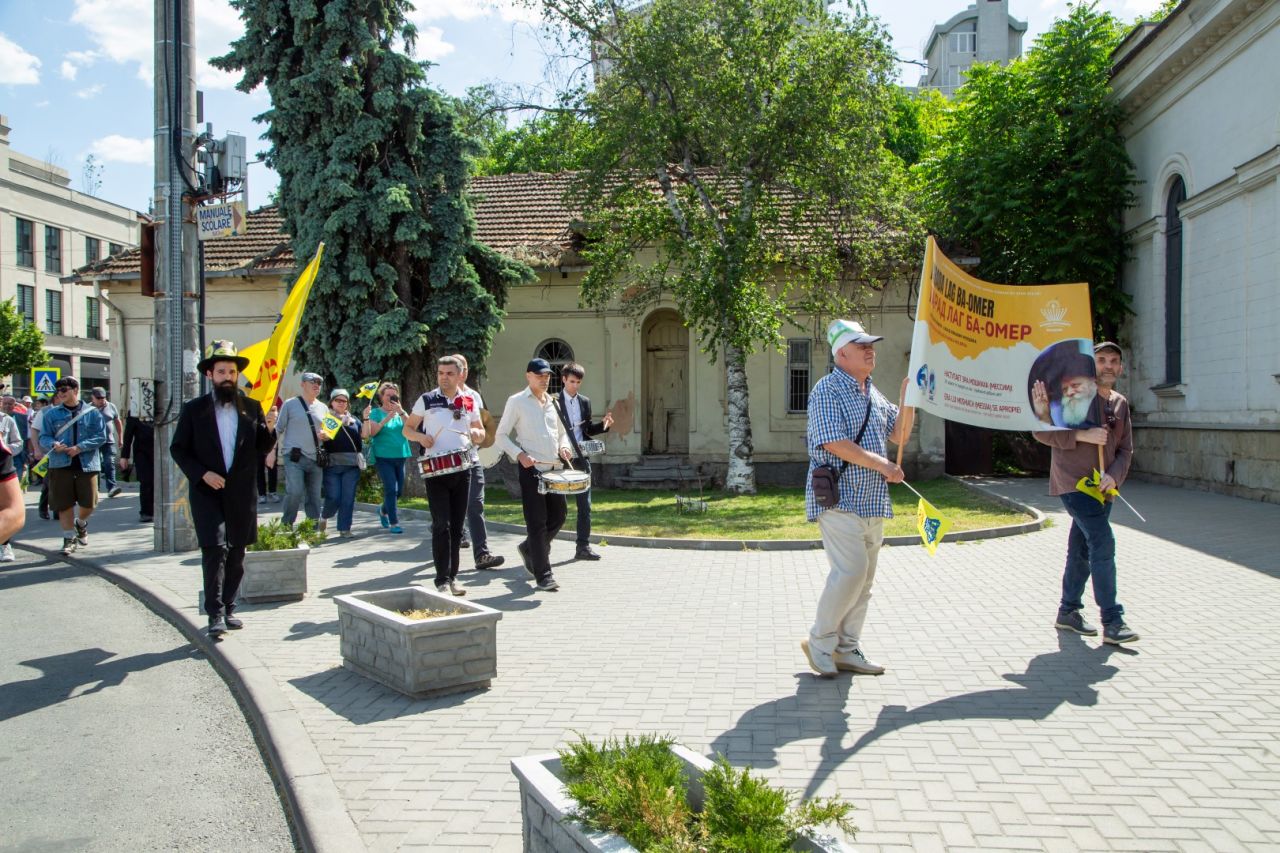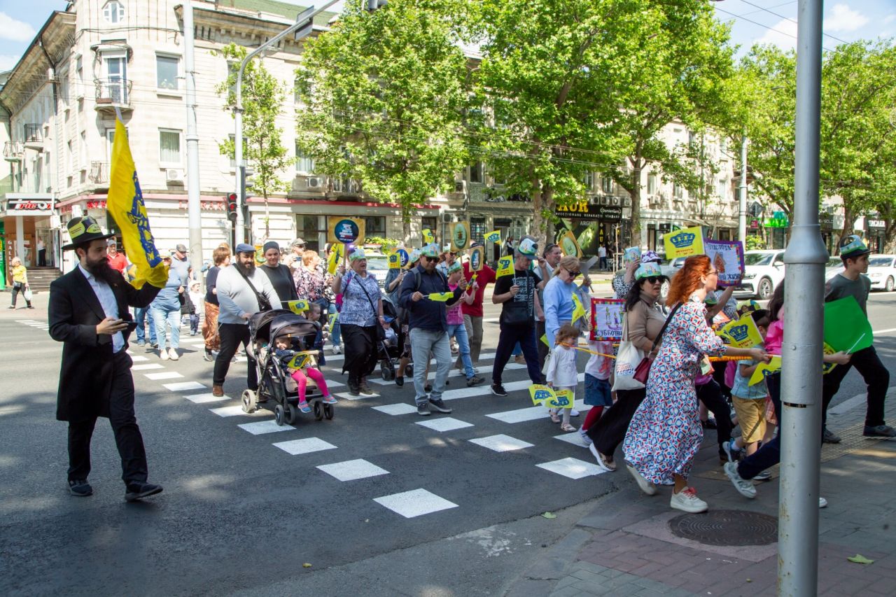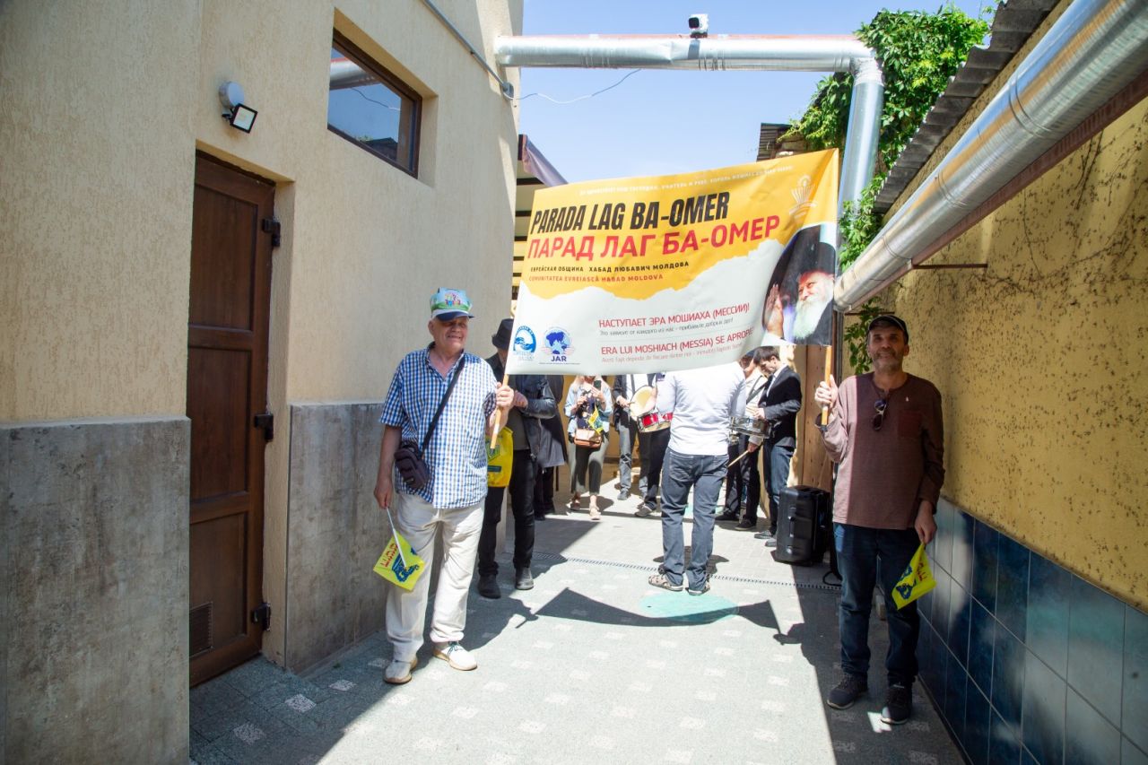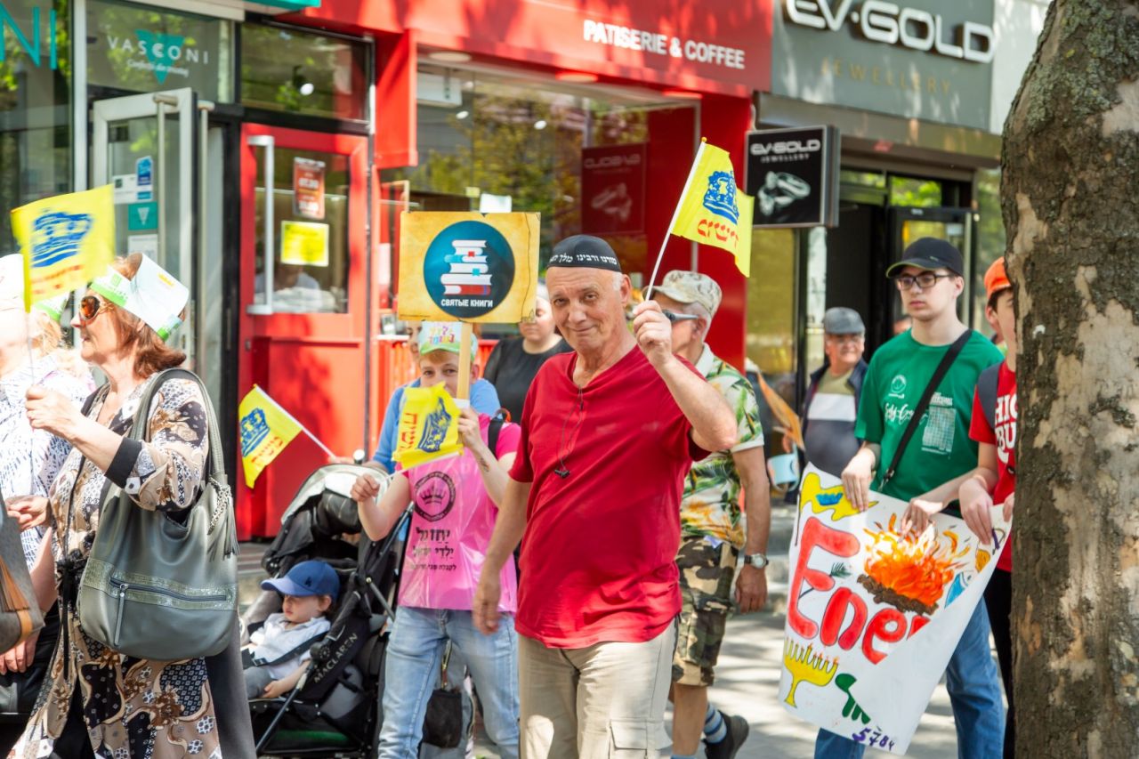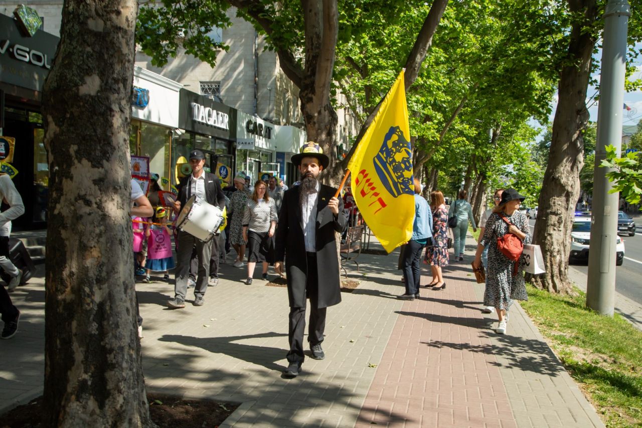 בראש התהלוכה שלט ברומנית, בנוסף לשלטים ברוסית ועברית, ודגלי משיח.