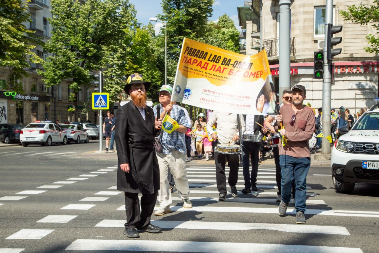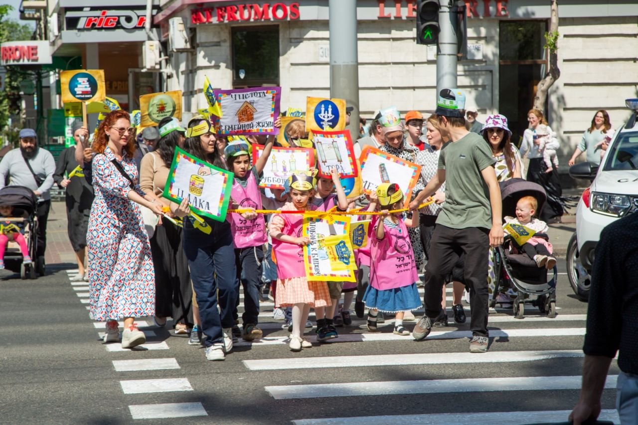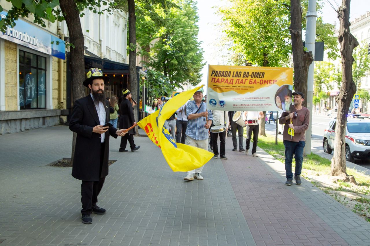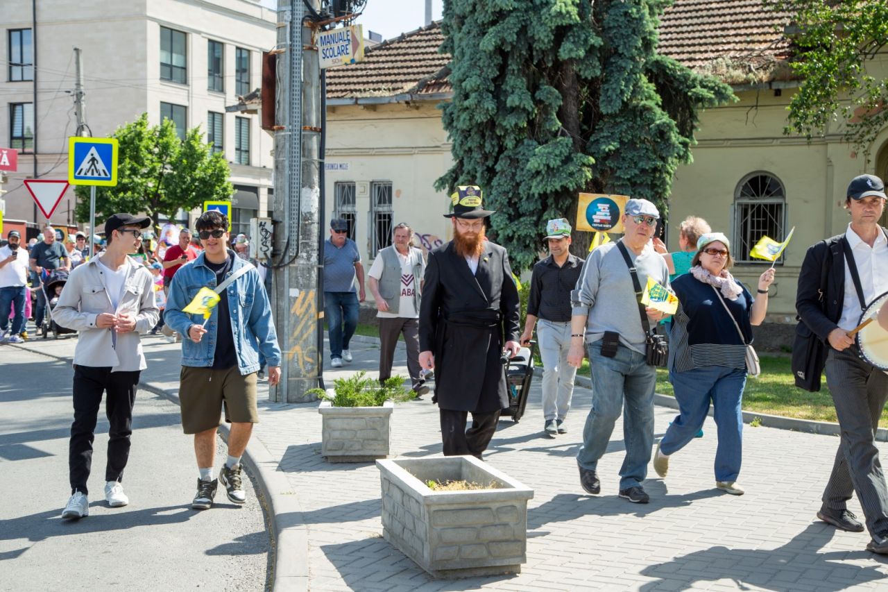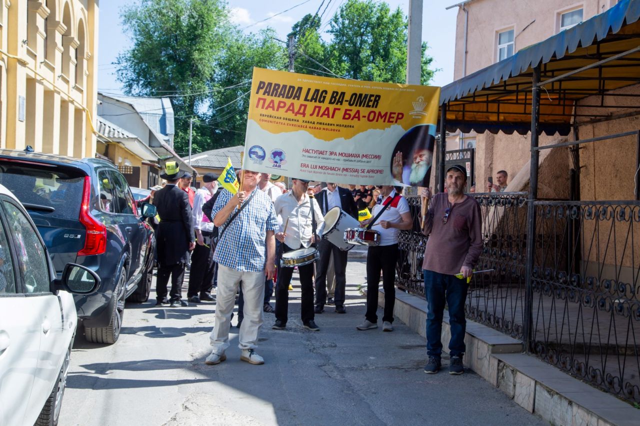 בראש התהלוכה שלט ברומנית, בנוסף לשלטים ברוסית ועברית, ודגלי משיח.