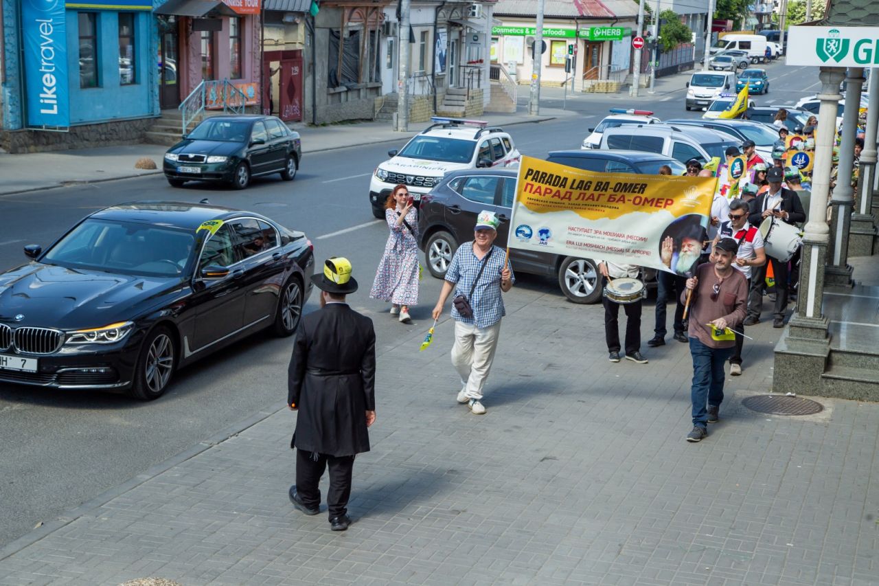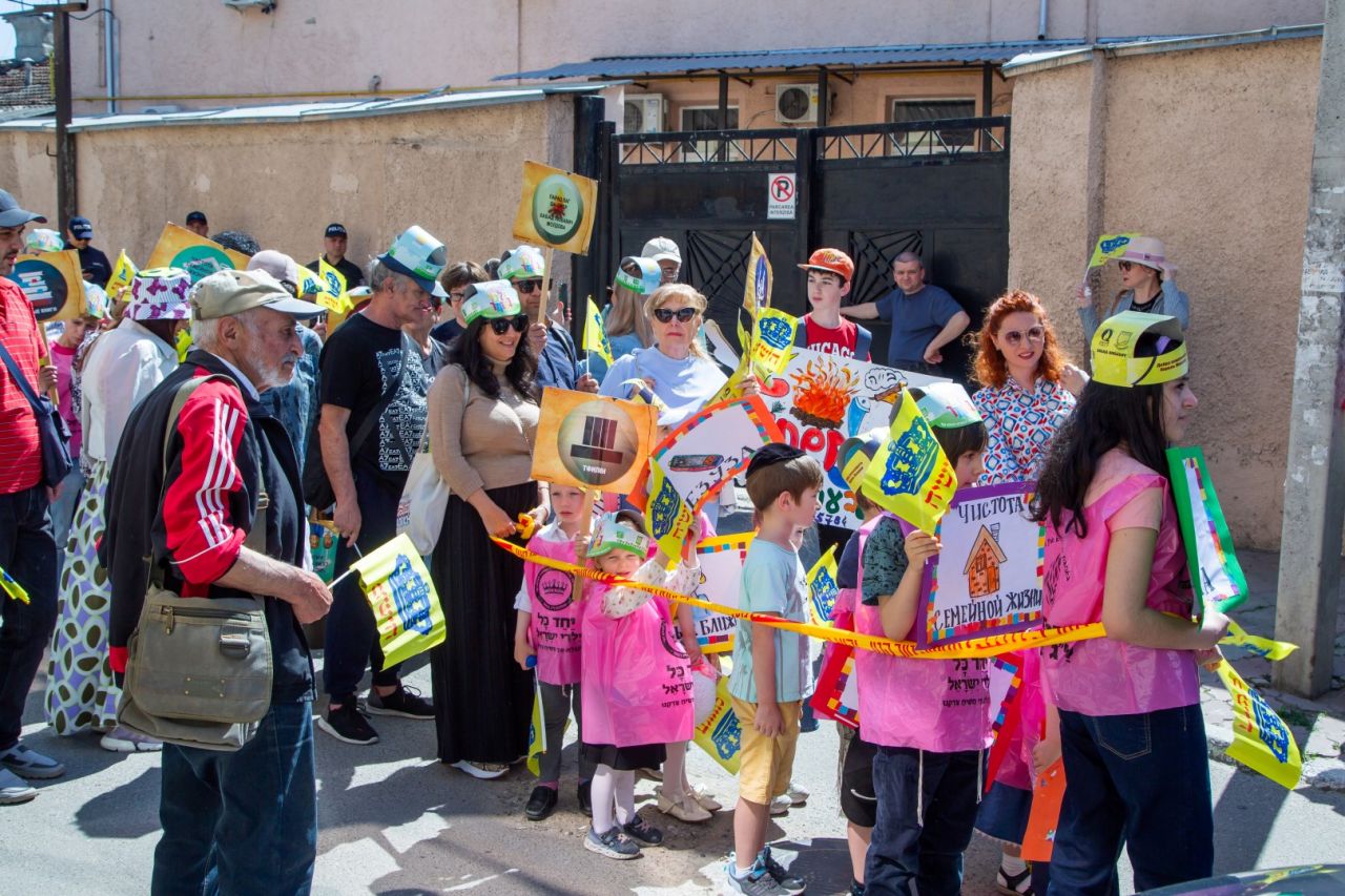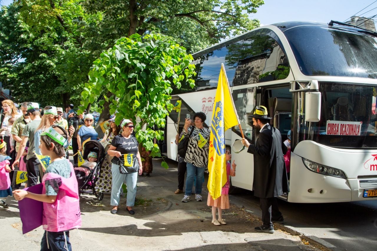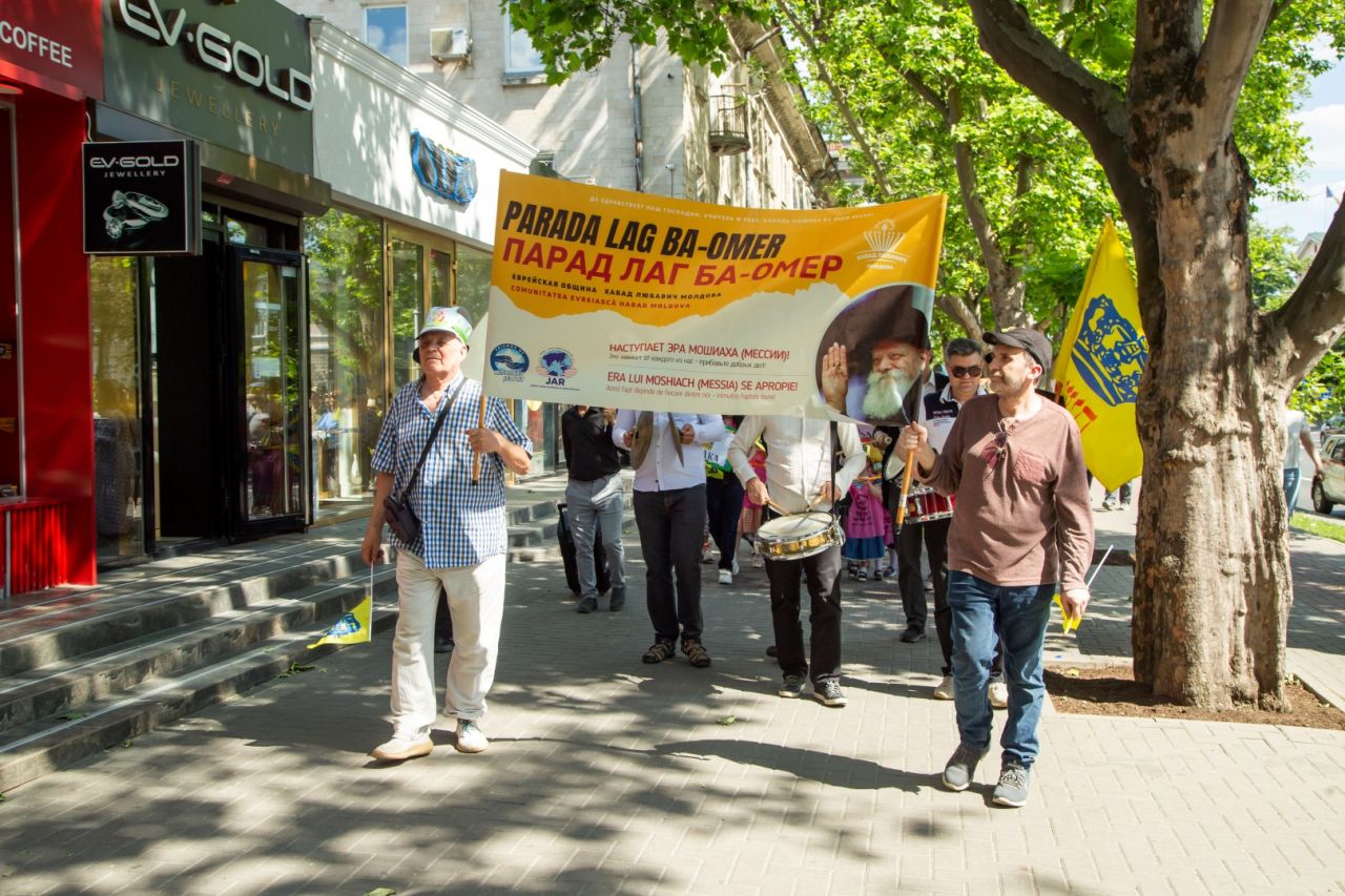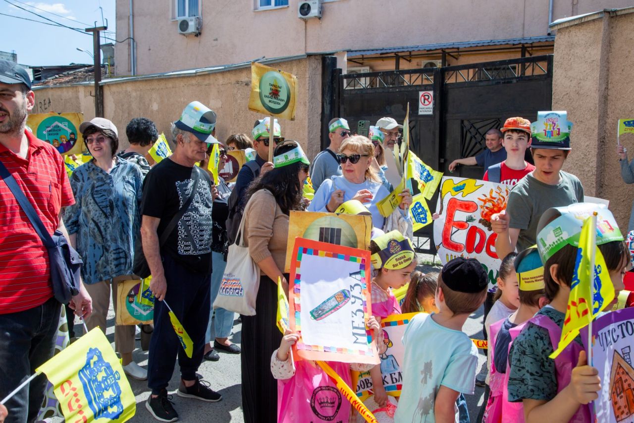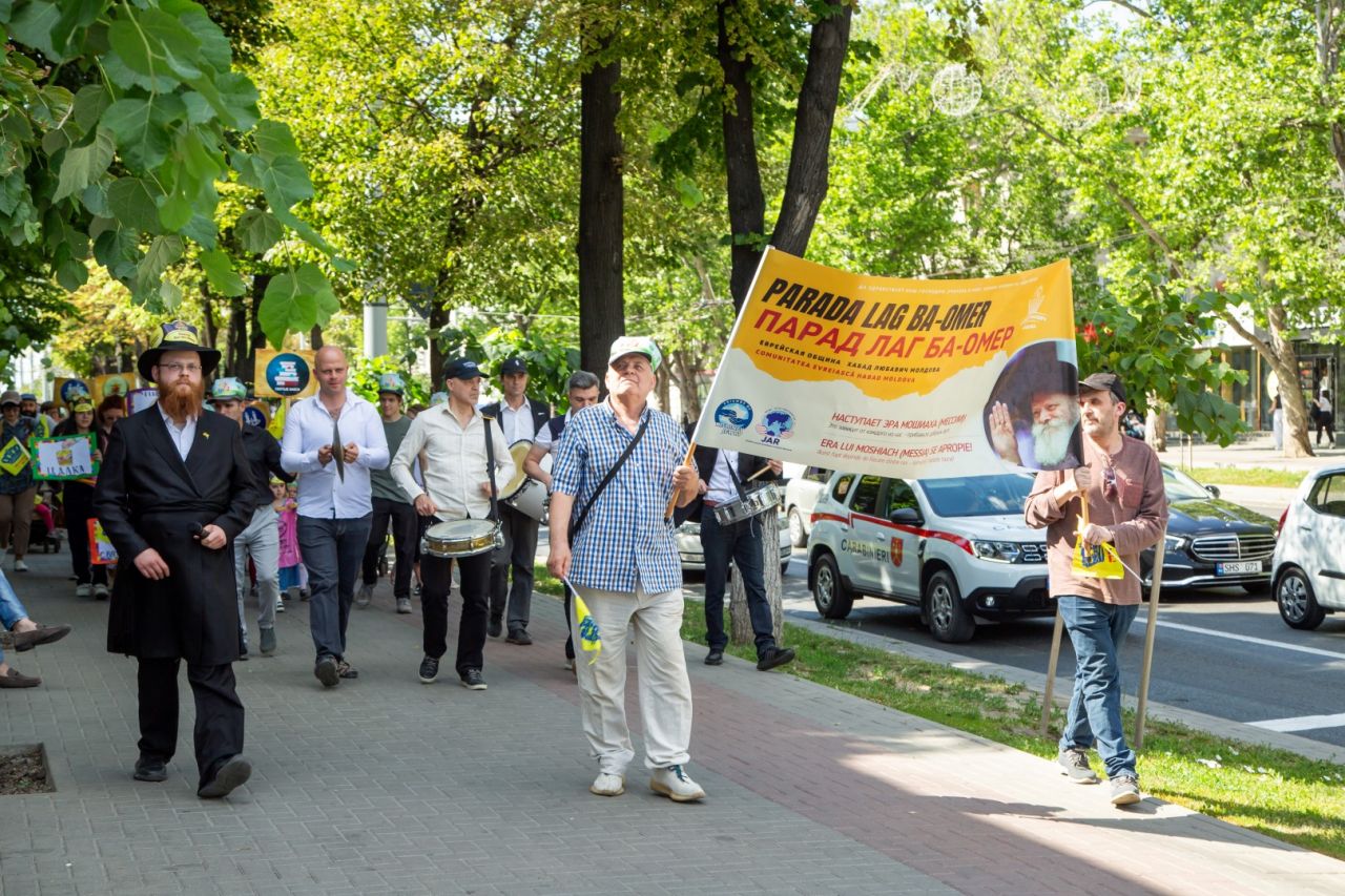 בראש התהלוכה שלט ברומנית, בנוסף לשלטים ברוסית ועברית, ודגלי משיח.