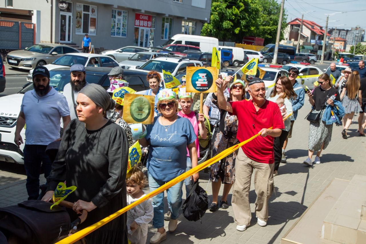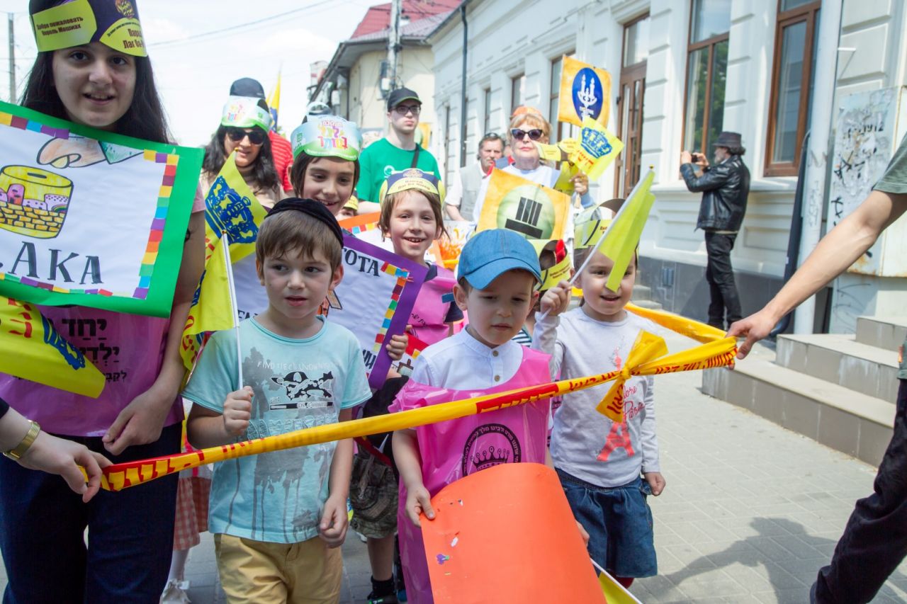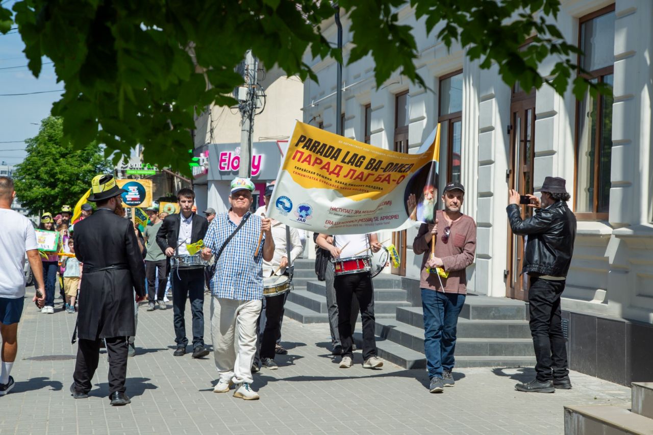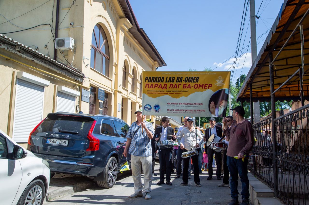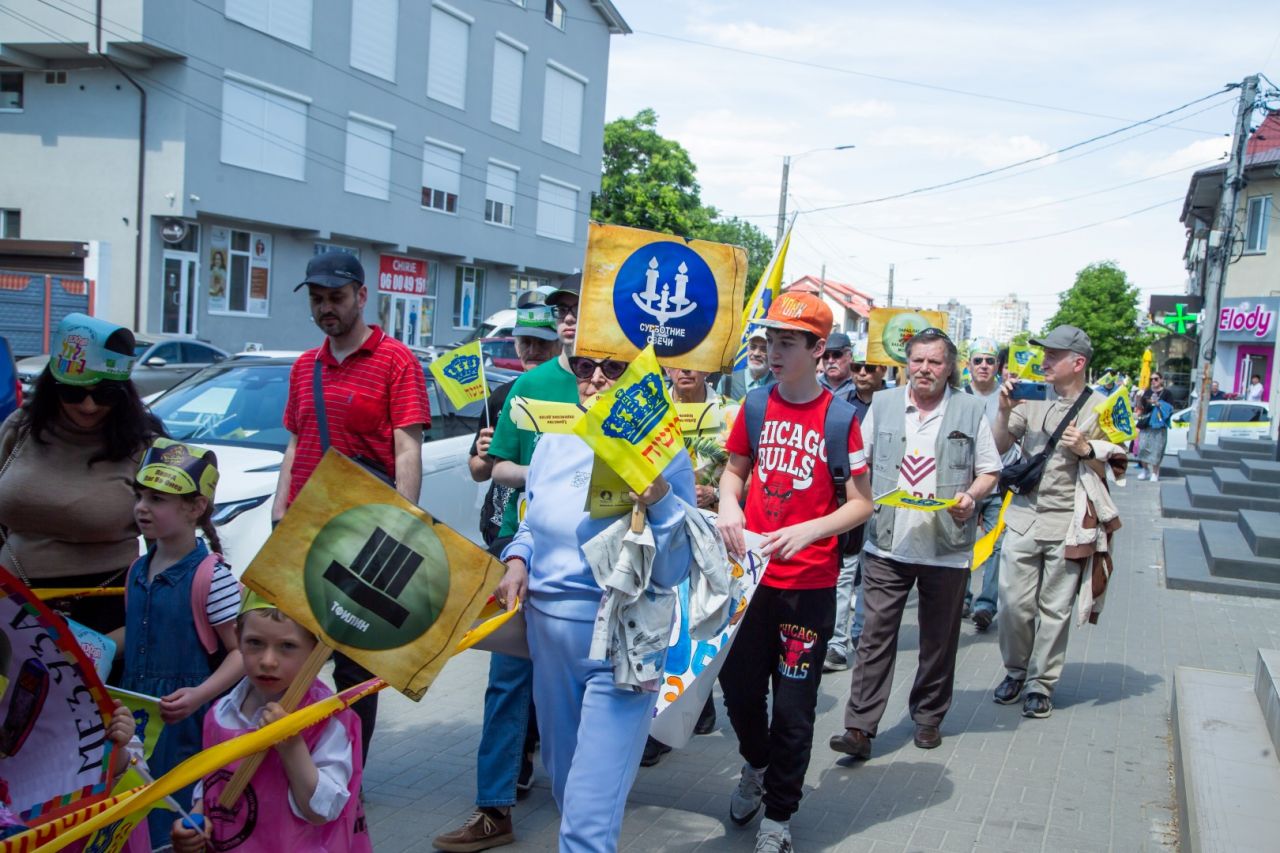 בראש התהלוכה שלט ברומנית, בנוסף לשלטים ברוסית ועברית, ודגלי משיח.