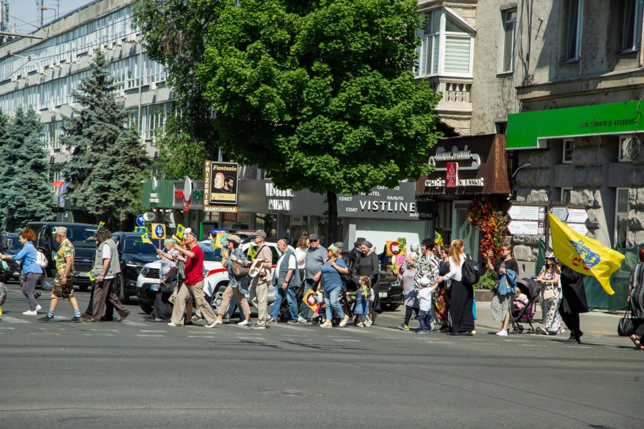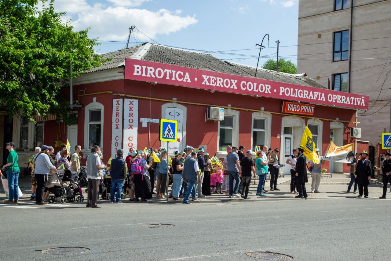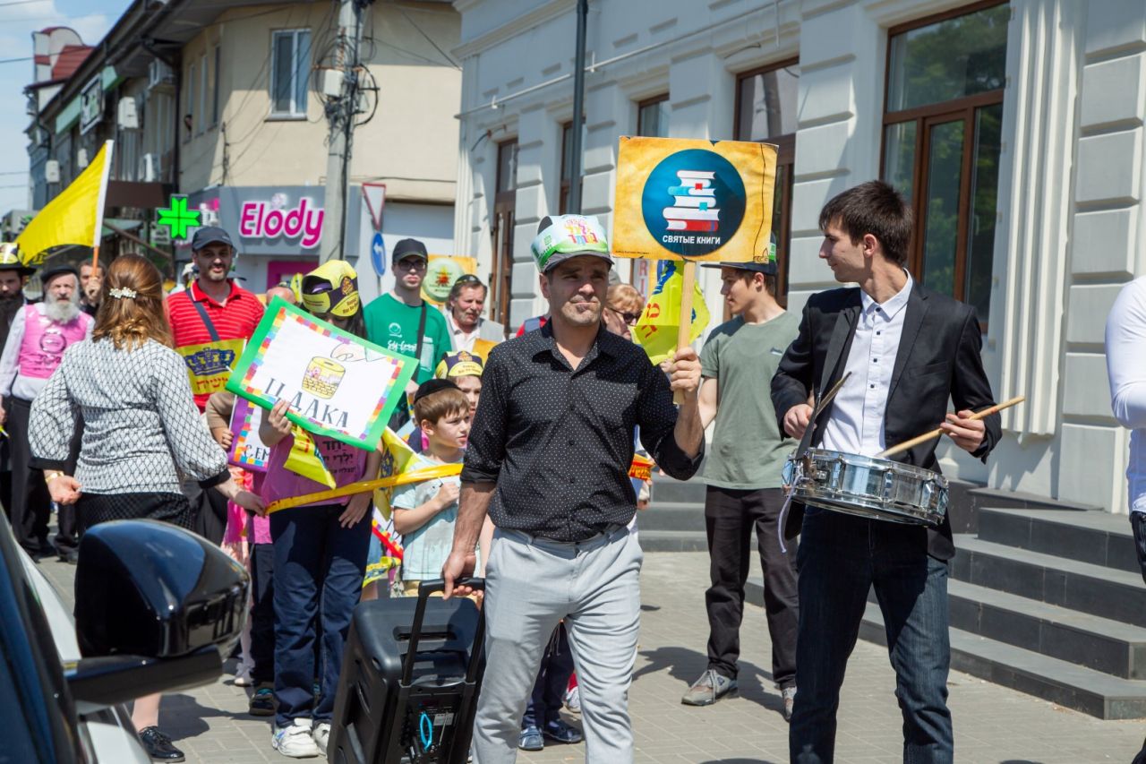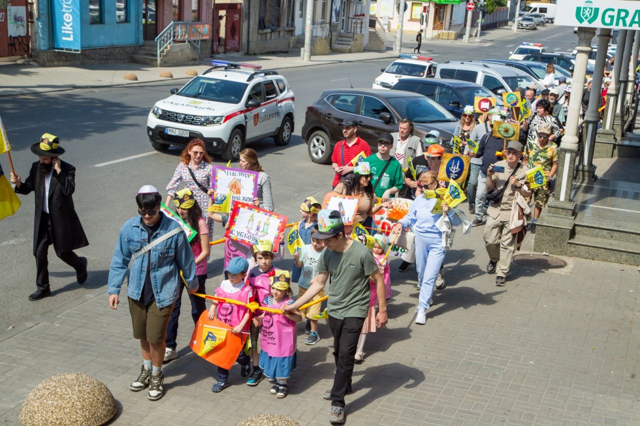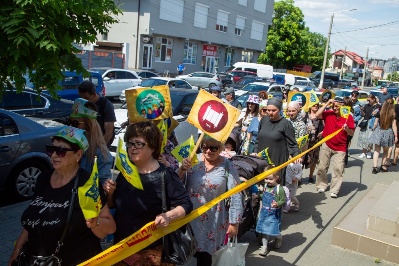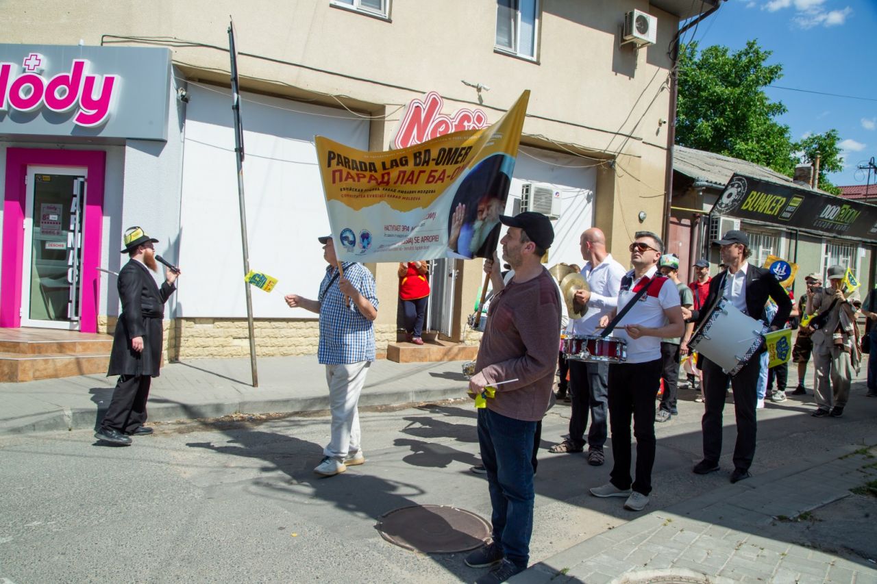 בראש התהלוכה שלט ברומנית, בנוסף לשלטים ברוסית ועברית, ודגלי משיח.