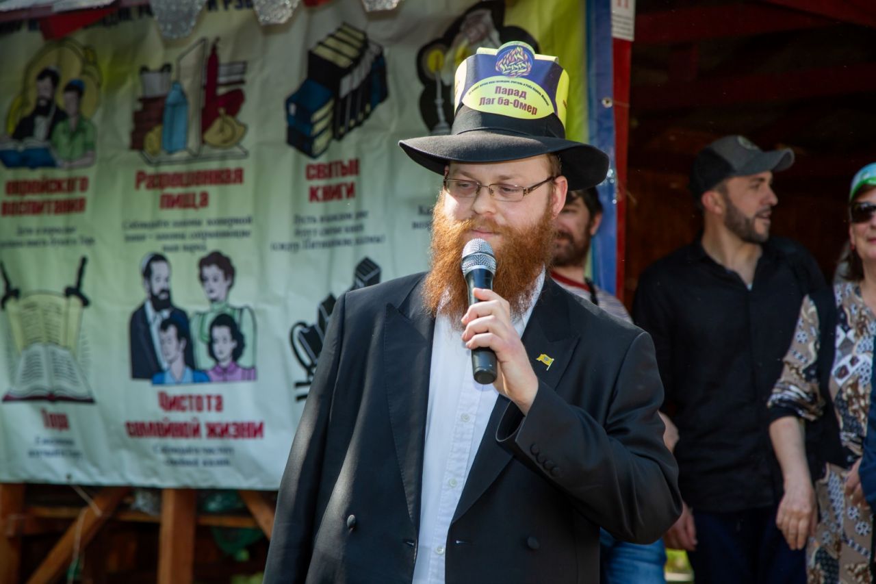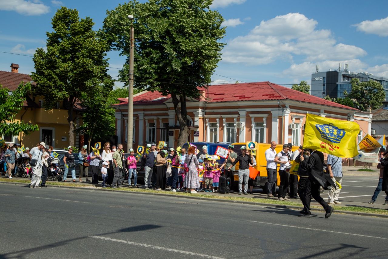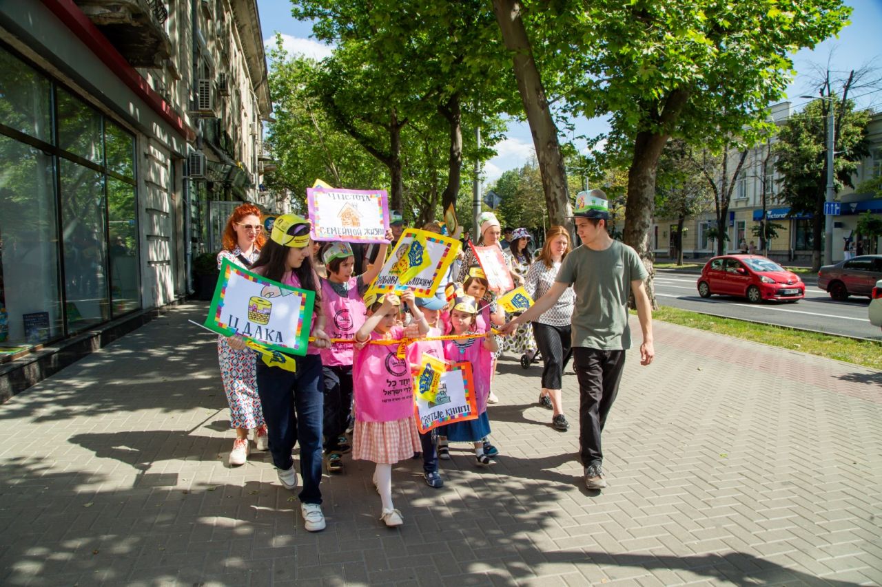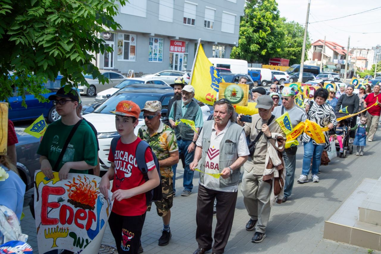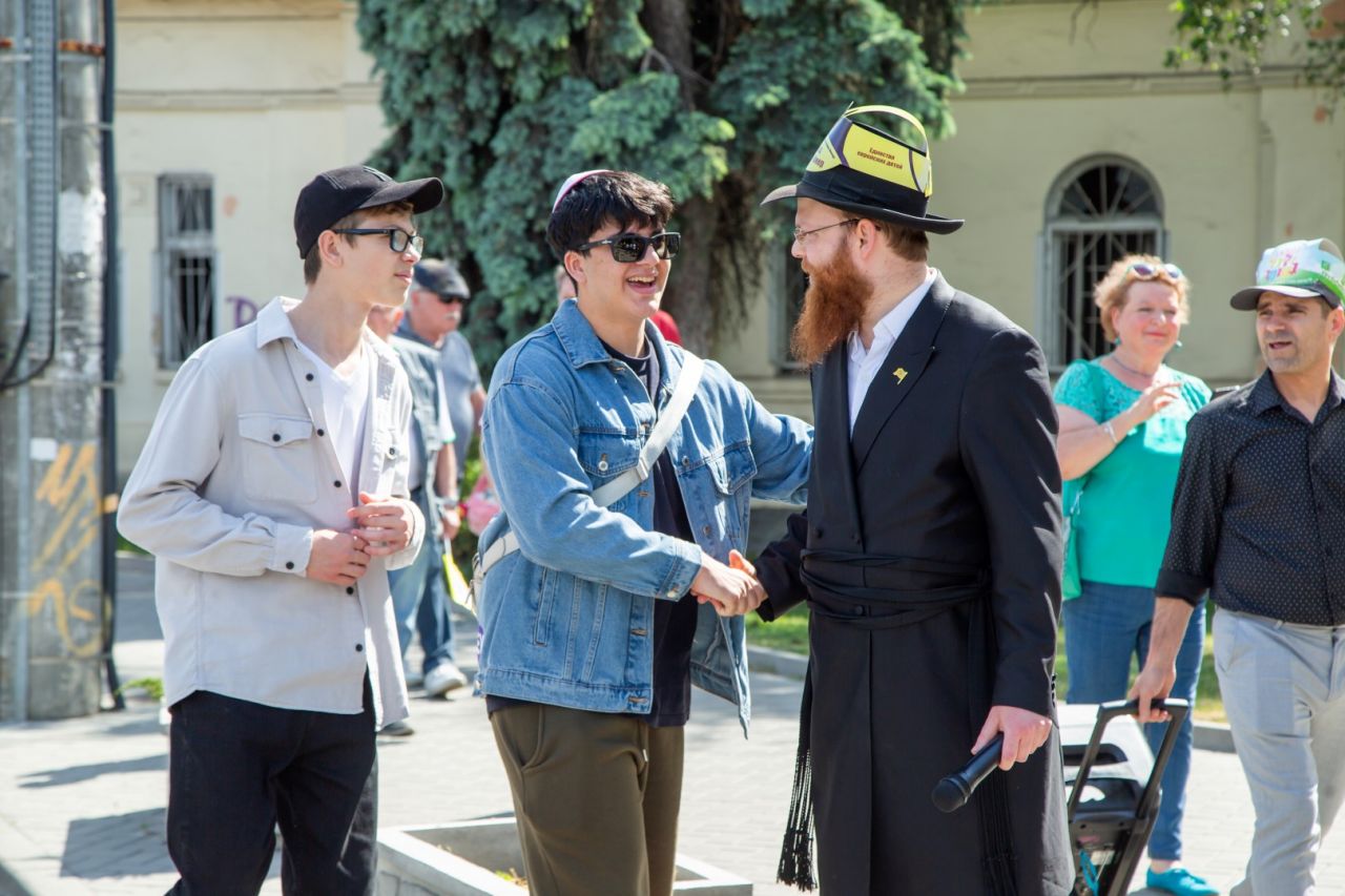 בראש התהלוכה שלט ברומנית, בנוסף לשלטים ברוסית ועברית, ודגלי משיח.