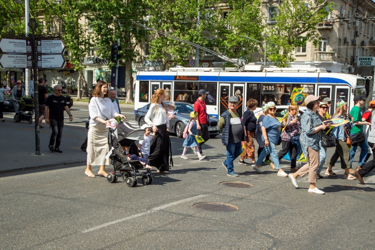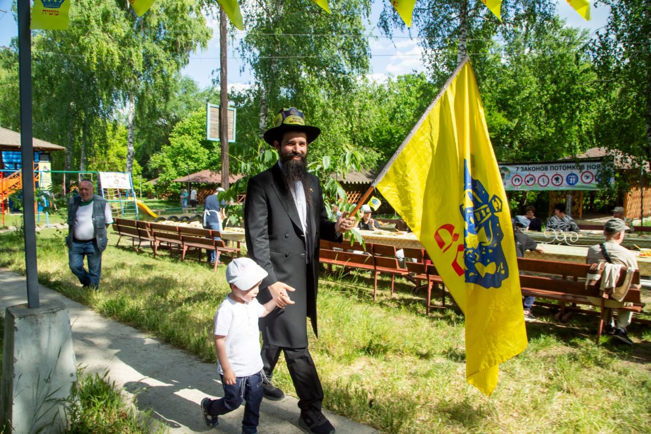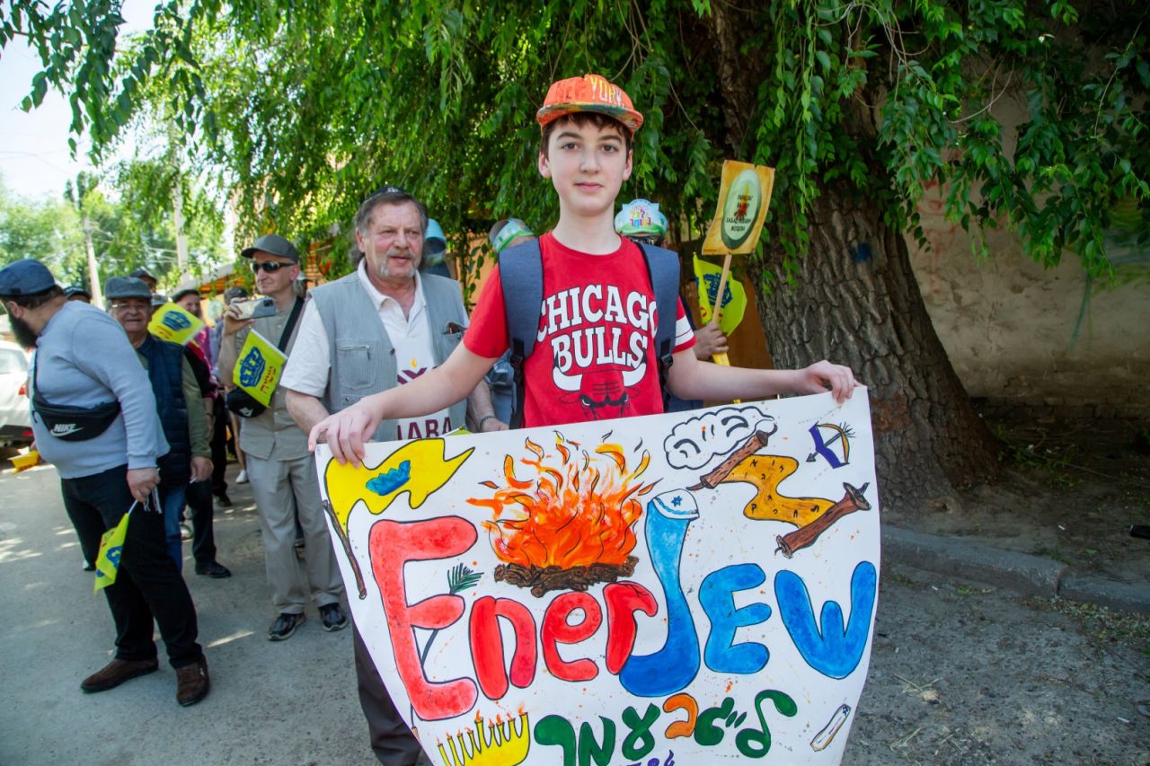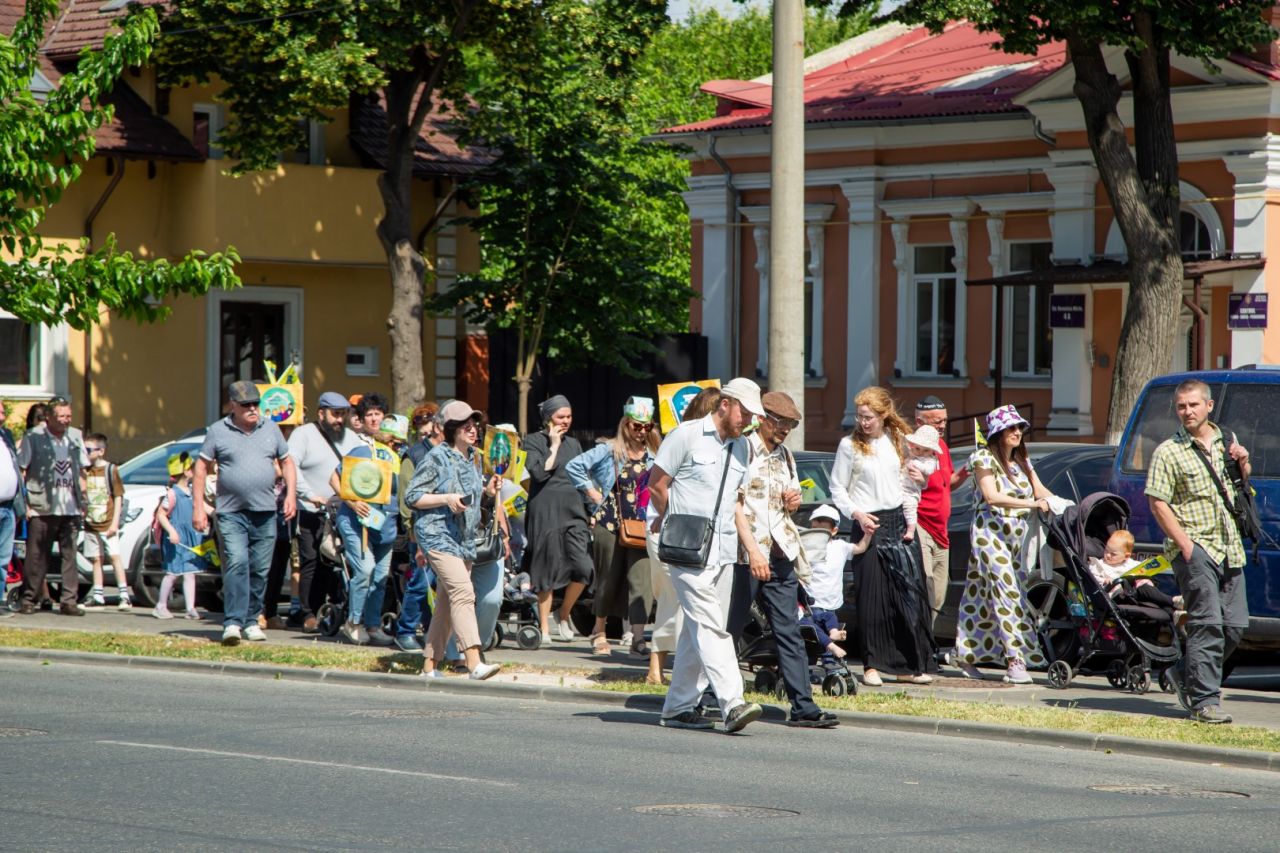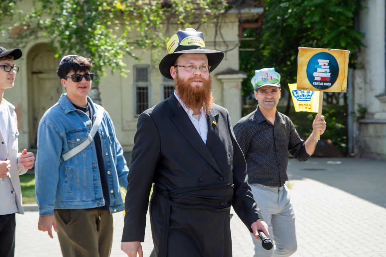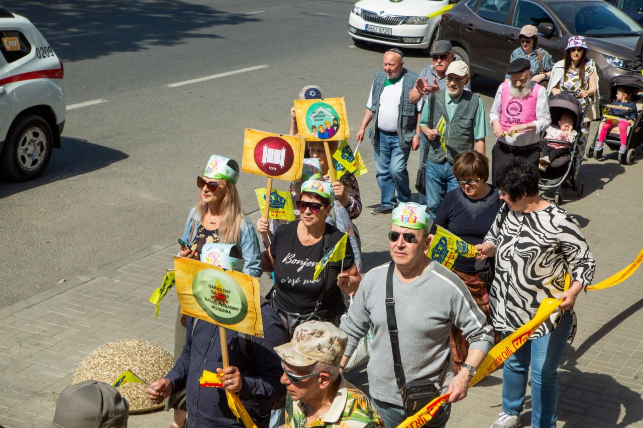בראש התהלוכה שלט ברומנית, בנוסף לשלטים ברוסית ועברית, ודגלי משיח.