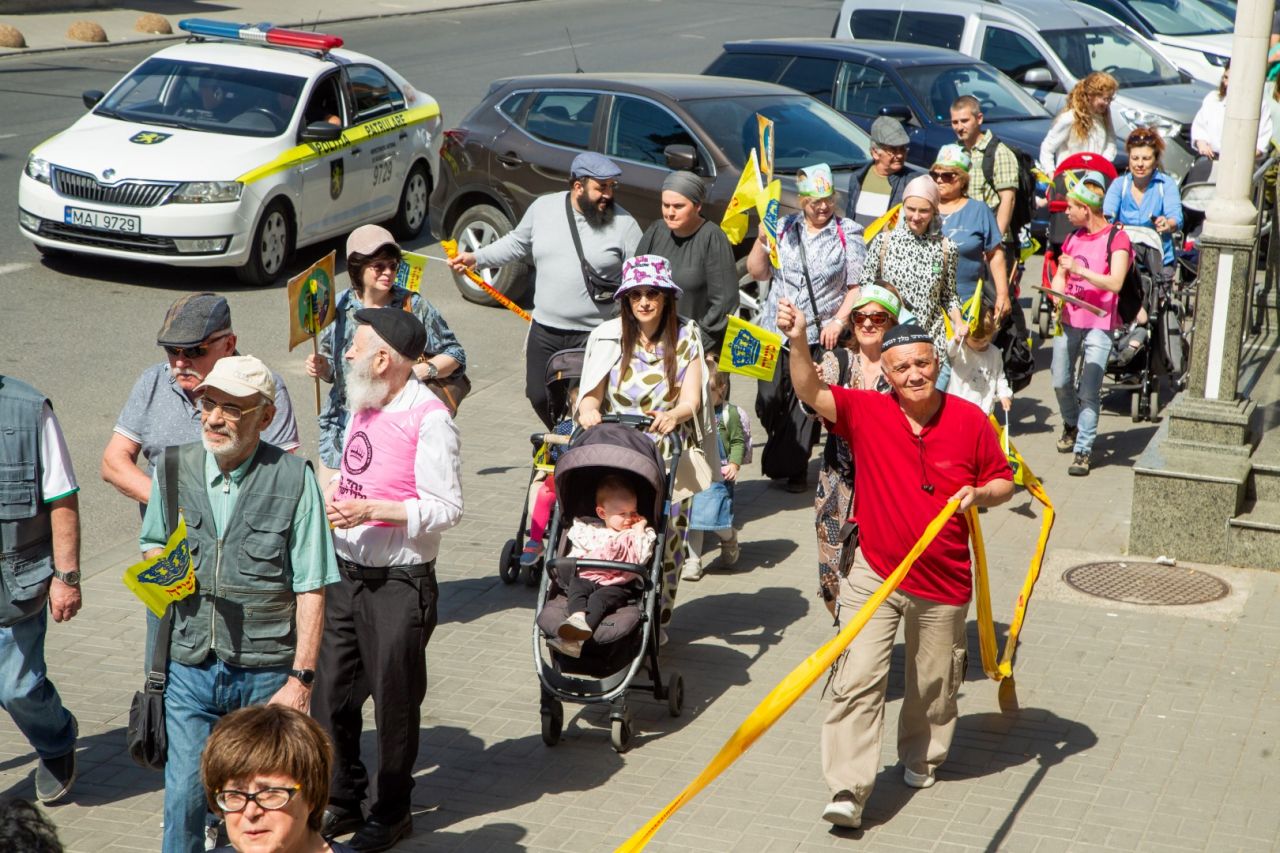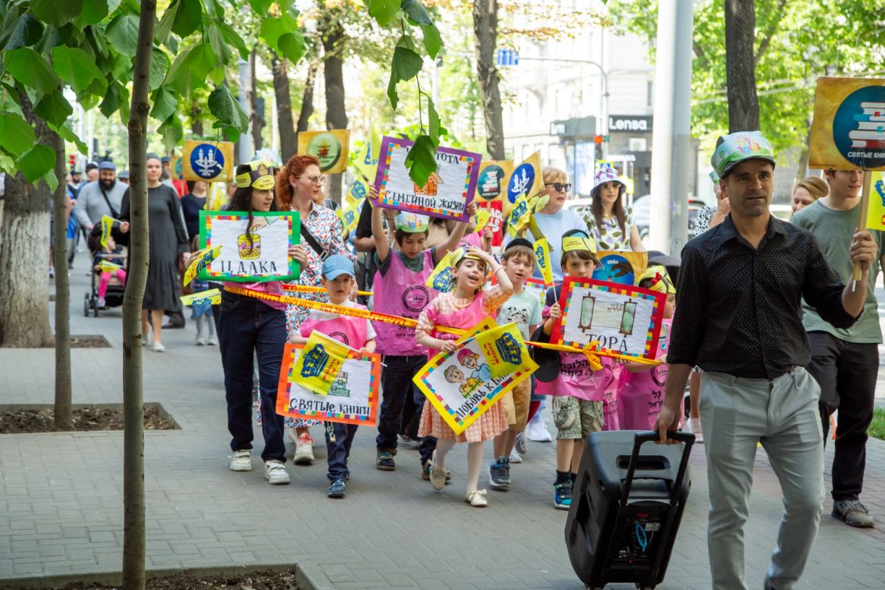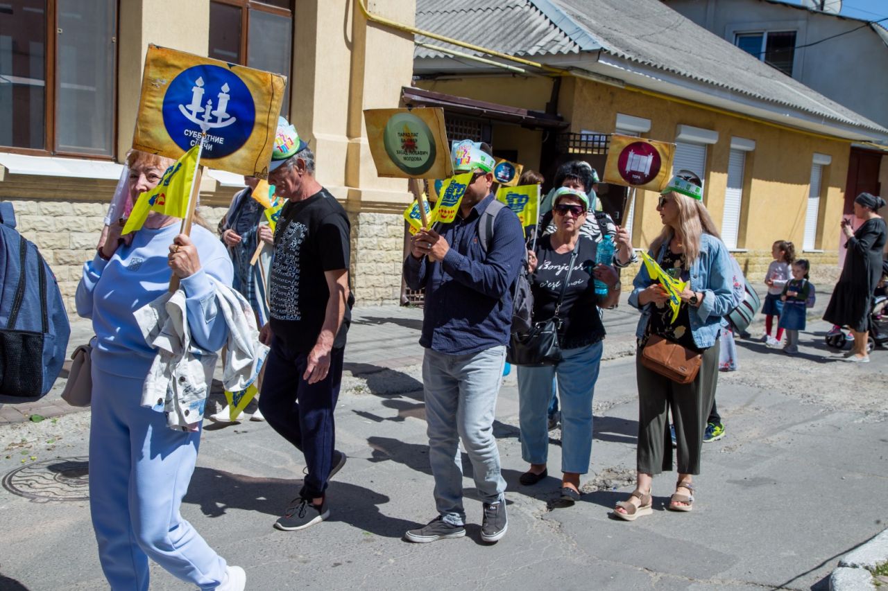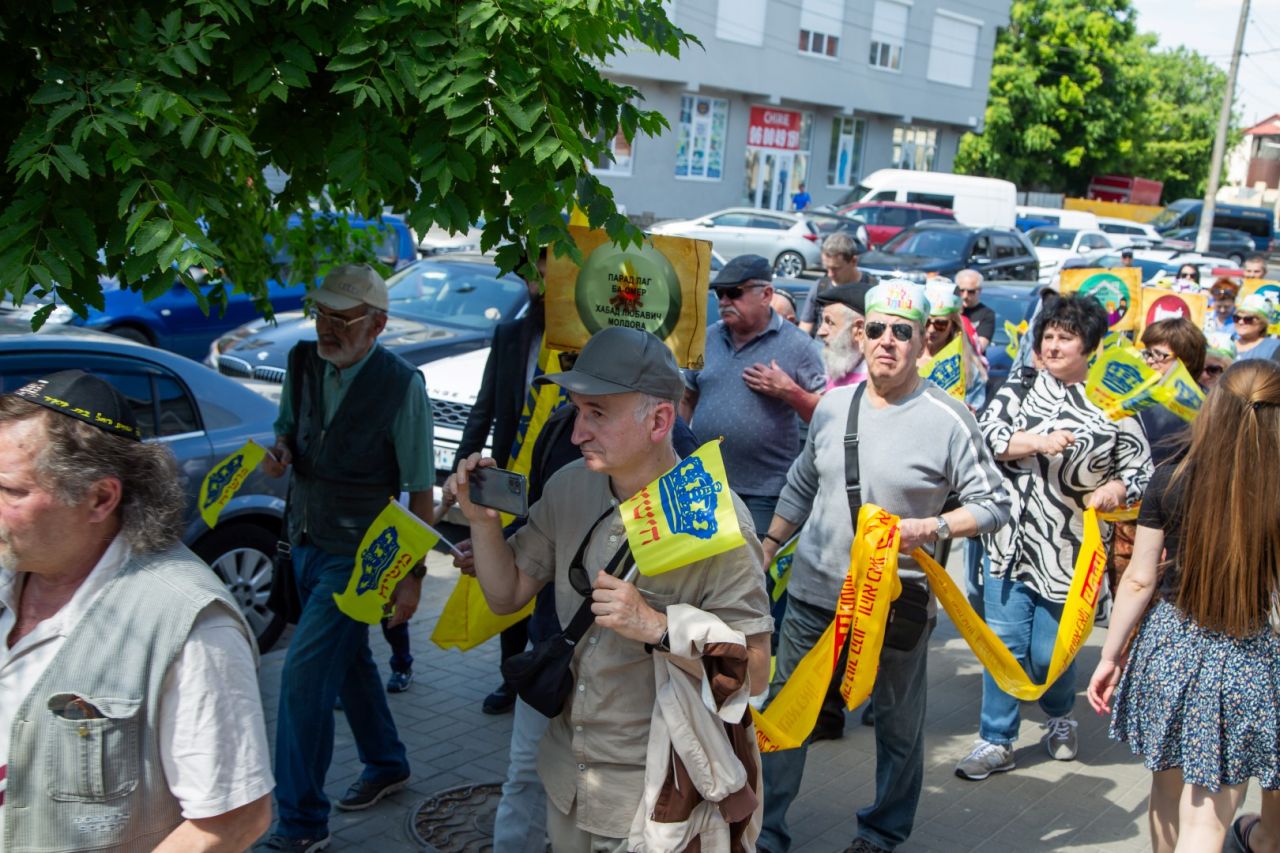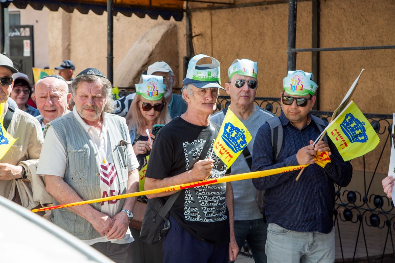 בראש התהלוכה שלט ברומנית, בנוסף לשלטים ברוסית ועברית, ודגלי משיח.