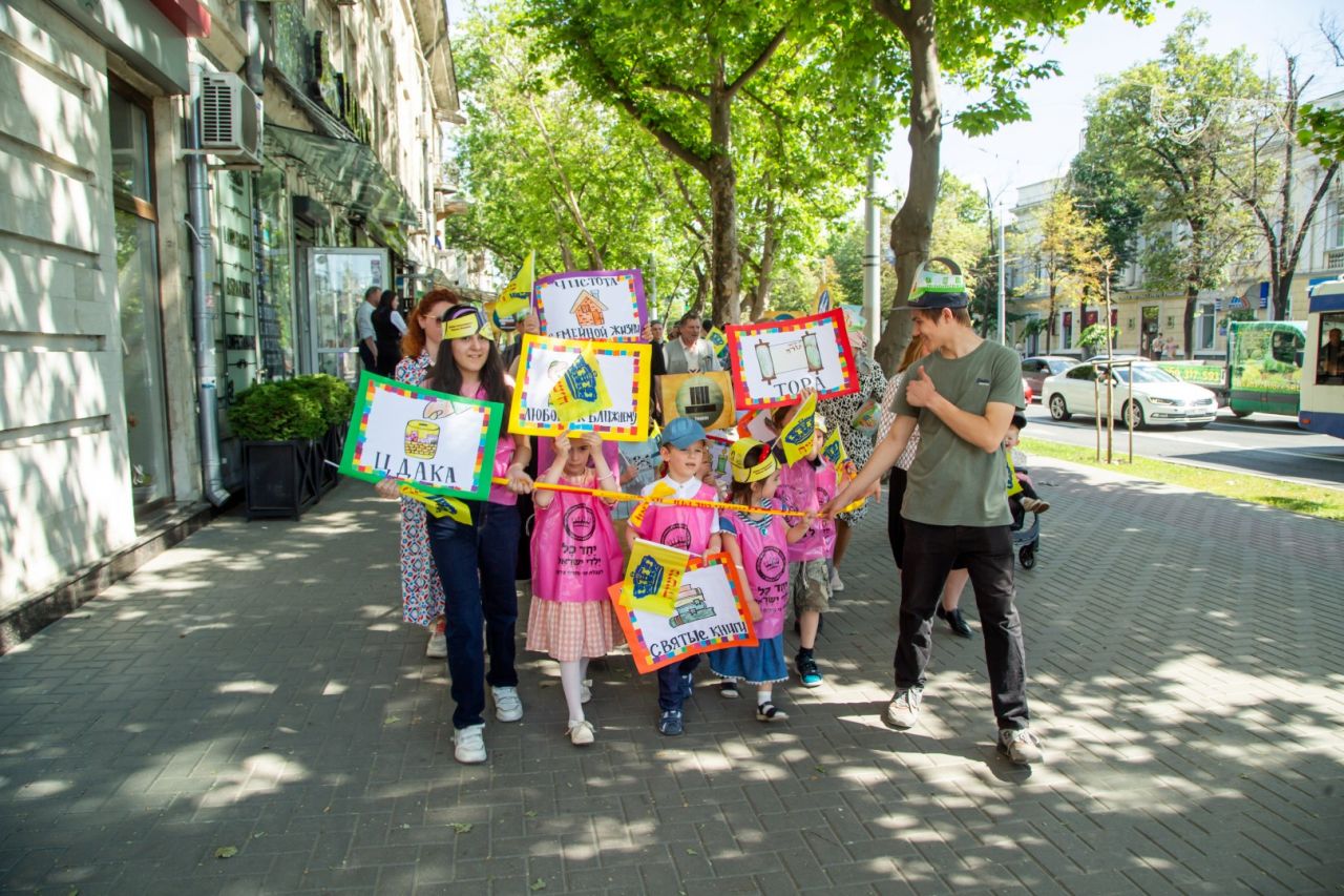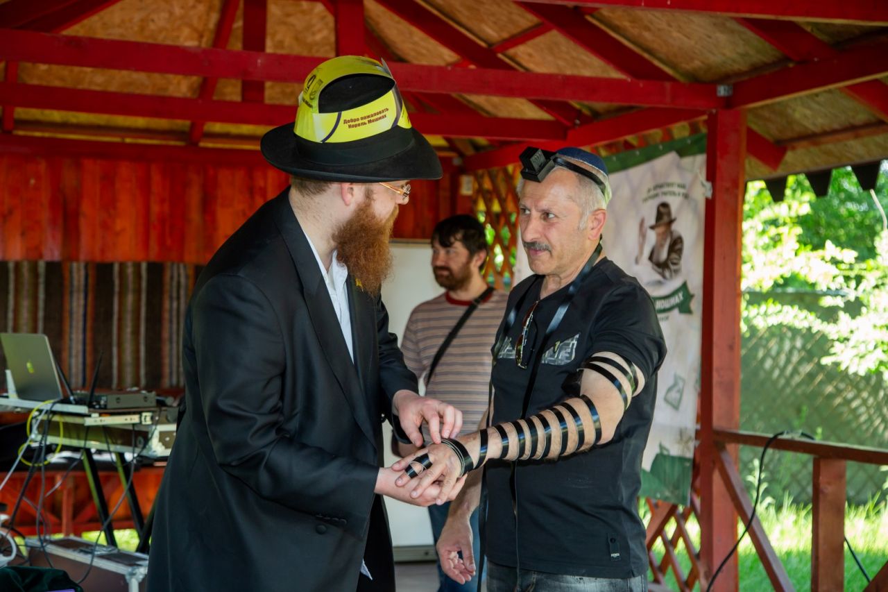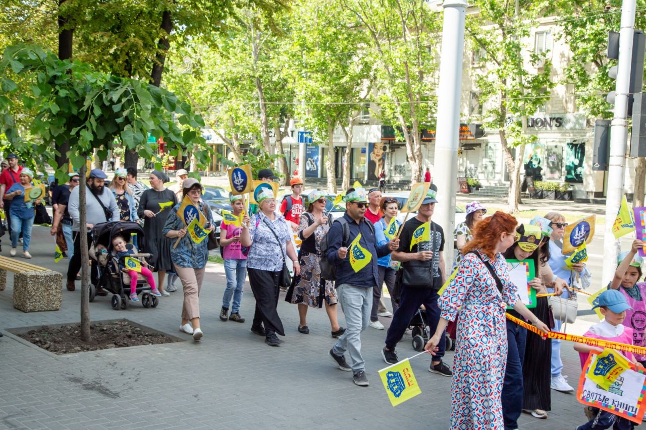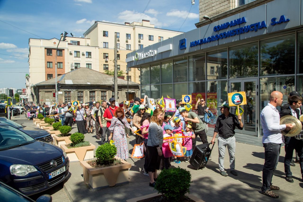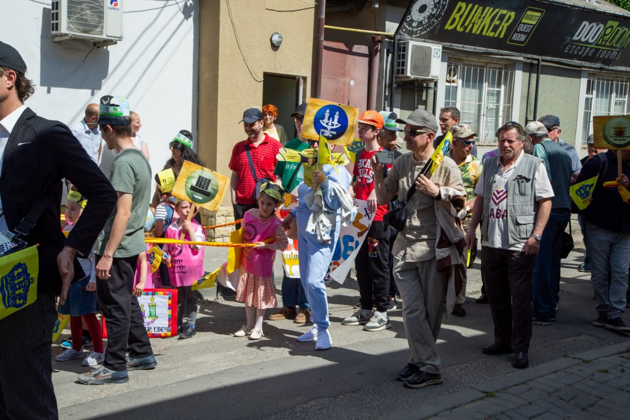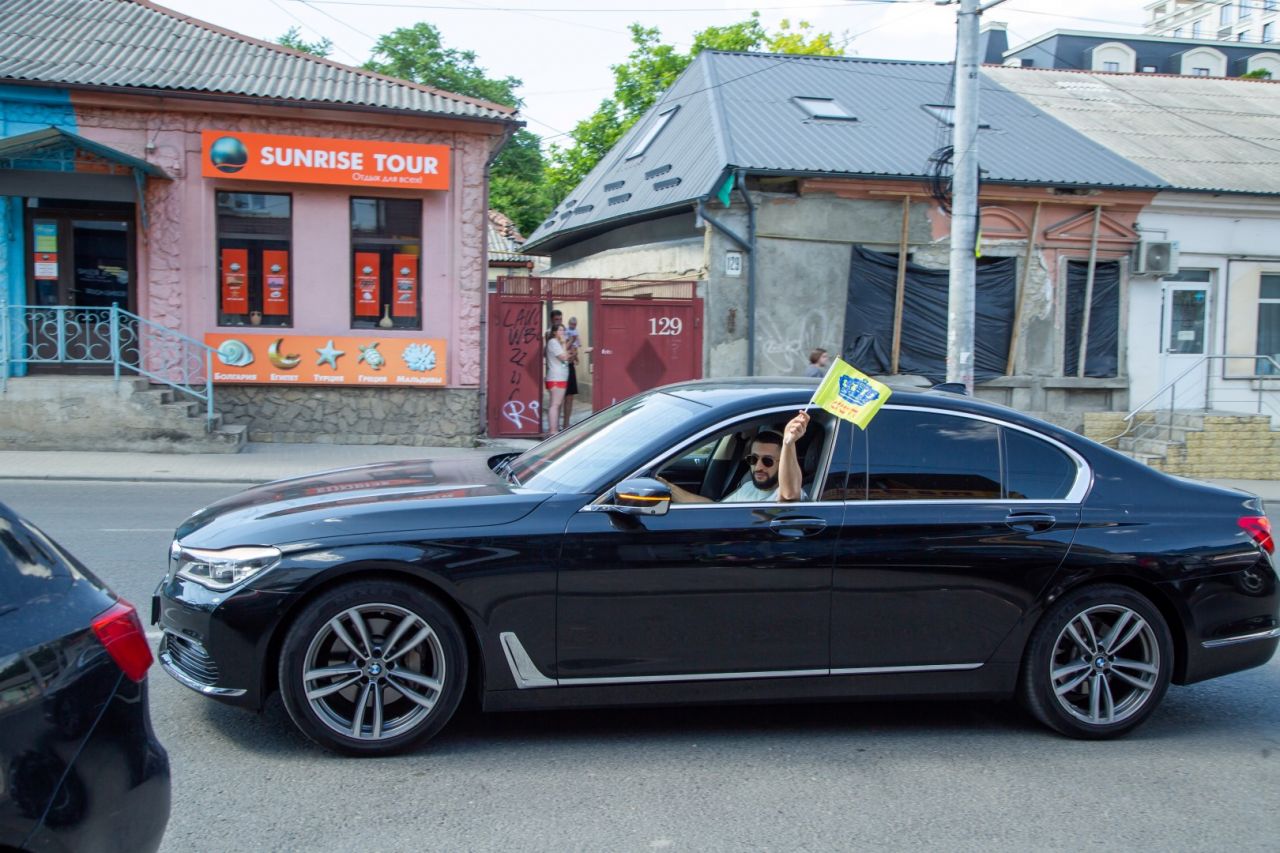 בראש התהלוכה שלט ברומנית, בנוסף לשלטים ברוסית ועברית, ודגלי משיח.