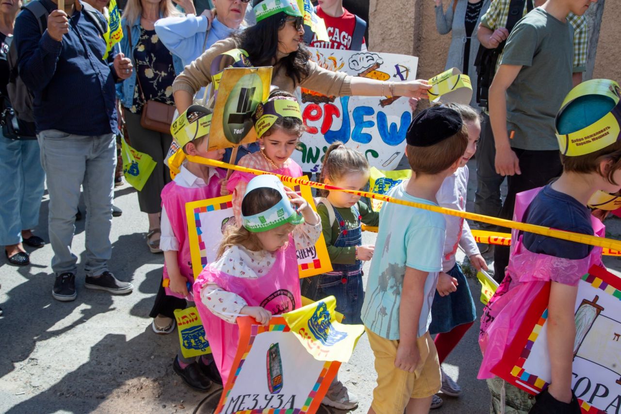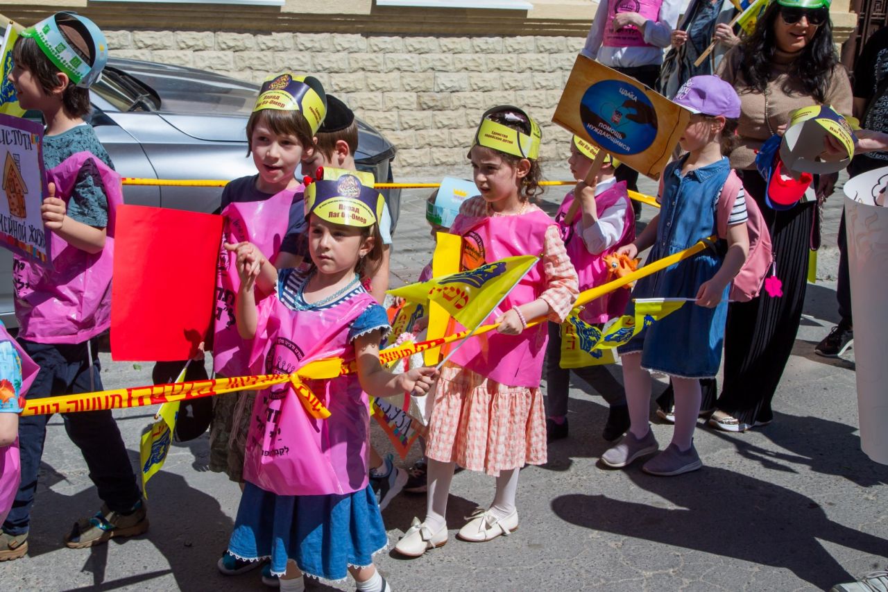 התהלוכה יצאה מבית חב"ד כאשר הצועדים הראשונים הם הילדים וילדות הכי קטנים שמתחנכים במוסדות הבית חב"ד.