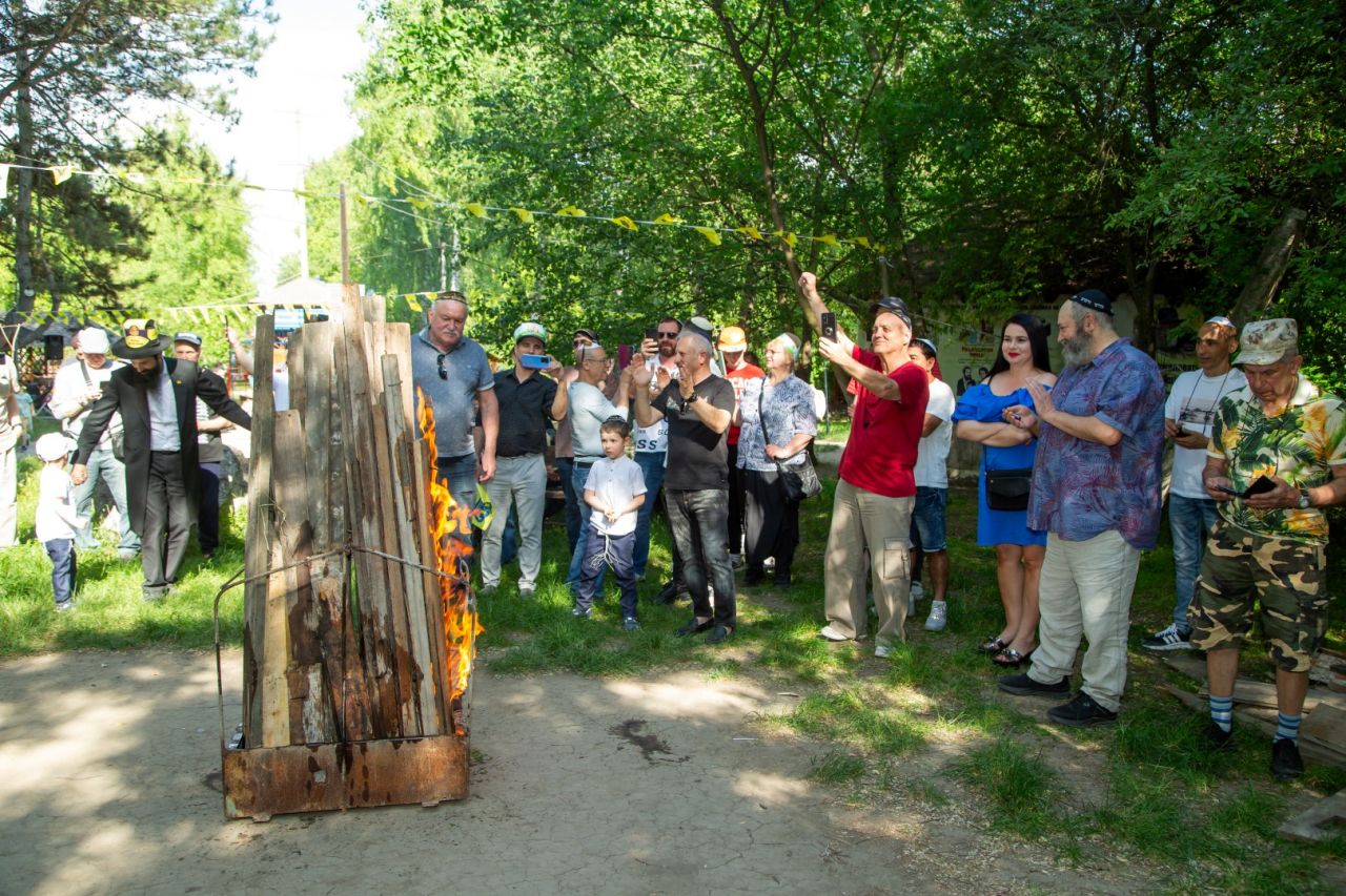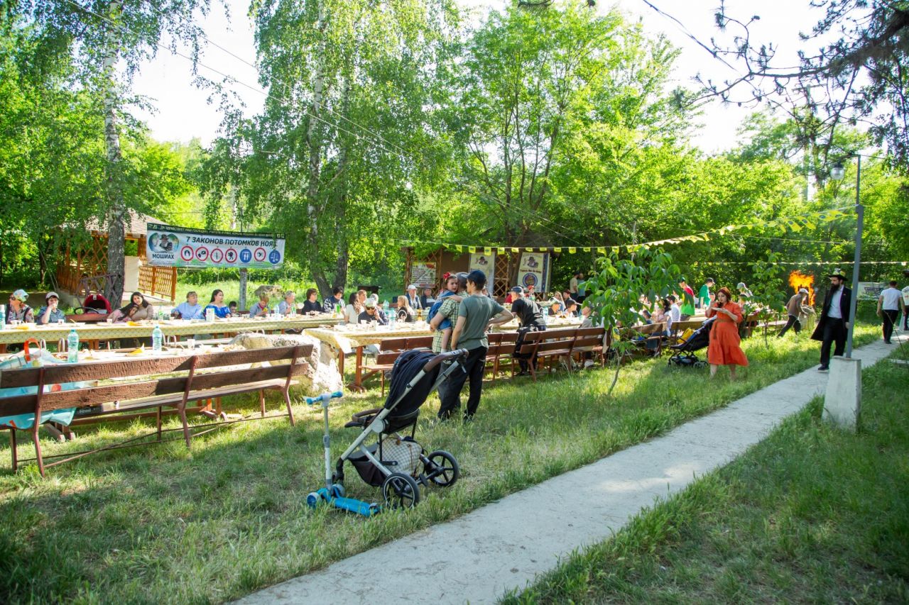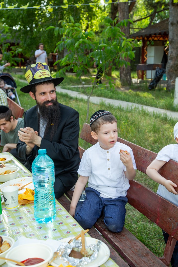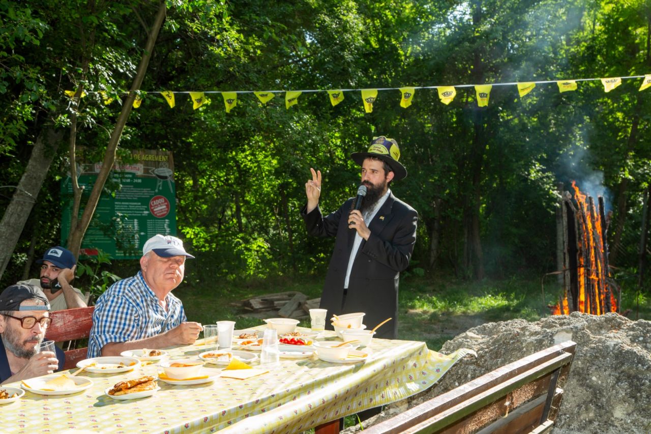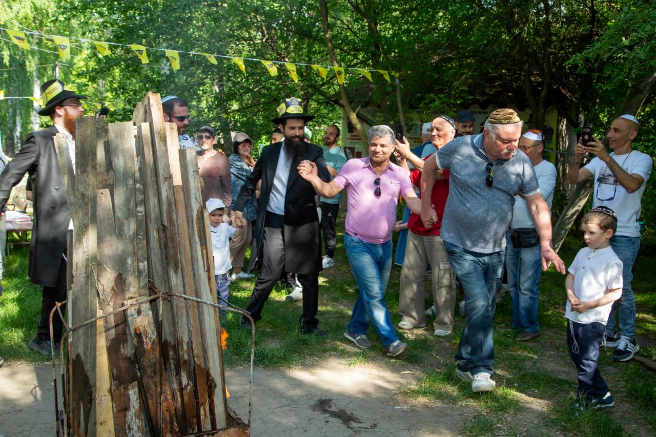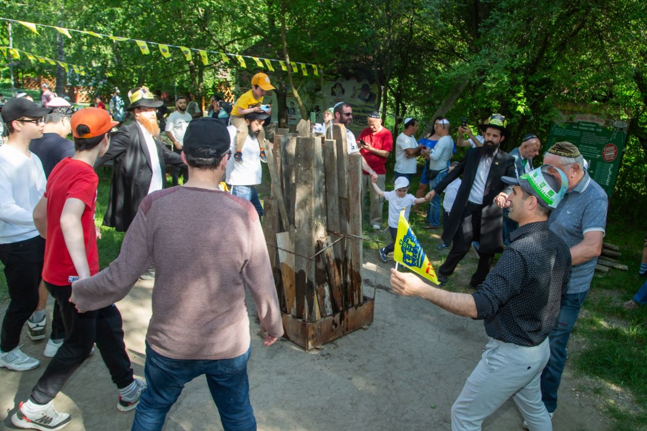 בפארק - יושבים ליד שולחנות ערוכים, אוכלים "על האש" כמנהג היום, מדליקים מדורה, רוקדים, והילדים אומרים פסוקים, ולבסוף - הגרלת פרסים.