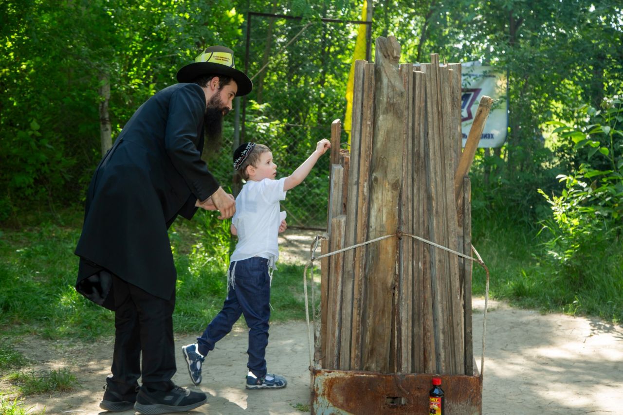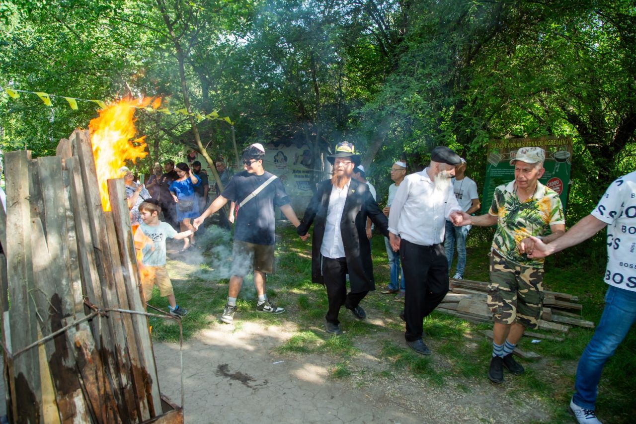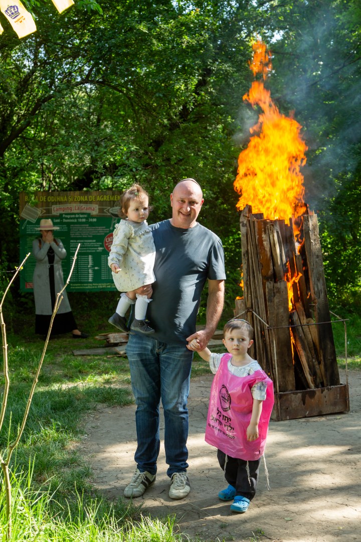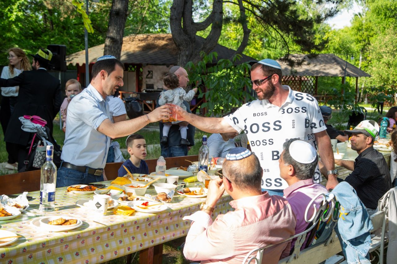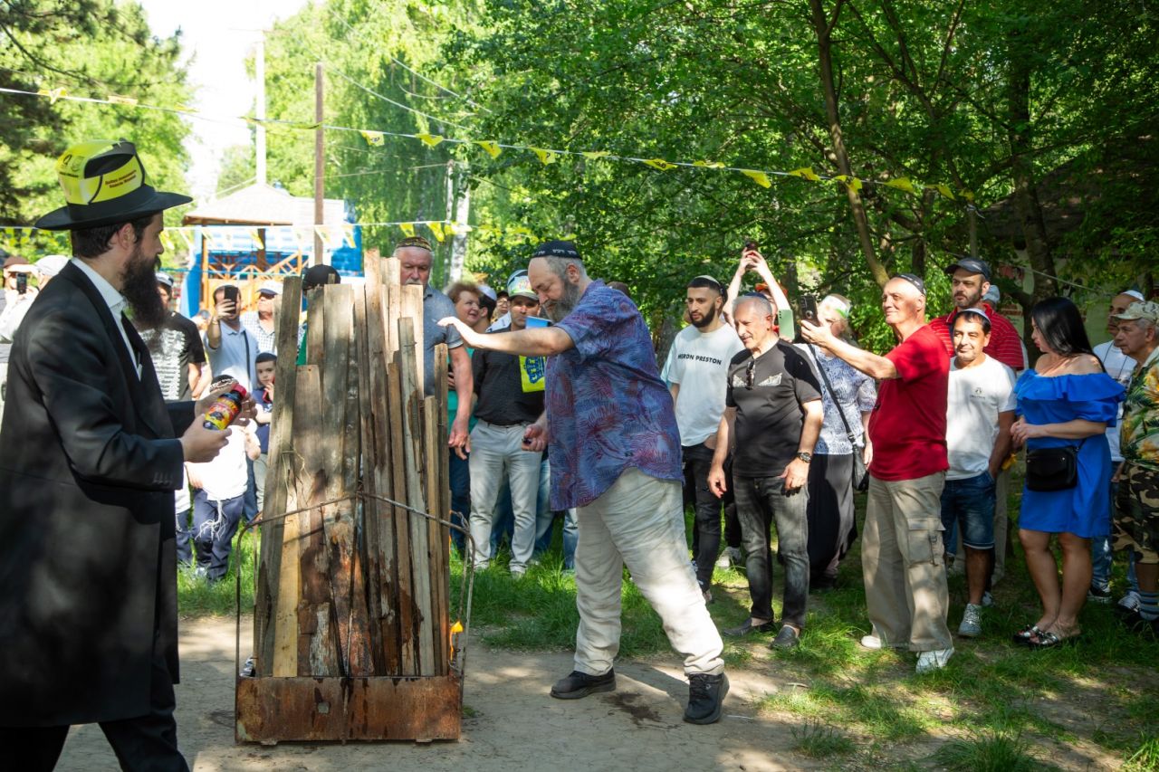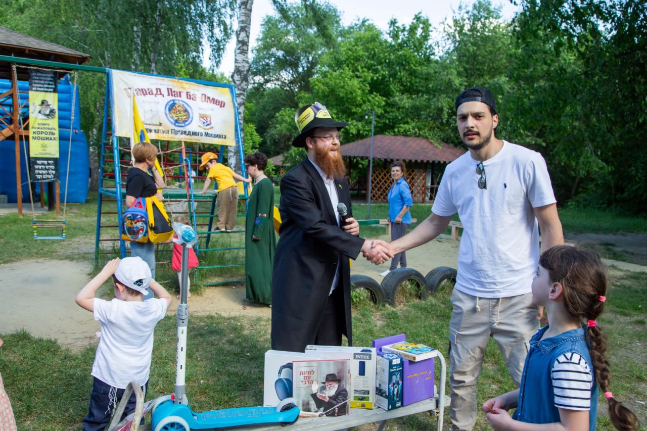 בפארק - יושבים ליד שולחנות ערוכים, אוכלים "על האש" כמנהג היום, מדליקים מדורה, רוקדים, והילדים אומרים פסוקים, ולבסוף - הגרלת פרסים.