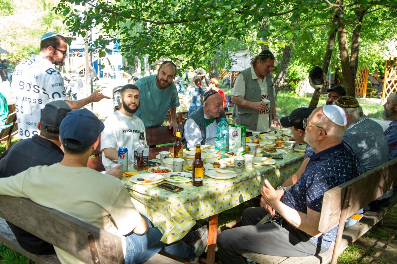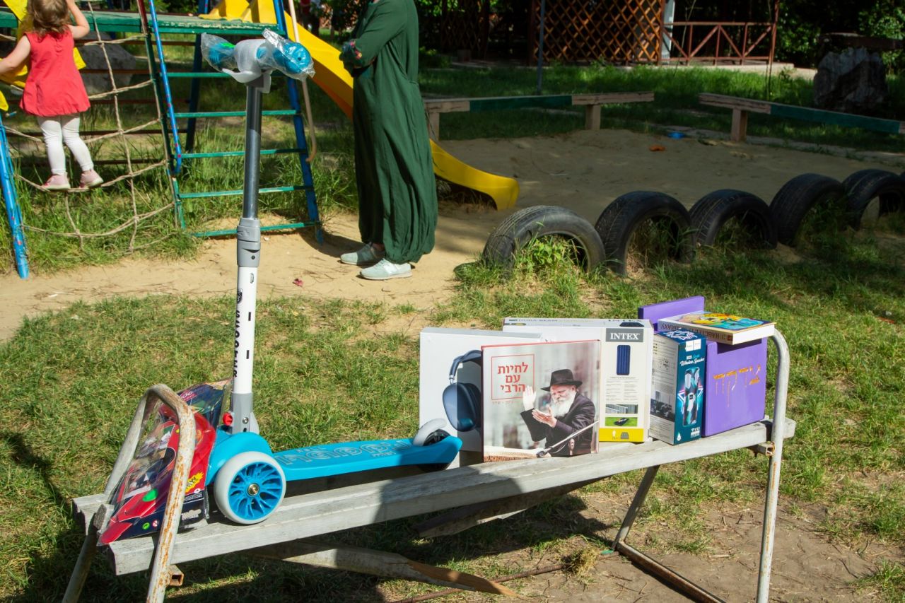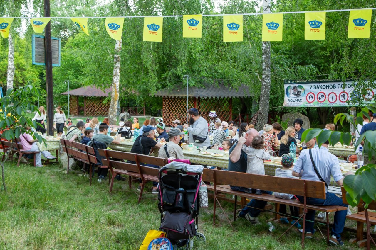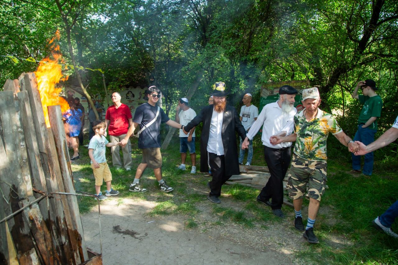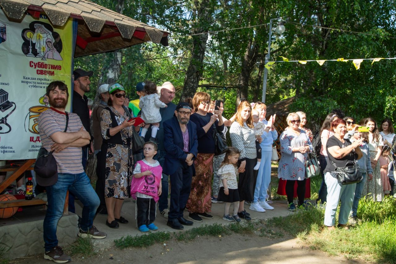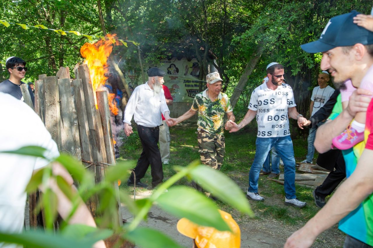 בפארק - יושבים ליד שולחנות ערוכים, אוכלים "על האש" כמנהג היום, מדליקים מדורה, רוקדים, והילדים אומרים פסוקים, ולבסוף - הגרלת פרסים.