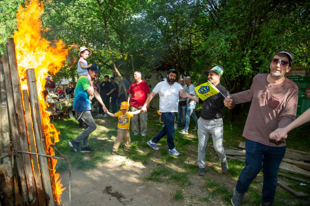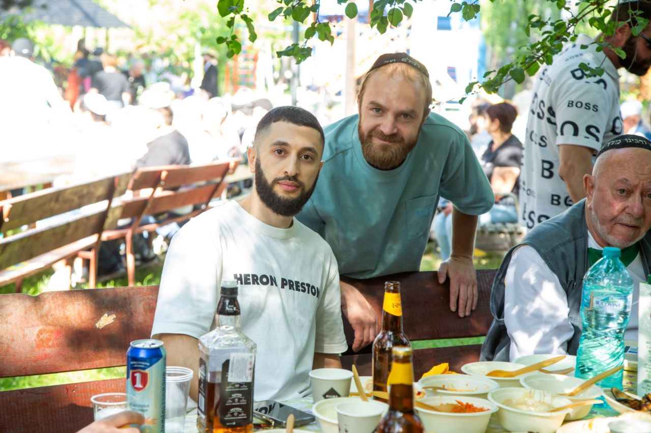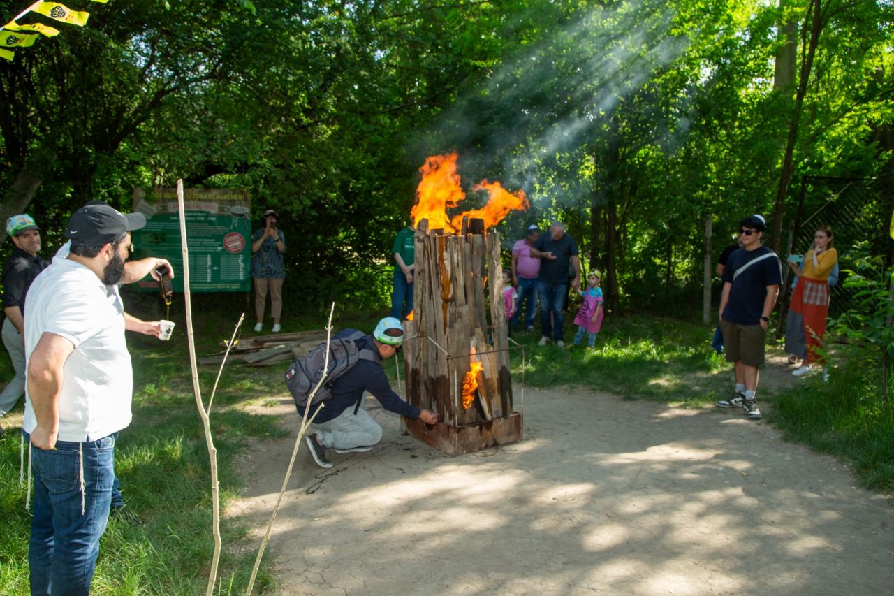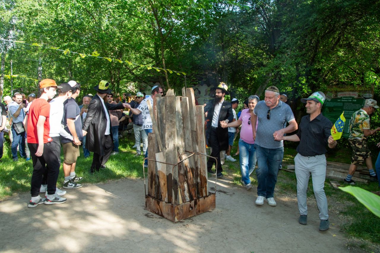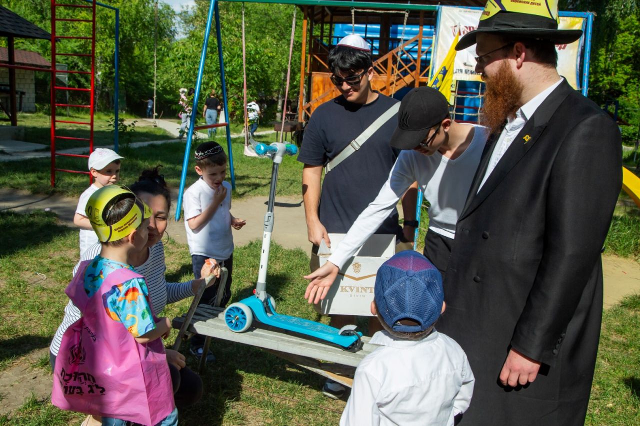 בפארק - יושבים ליד שולחנות ערוכים, אוכלים "על האש" כמנהג היום, מדליקים מדורה, רוקדים, והילדים אומרים פסוקים, ולבסוף - הגרלת פרסים.