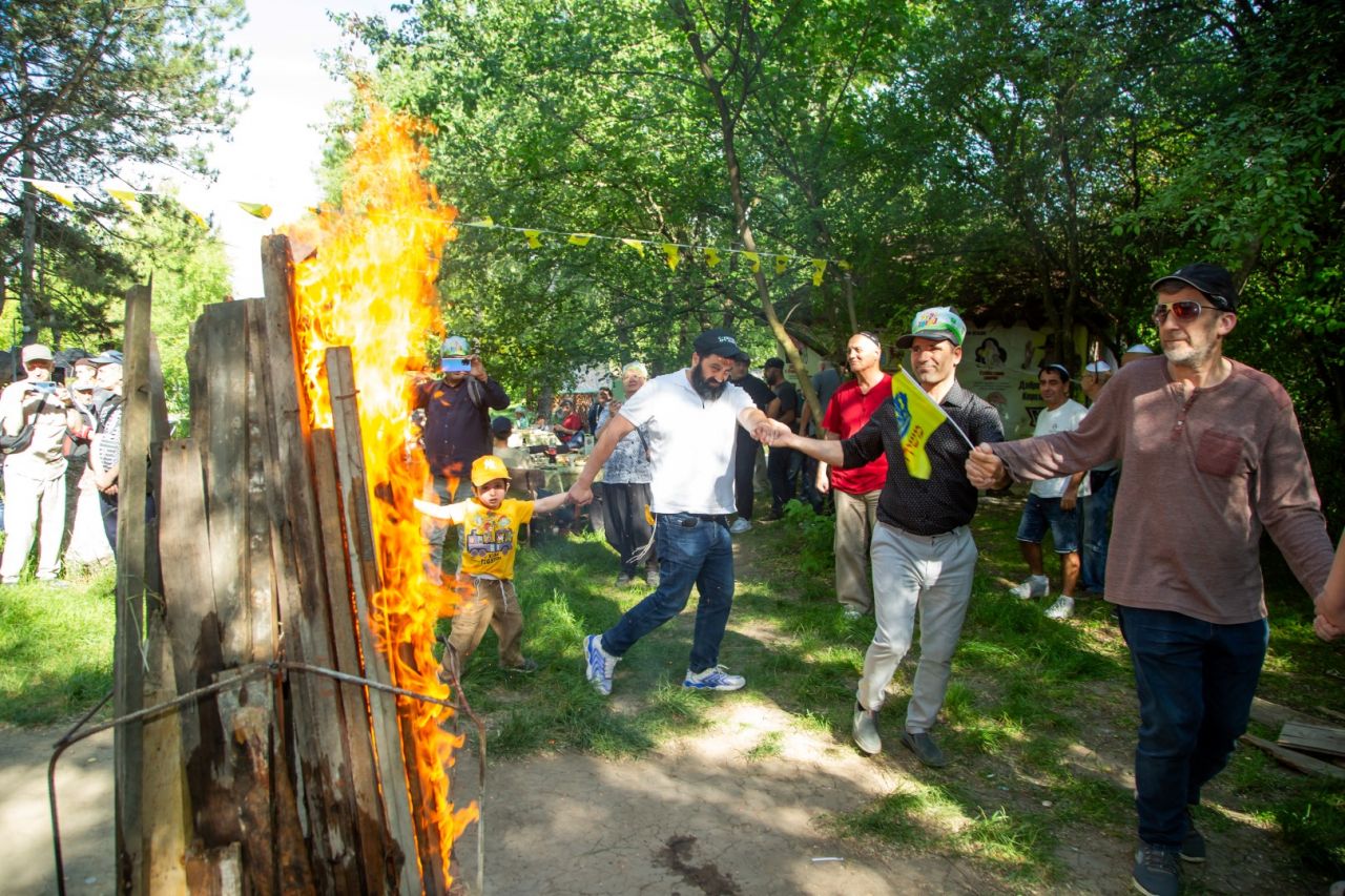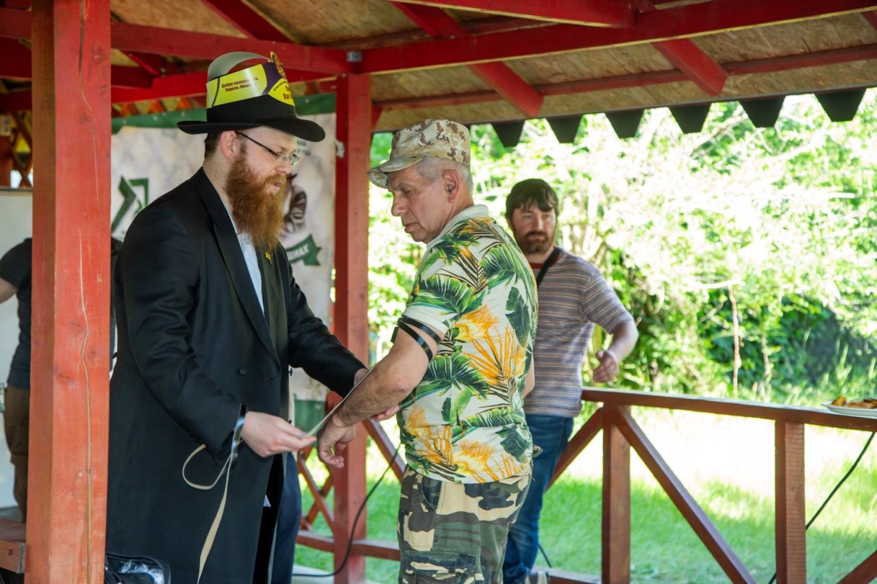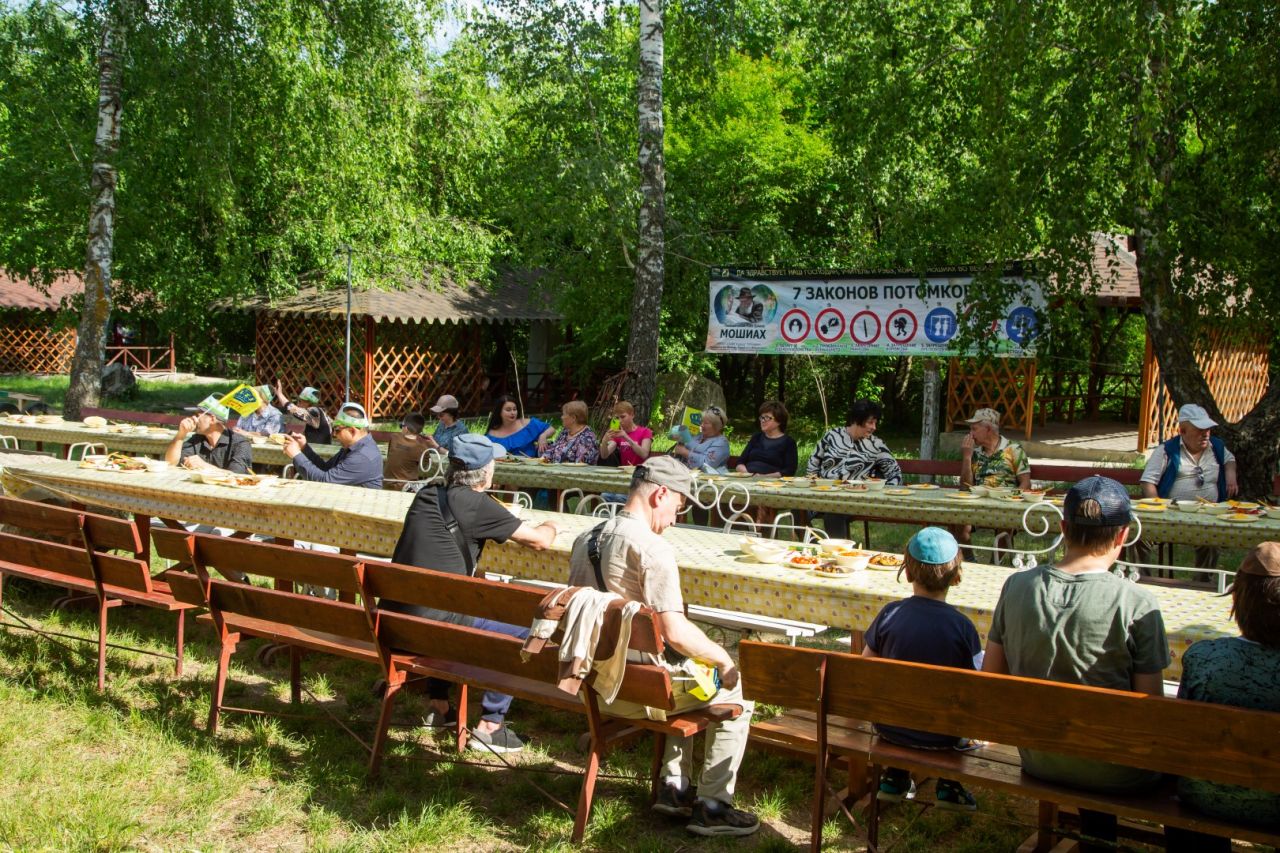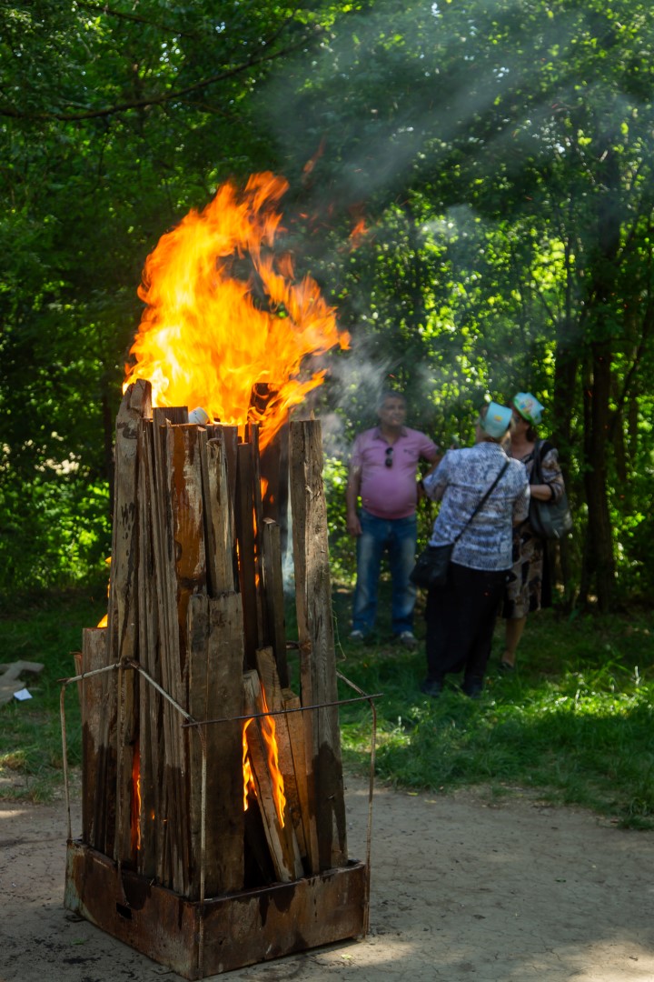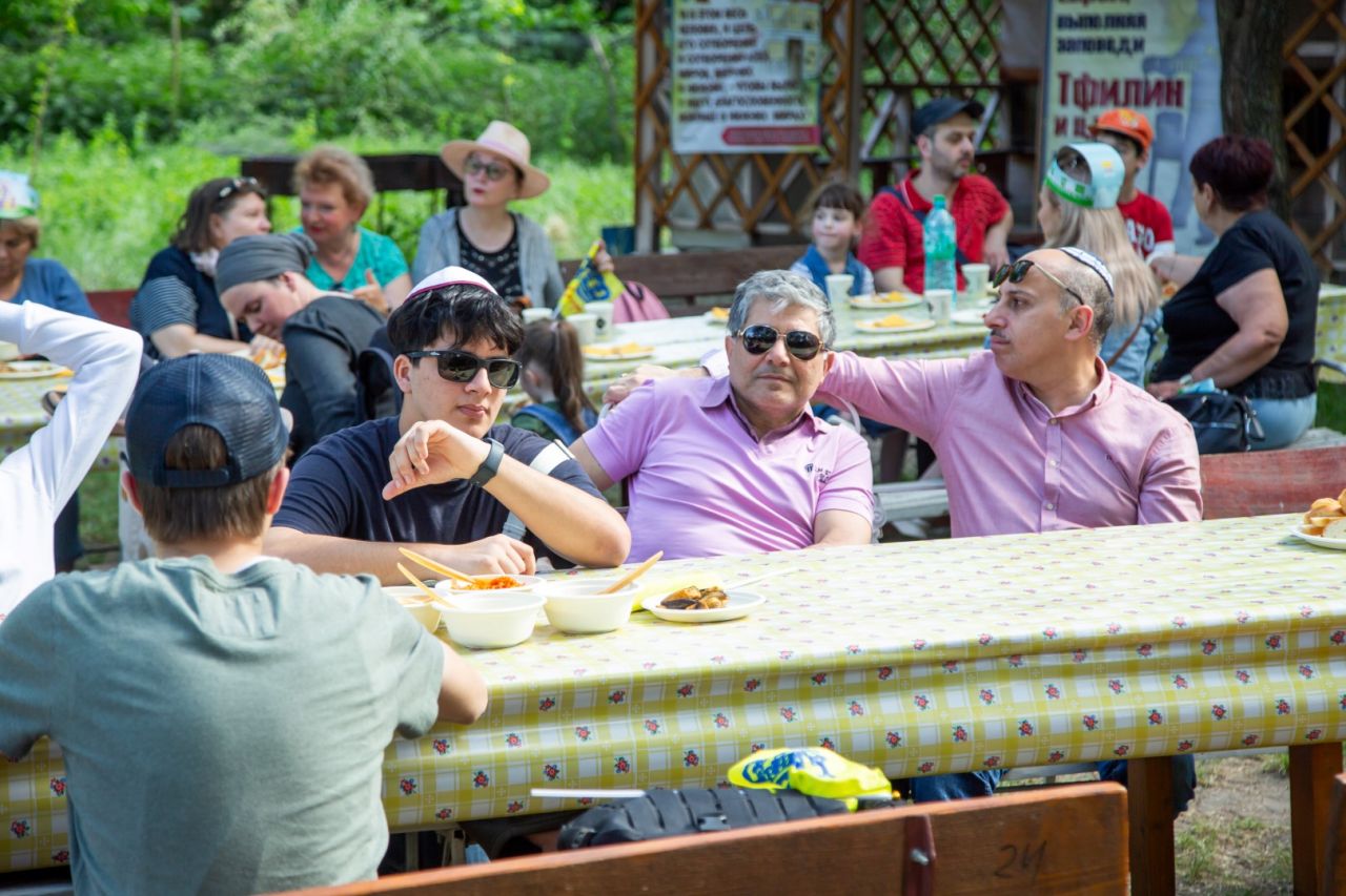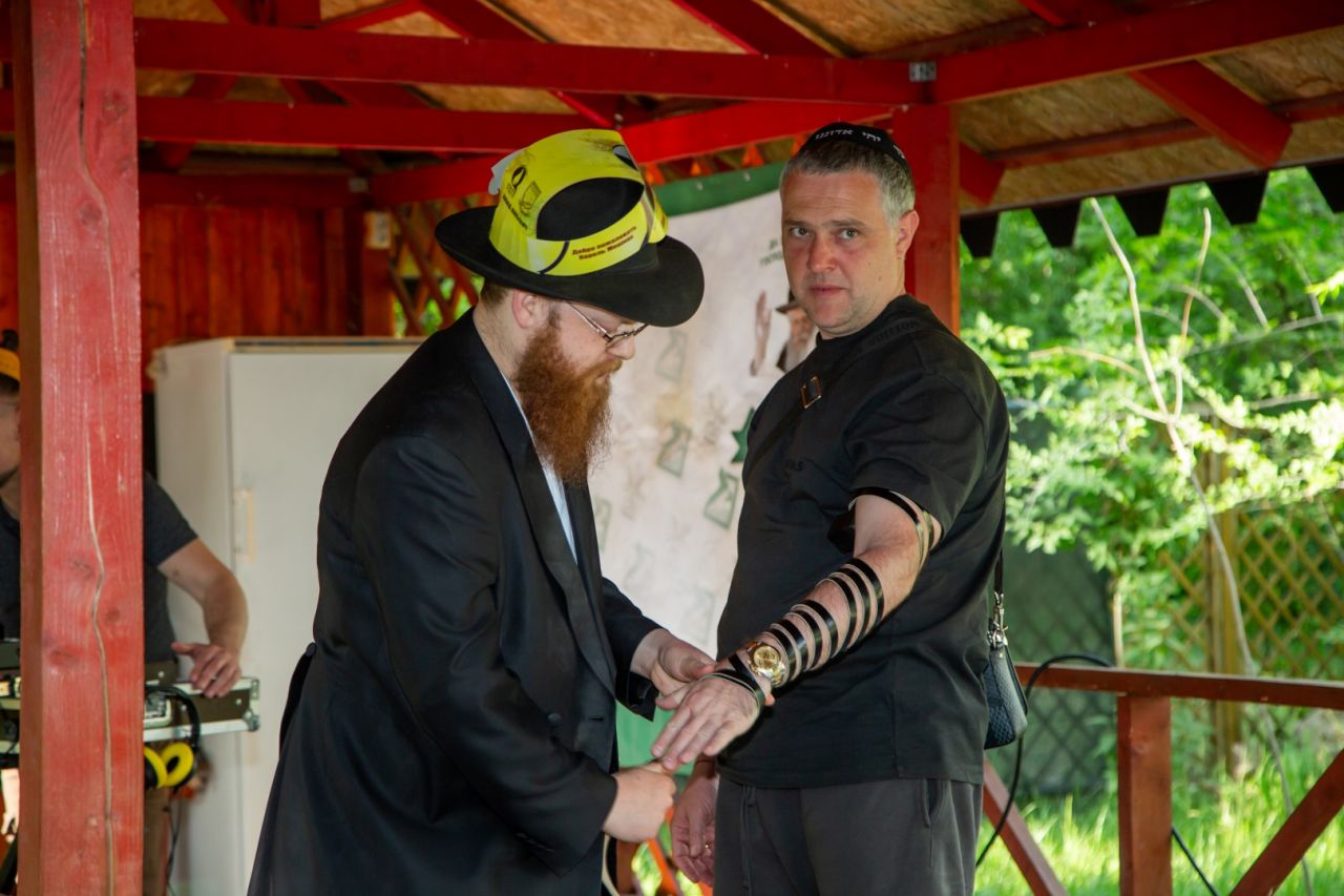 בפארק - יושבים ליד שולחנות ערוכים, אוכלים "על האש" כמנהג היום, מדליקים מדורה, רוקדים, והילדים אומרים פסוקים, ולבסוף - הגרלת פרסים.