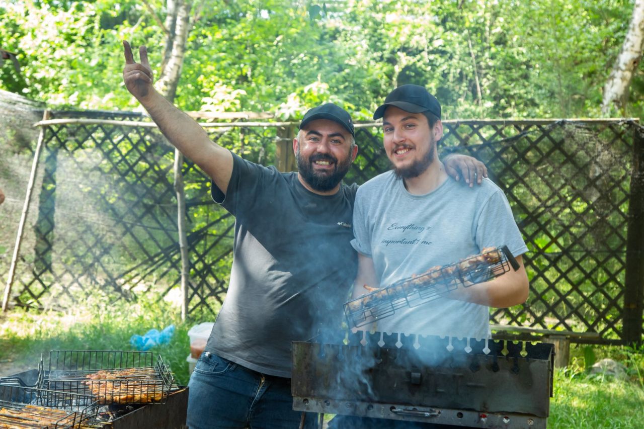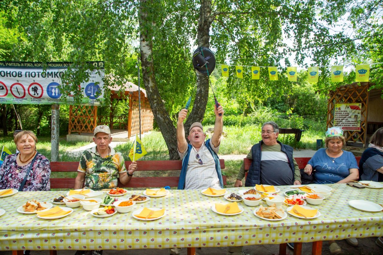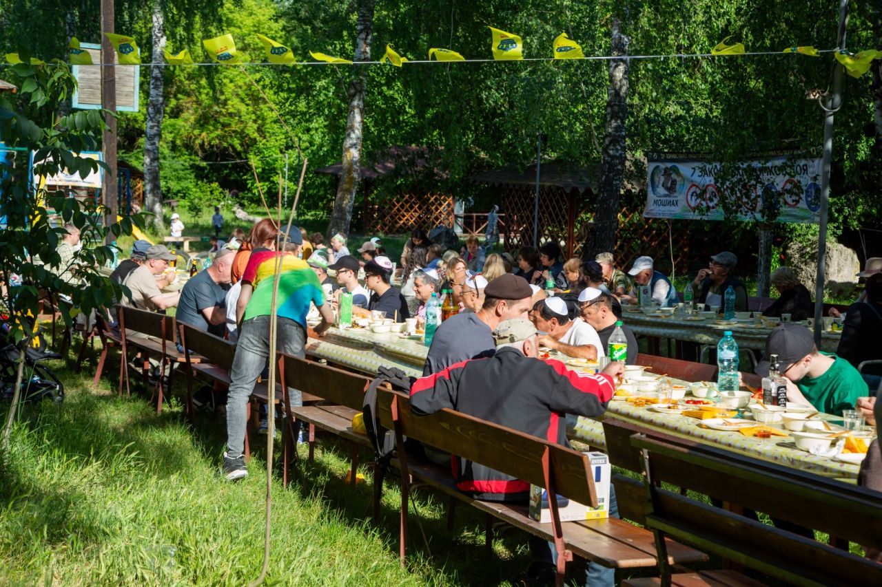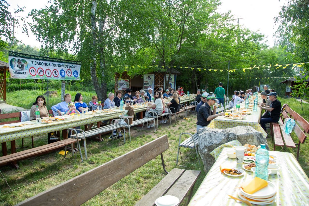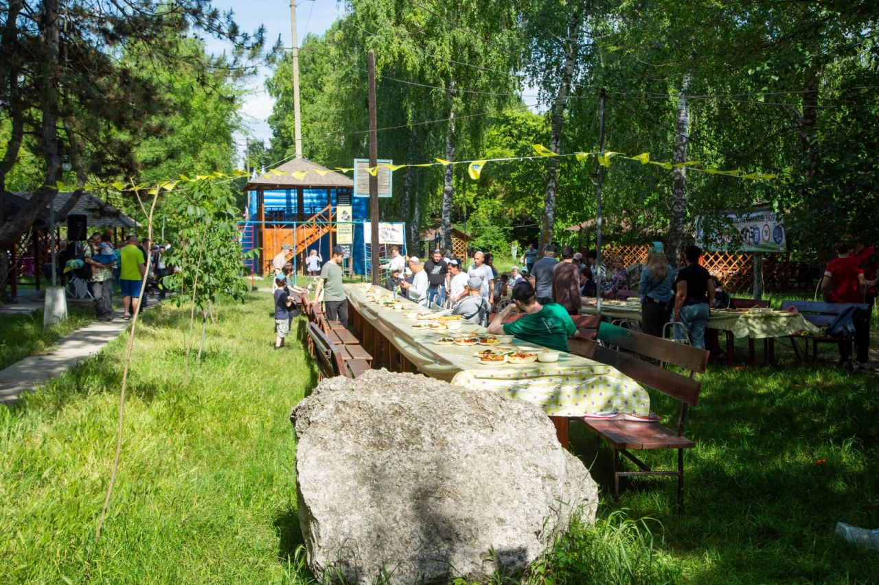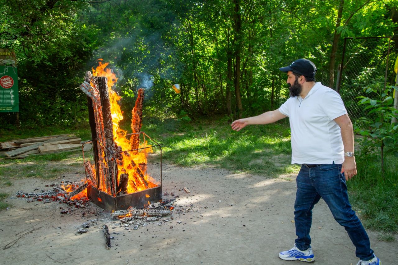 בפארק - יושבים ליד שולחנות ערוכים, אוכלים "על האש" כמנהג היום, מדליקים מדורה, רוקדים, והילדים אומרים פסוקים, ולבסוף - הגרלת פרסים.