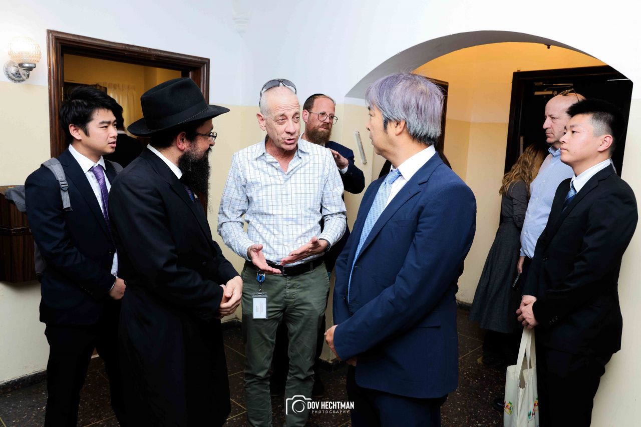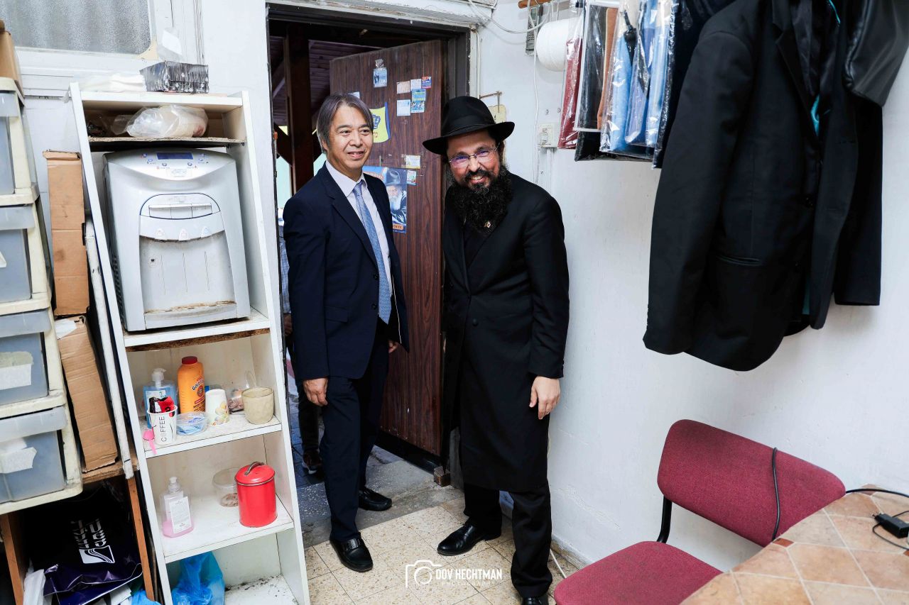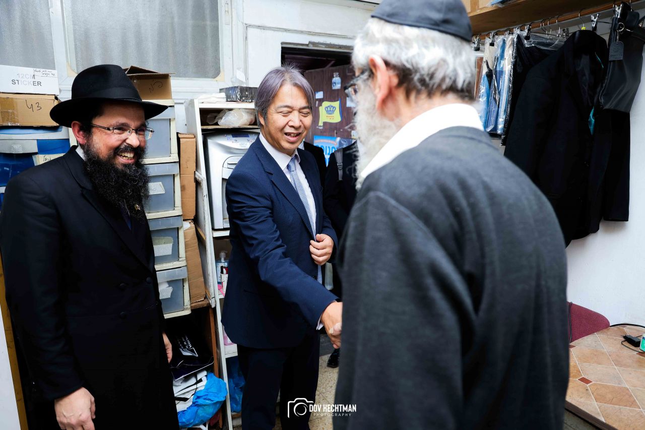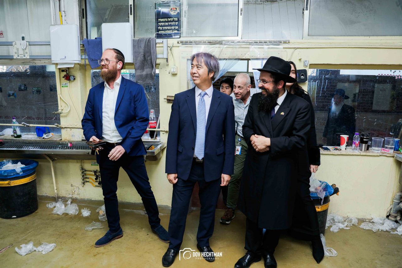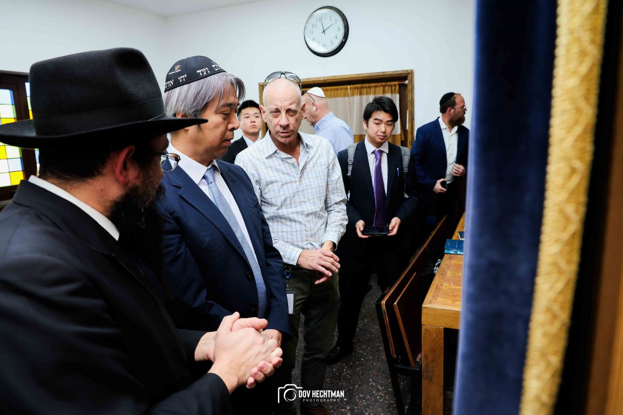 שליח הרבי שליט"א מלך המשיח והרב הראשי ליפן הרב בנימין אדרעי הביא את שגריר יפן בישראל מר אראי יוסוקה לביקור מיוחד בבית אגודת חסידי חב״ד – 770 ובמאפיית מצות בכפר חב"ד.