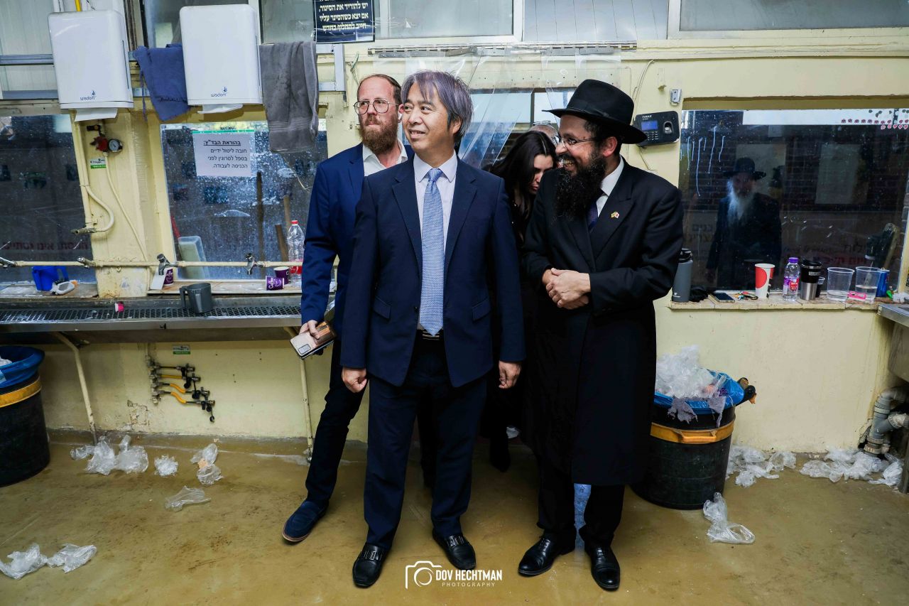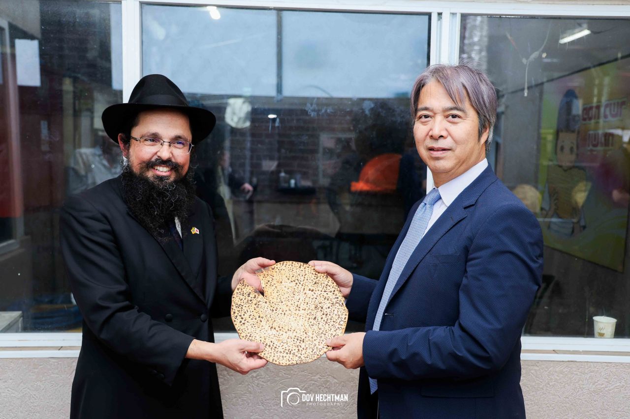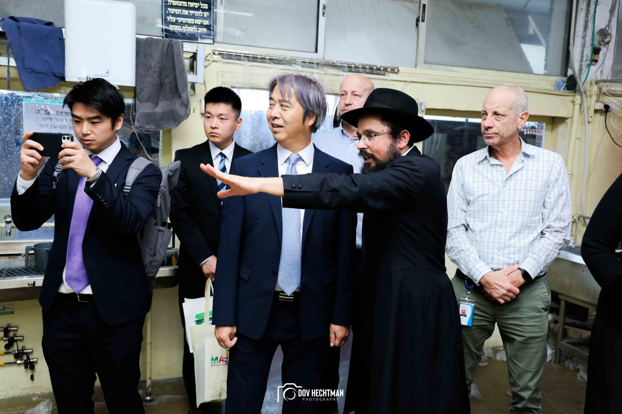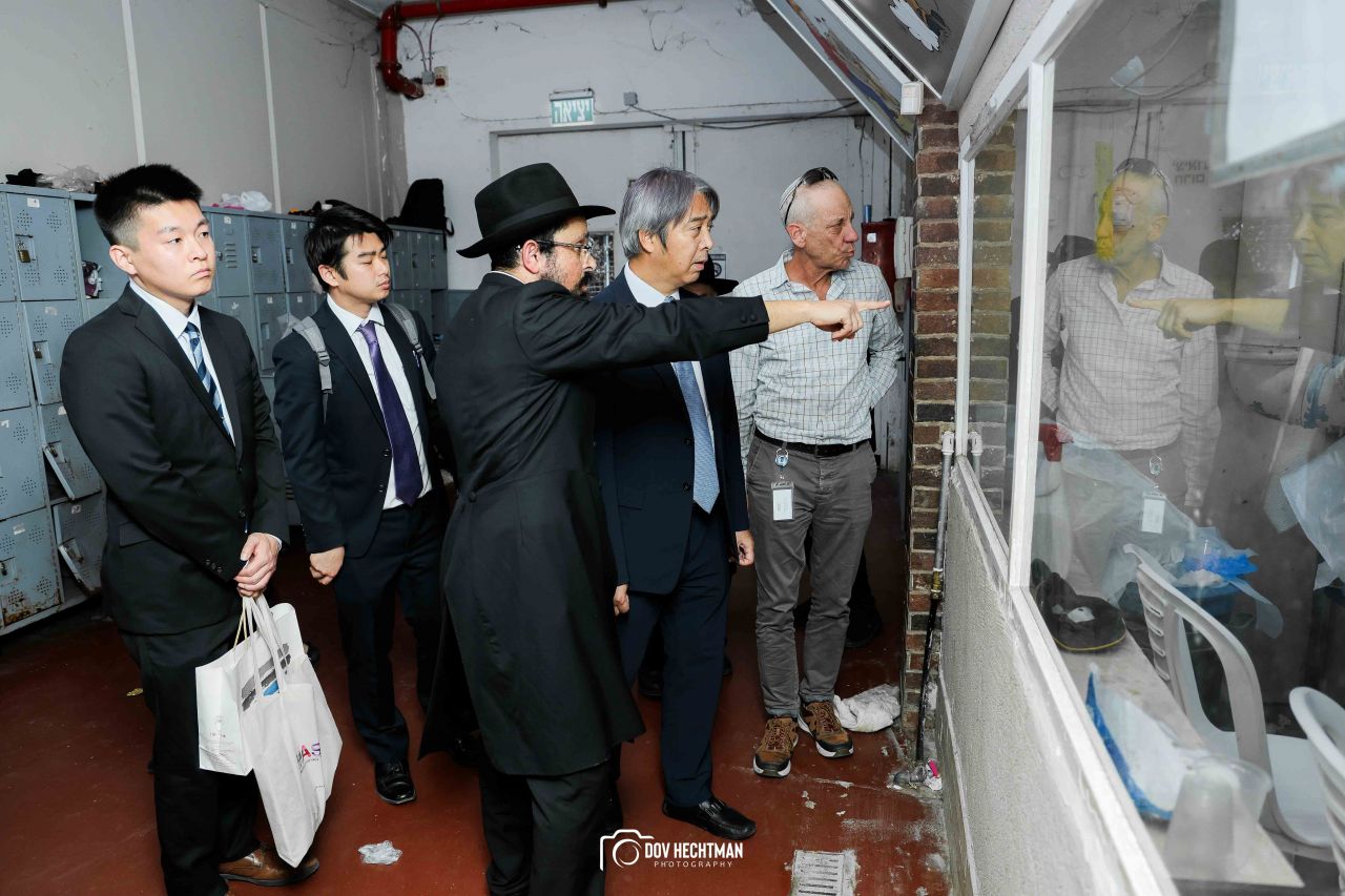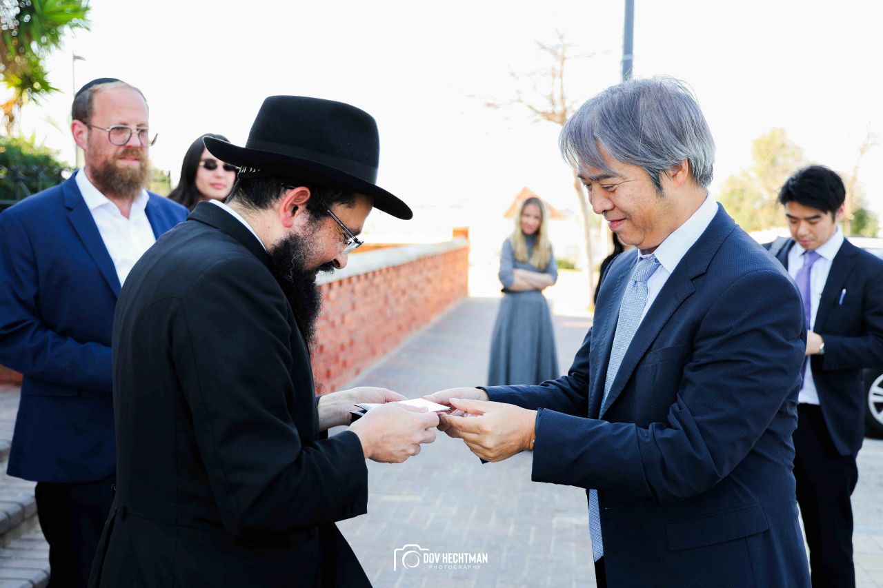 שליח הרבי שליט"א מלך המשיח והרב הראשי ליפן הרב בנימין אדרעי הביא את שגריר יפן בישראל מר אראי יוסוקה לביקור מיוחד בבית אגודת חסידי חב״ד – 770 ובמאפיית מצות בכפר חב"ד.