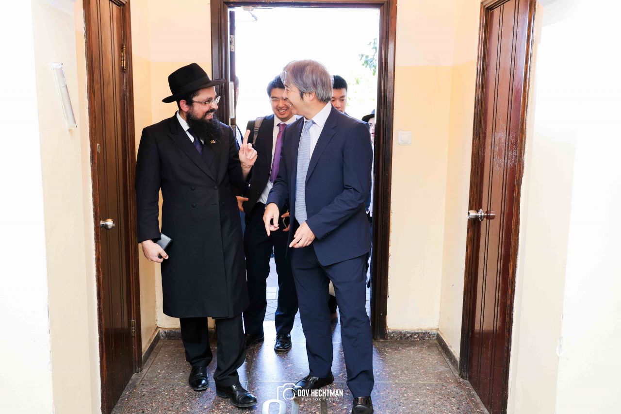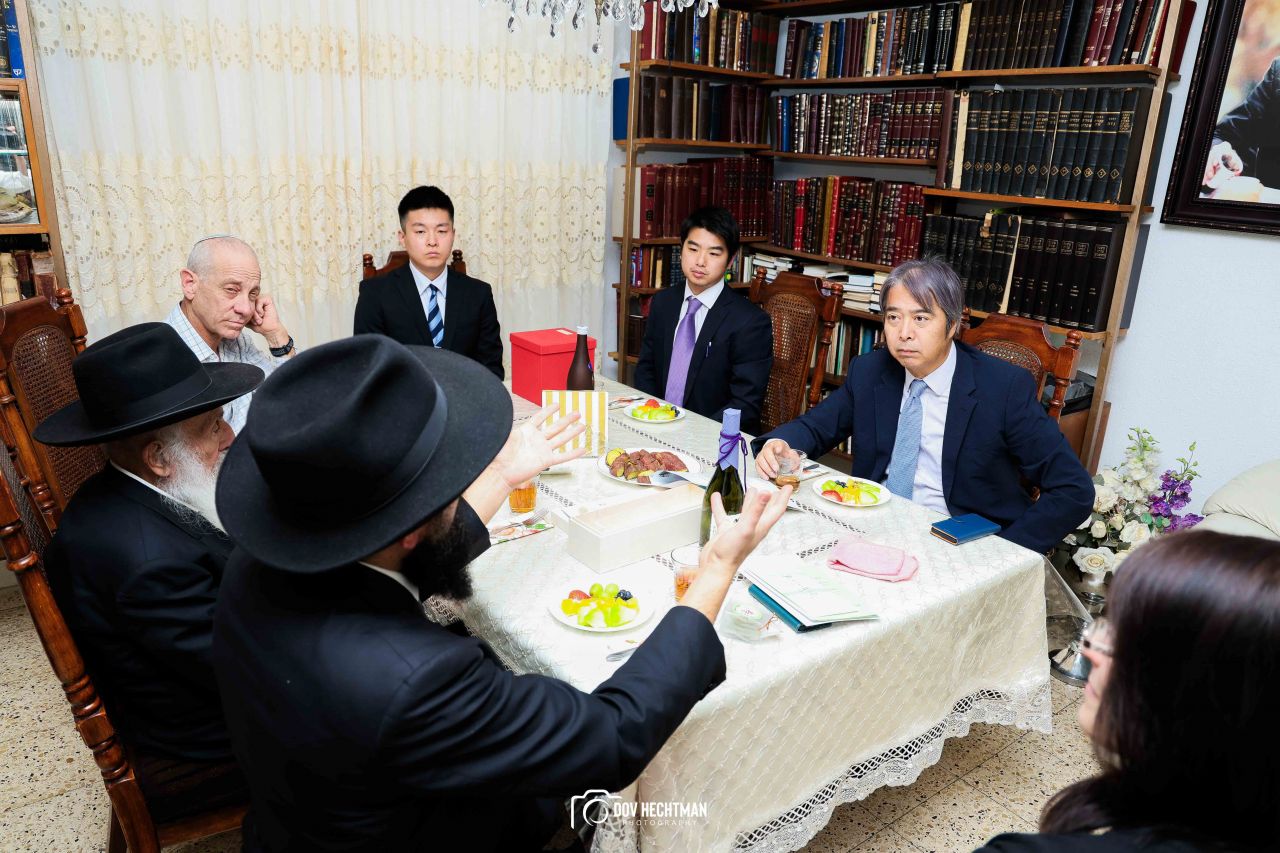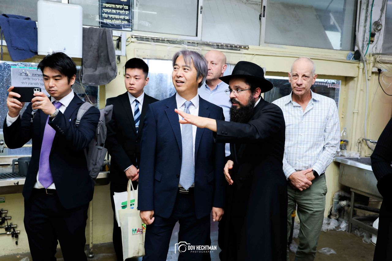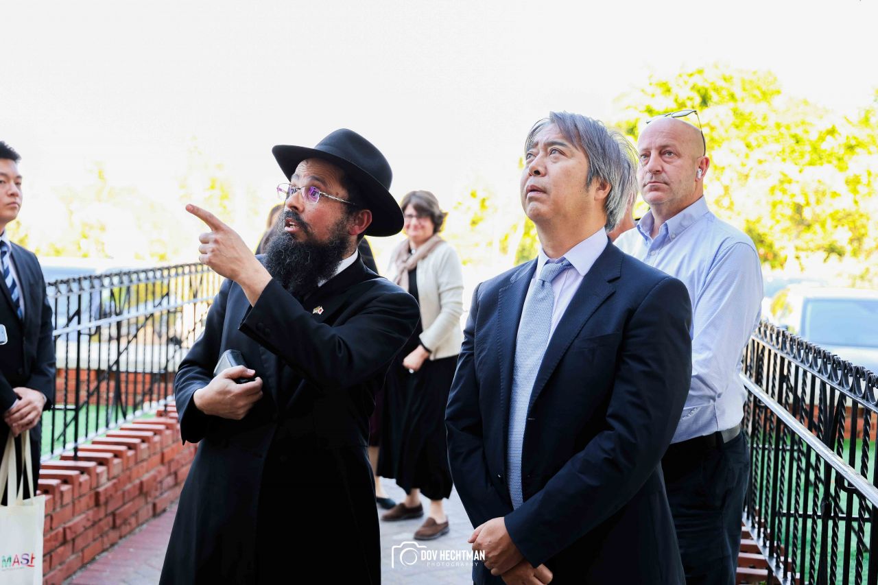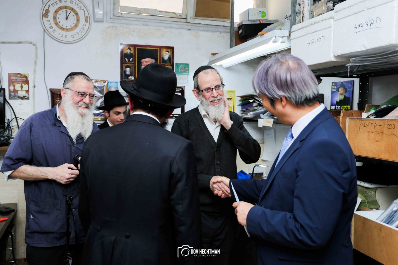 שליח הרבי שליט"א מלך המשיח והרב הראשי ליפן הרב בנימין אדרעי הביא את שגריר יפן בישראל מר אראי יוסוקה לביקור מיוחד בבית אגודת חסידי חב״ד – 770 ובמאפיית מצות בכפר חב"ד.