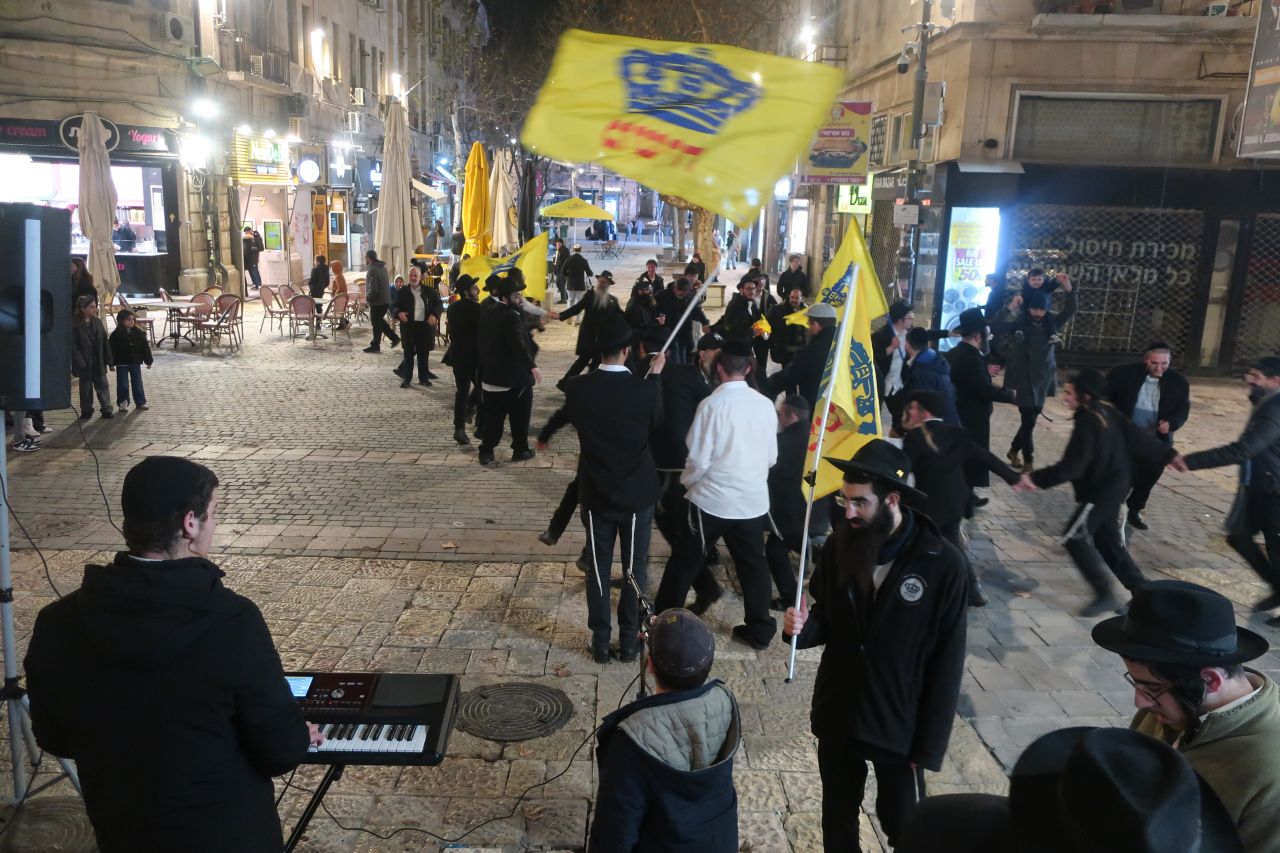 לאחר שבת גדושה שנערכה בישיבת המלך המשיח לרגל יום הנשיאות, י' שבט, יצאו תלמידי הישיבה, למעמד קידוש לבנה המוני במדרחוב העירוני, לאירוע המאורגן מידי חודש בחודשו מזה למעלה משלושים שנה, על ידי מרז משיח וגאולה בראשות הרב דורון אורן