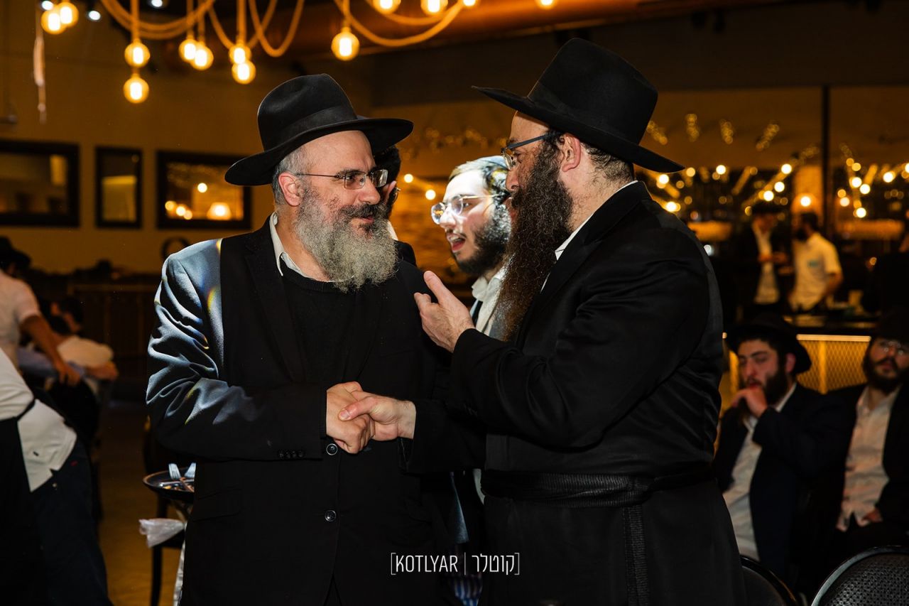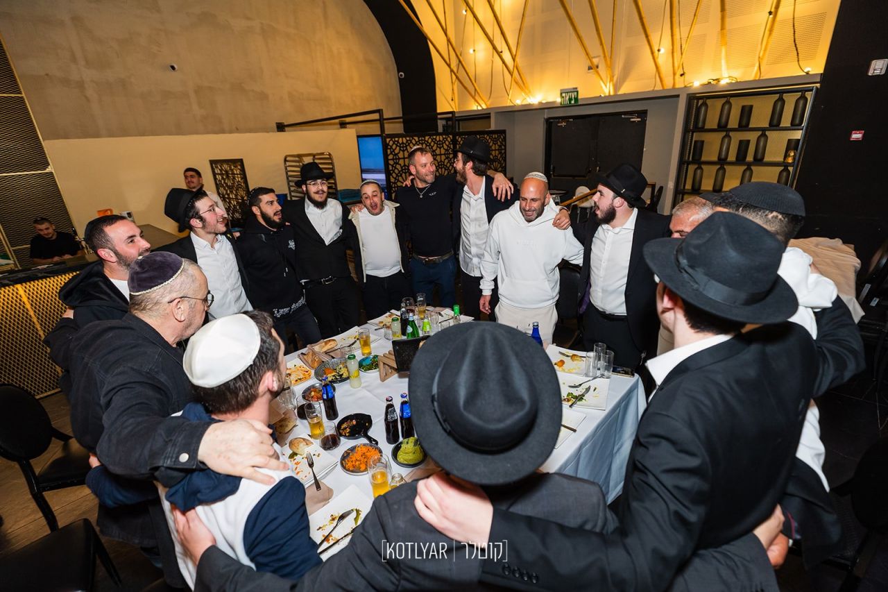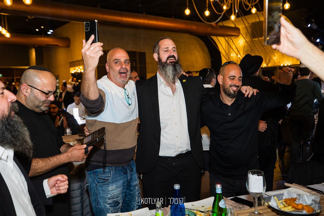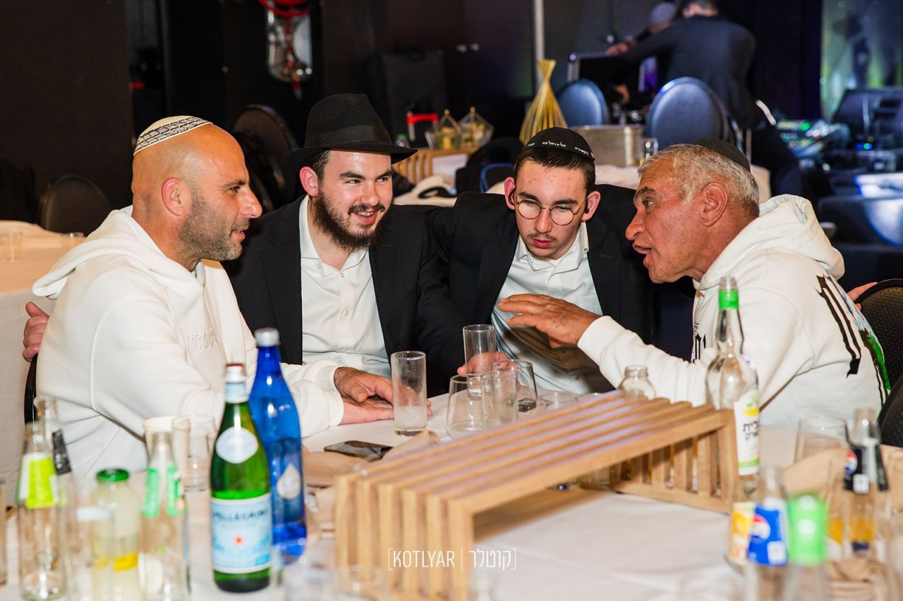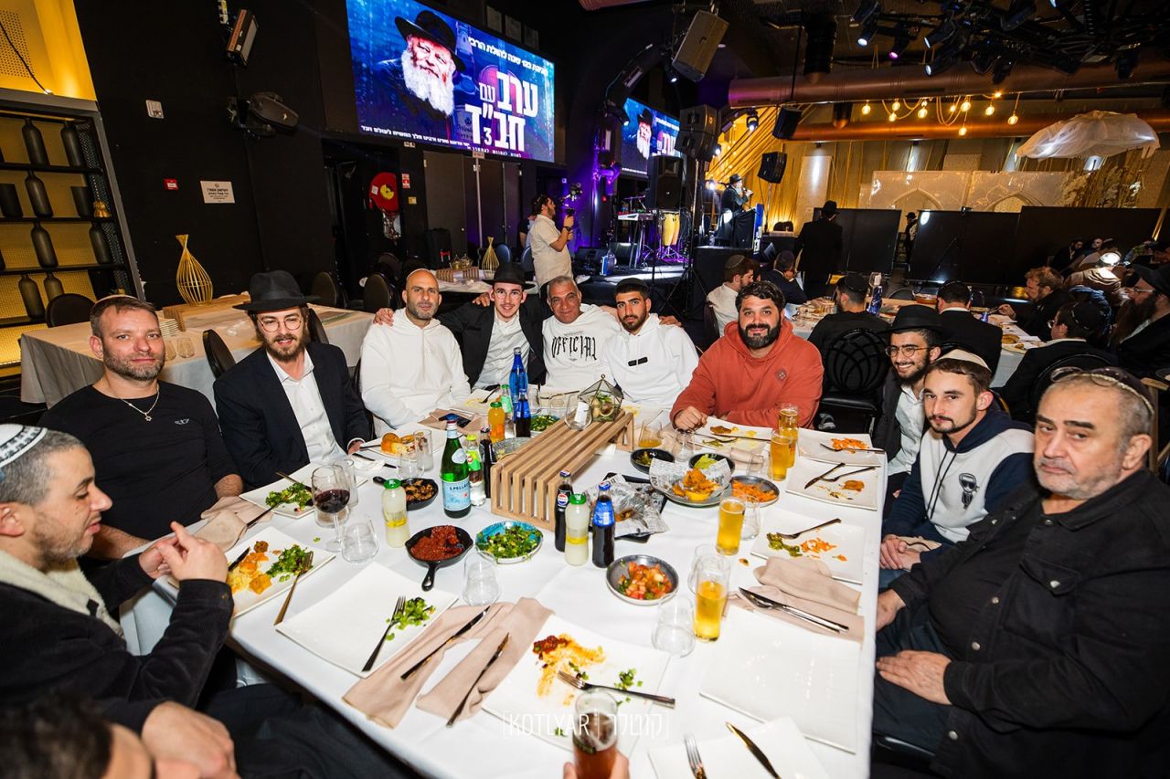 בסיום הערב התיישבו המקורבים והתמימים להתוועדות חסידית סוערת עם הרב עופר מיידובניק.